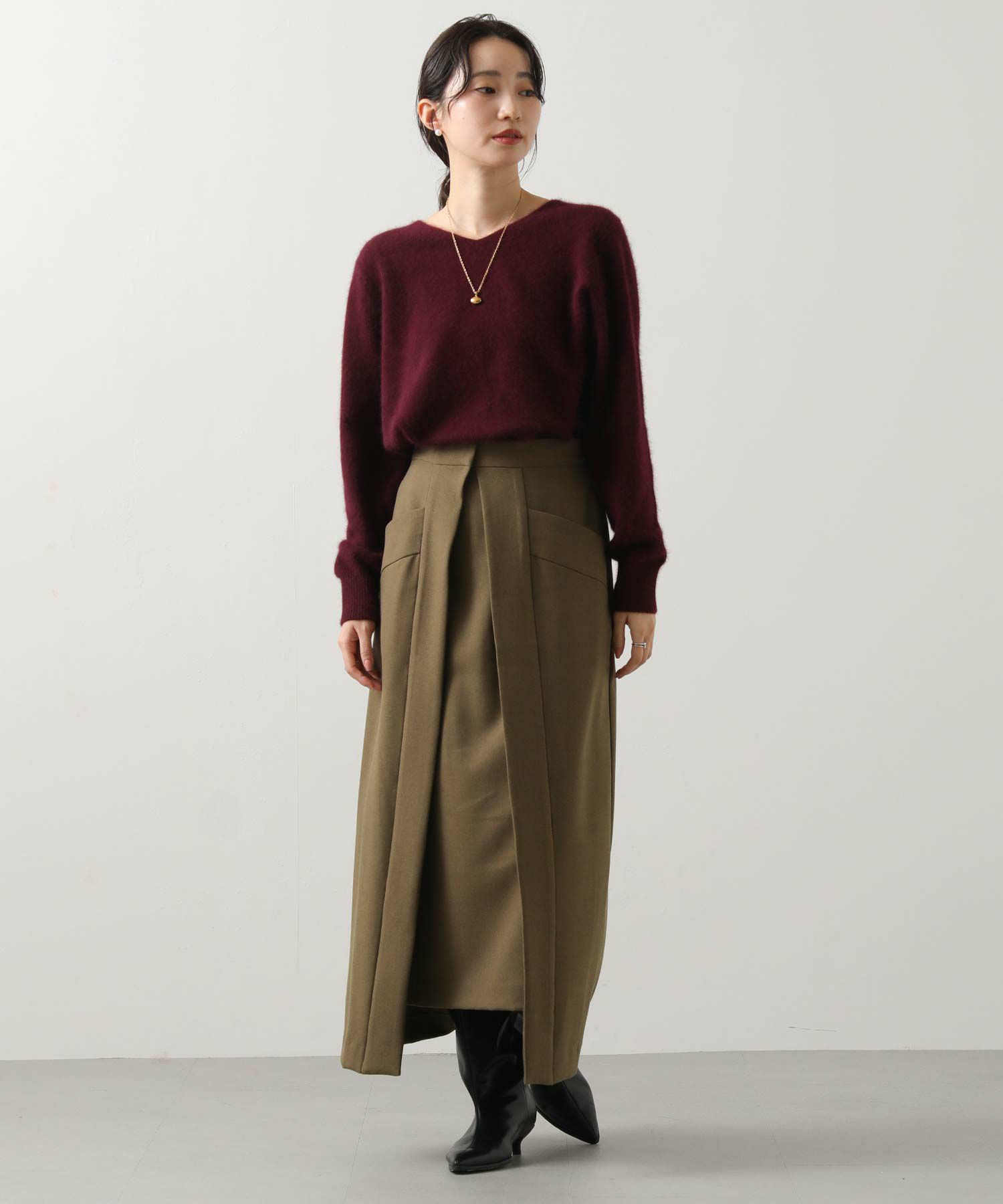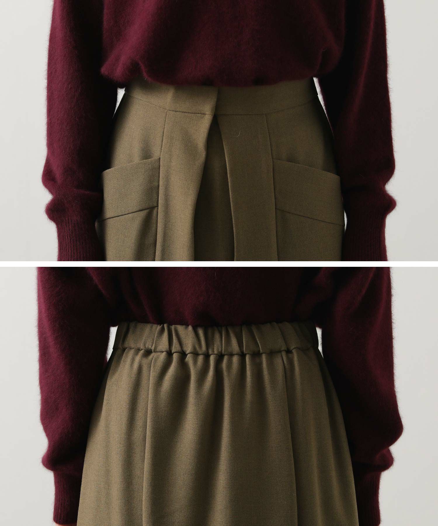 ラップスカートを外せば、シンプルなタイトスカートとしても着用できる2WAY仕様です。