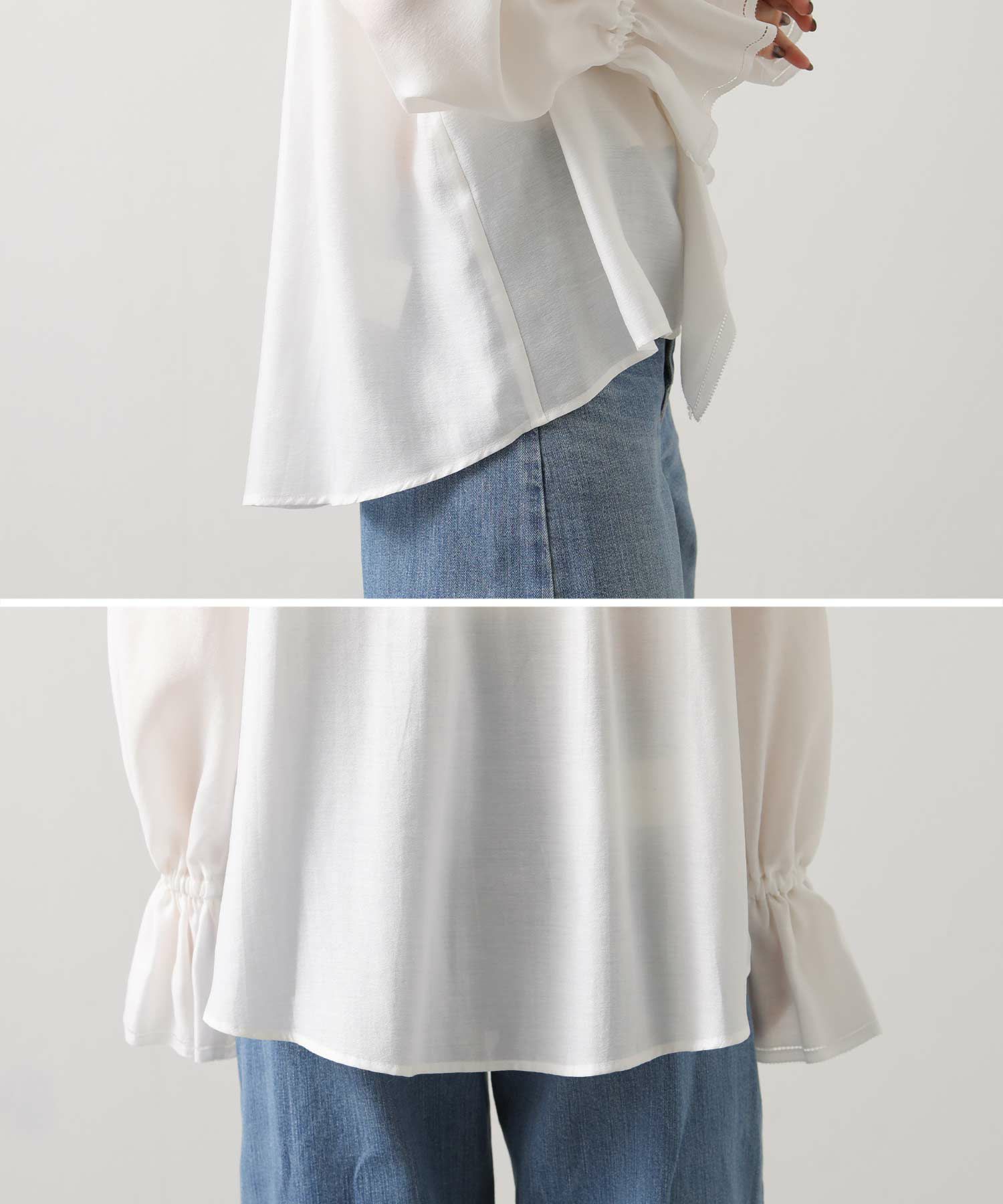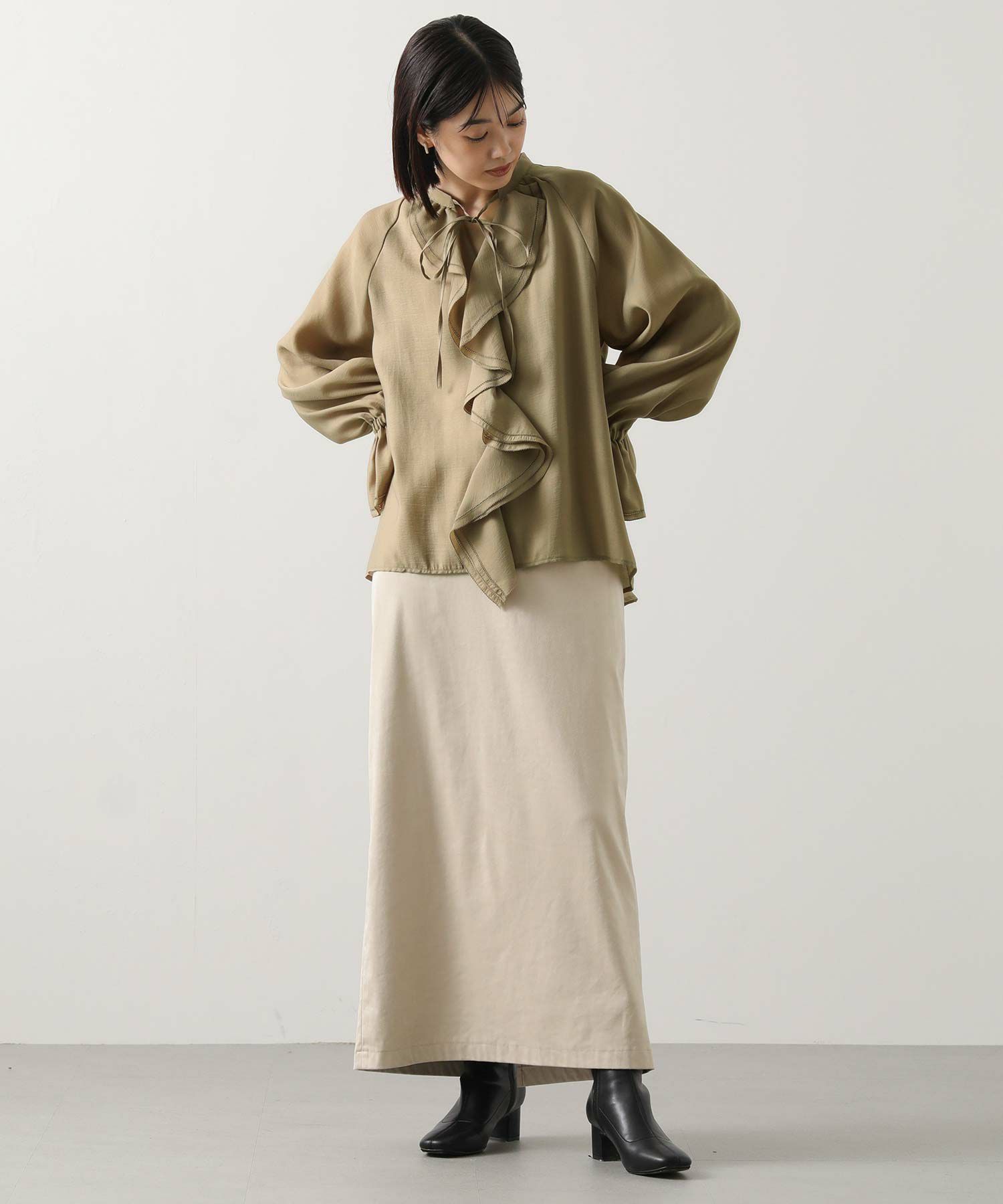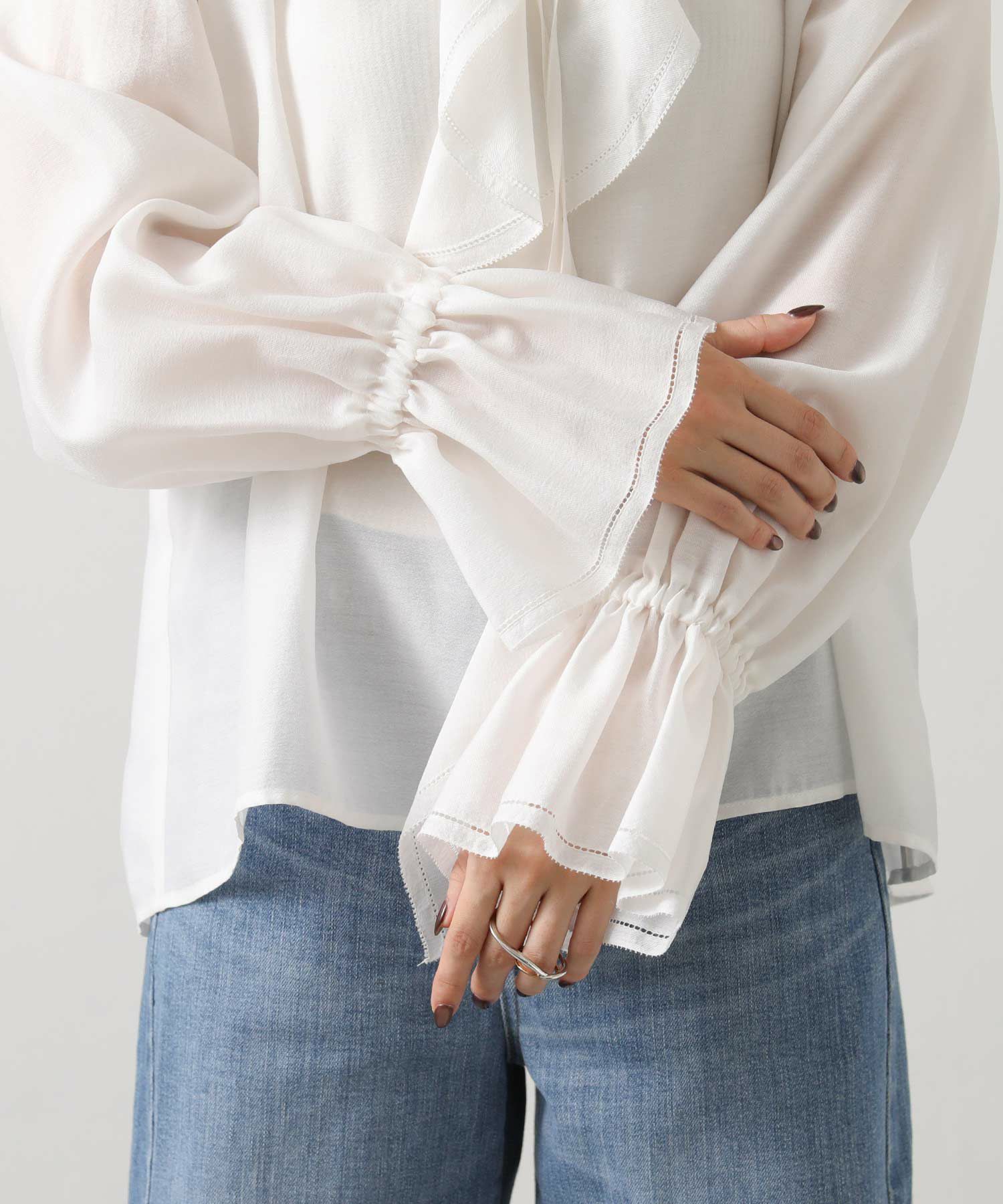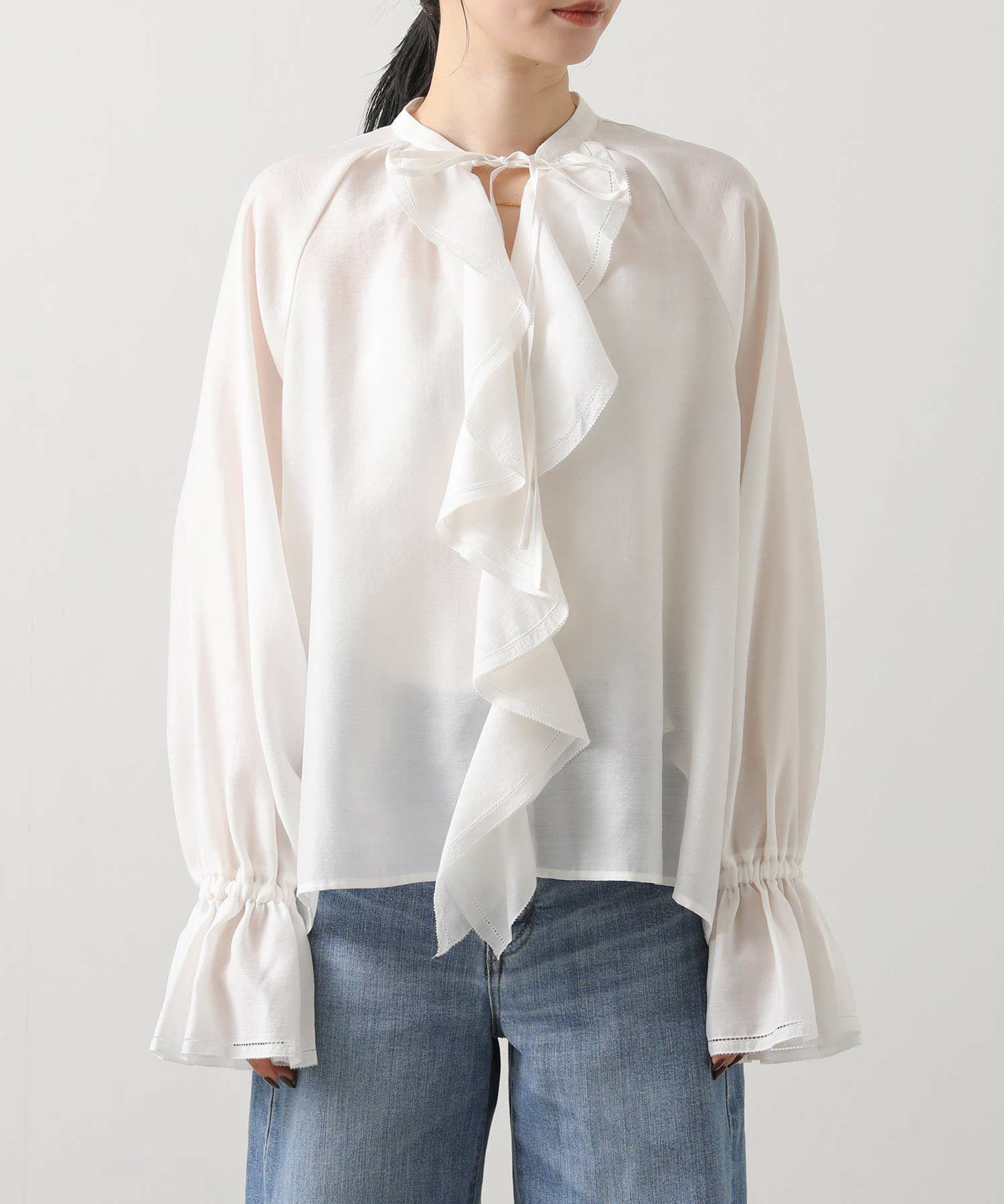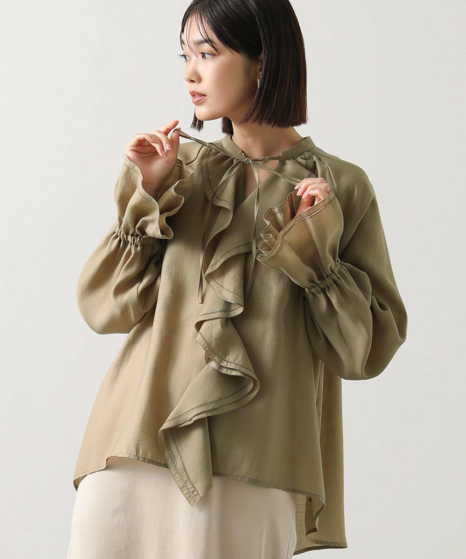 優しいニュアンスをプラスしてくれるラッフルブラウス。