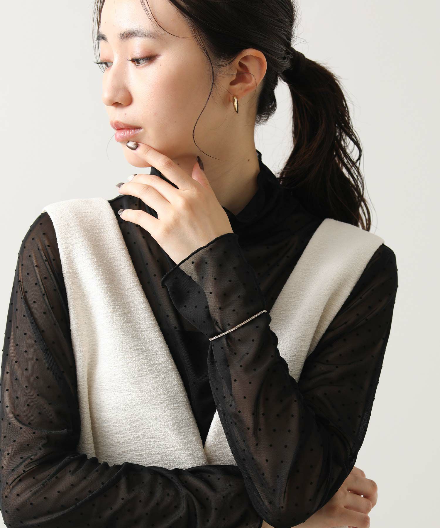 ※着用画像は撮影状況、光の当たり具合で色みが違って見える場合がございます。実際の色みについては、画像一覧の最後に掲載している詳細画像をご参照ください。