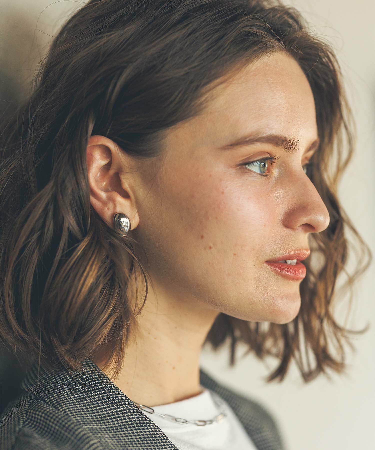 シンプルで合わせやすく、程よく印象的な大きさもポイント。