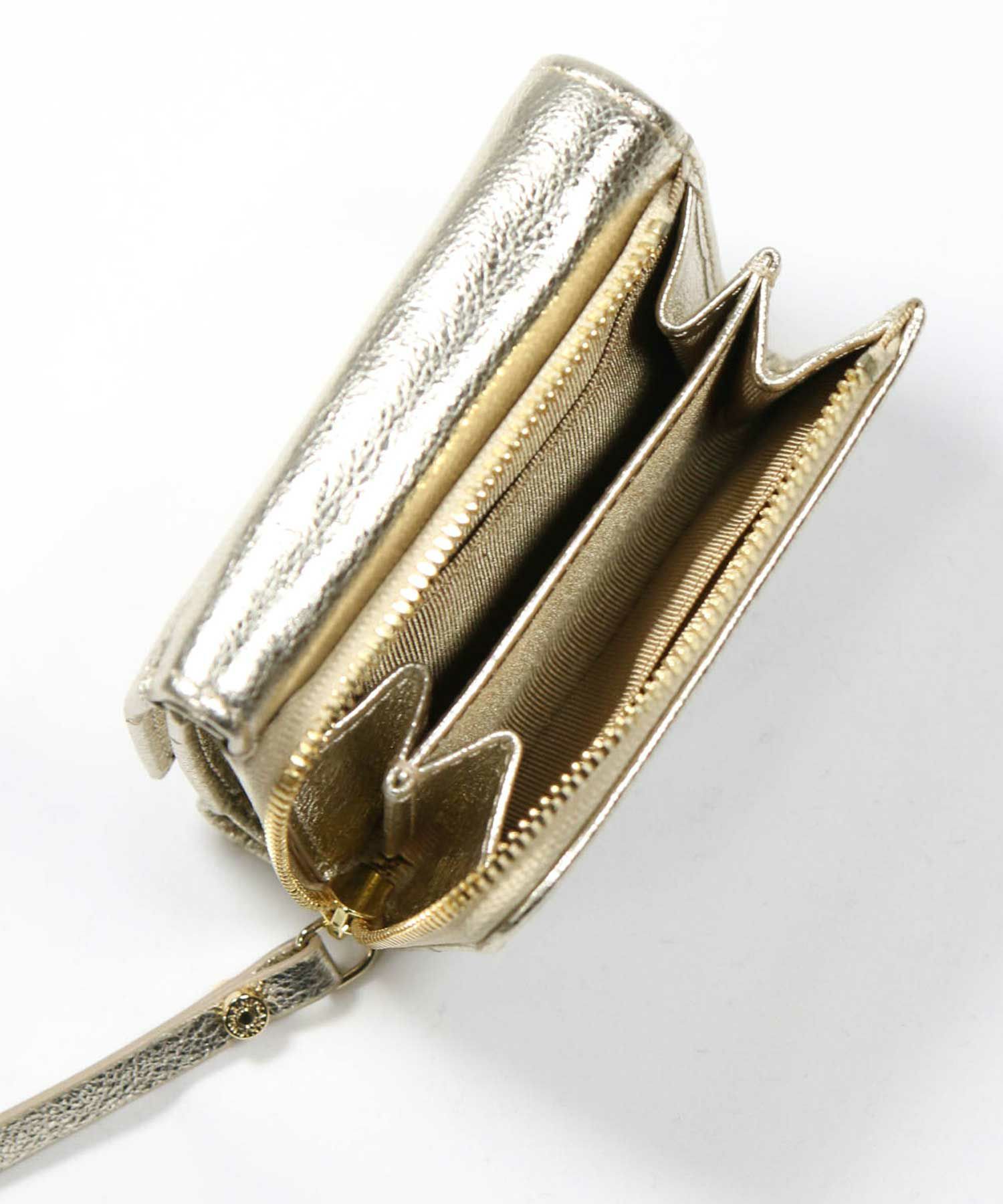 独立した小銭入れはファスナー開閉で一目で全体が見える仕様です。
