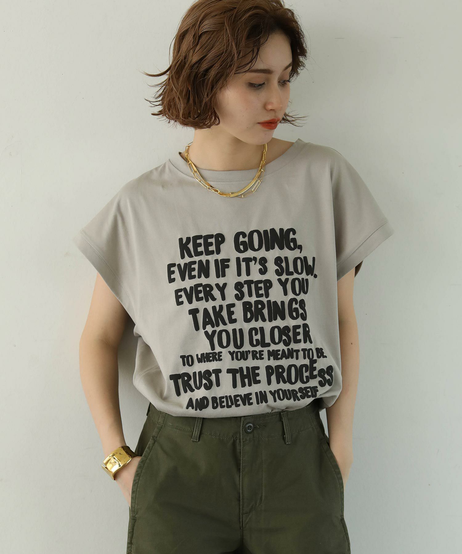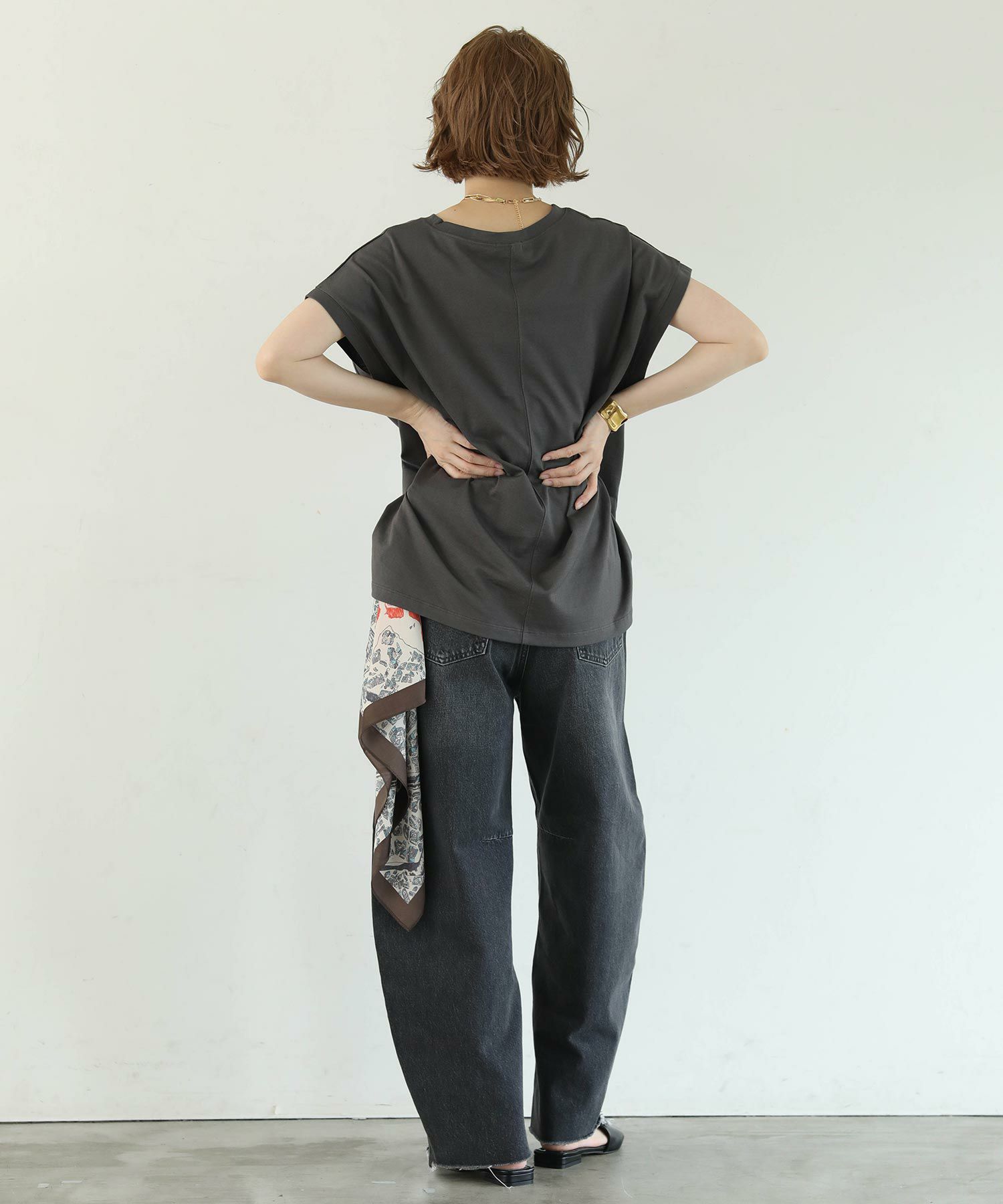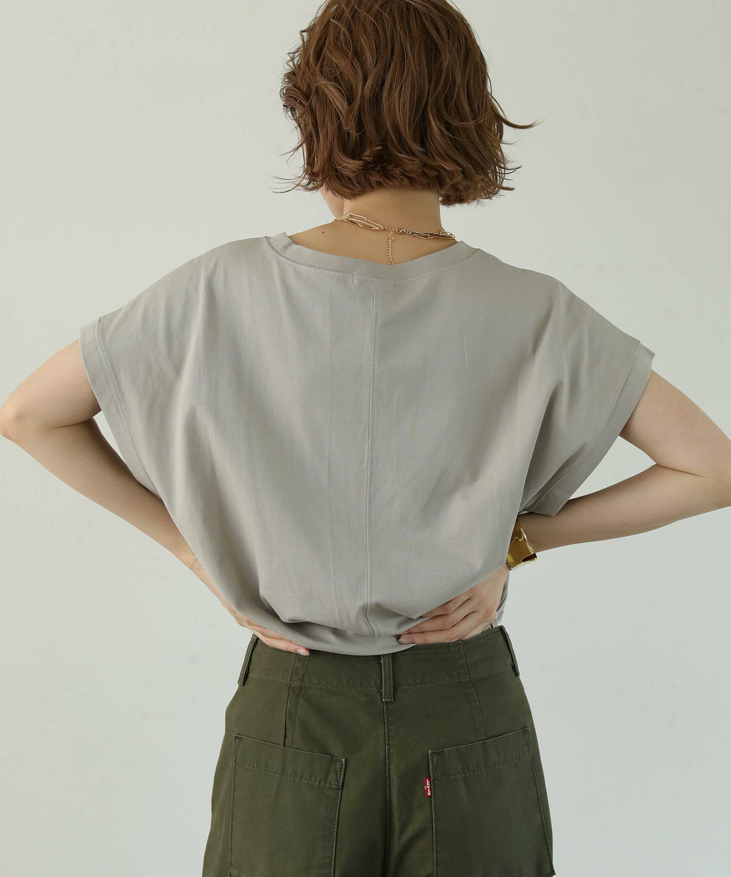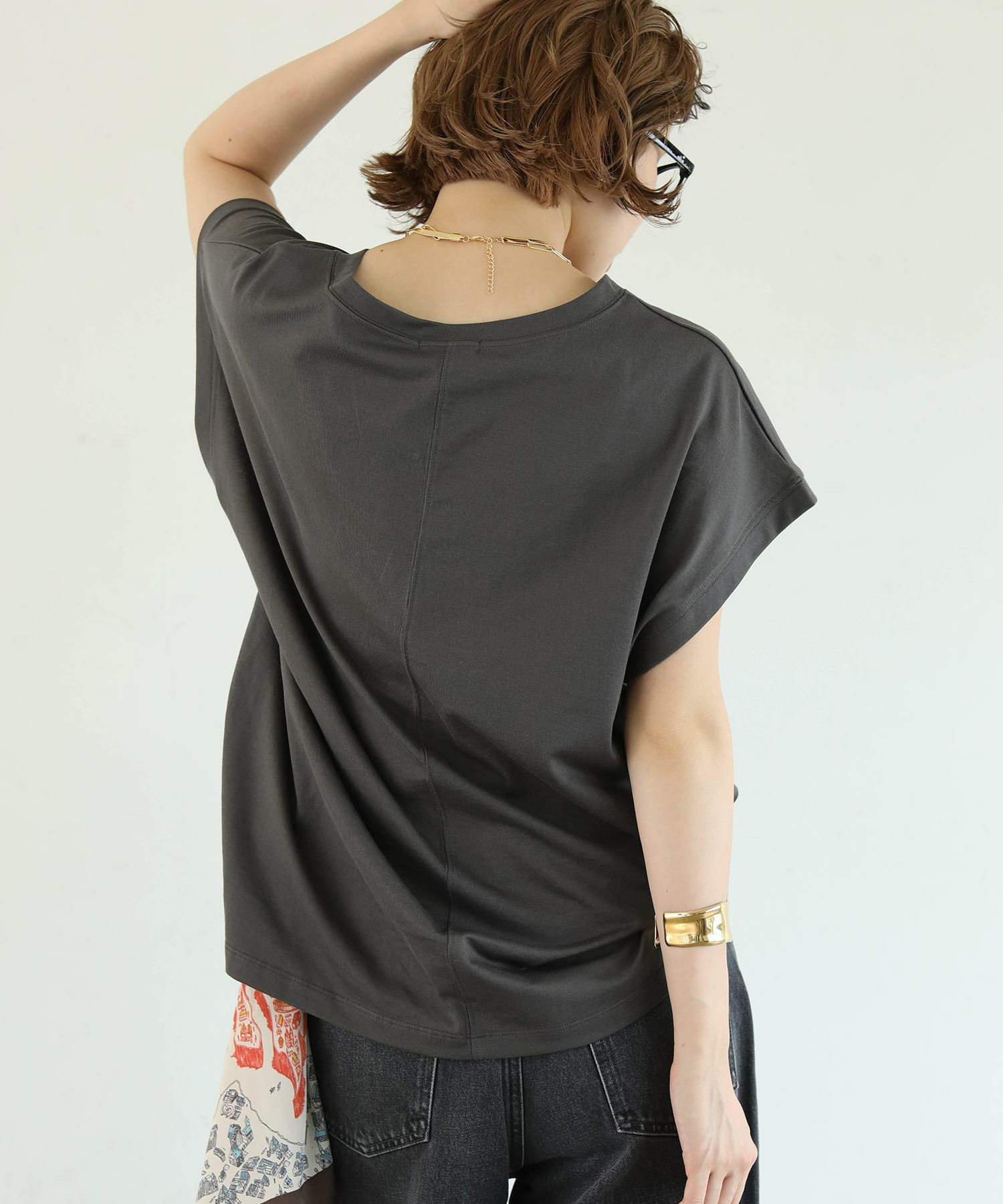 ヒップや二の腕をカバーしてくれるゆったりしたサイズ感で、リラクシーに涼しく着て頂けます。