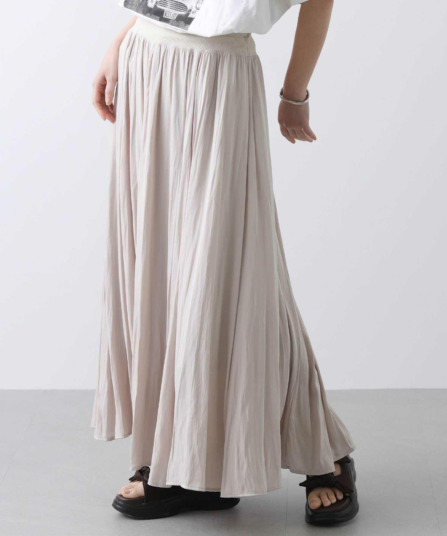 幅広リブのイージーなウエストデザインを取り入れた穿き心地抜群のスカート。