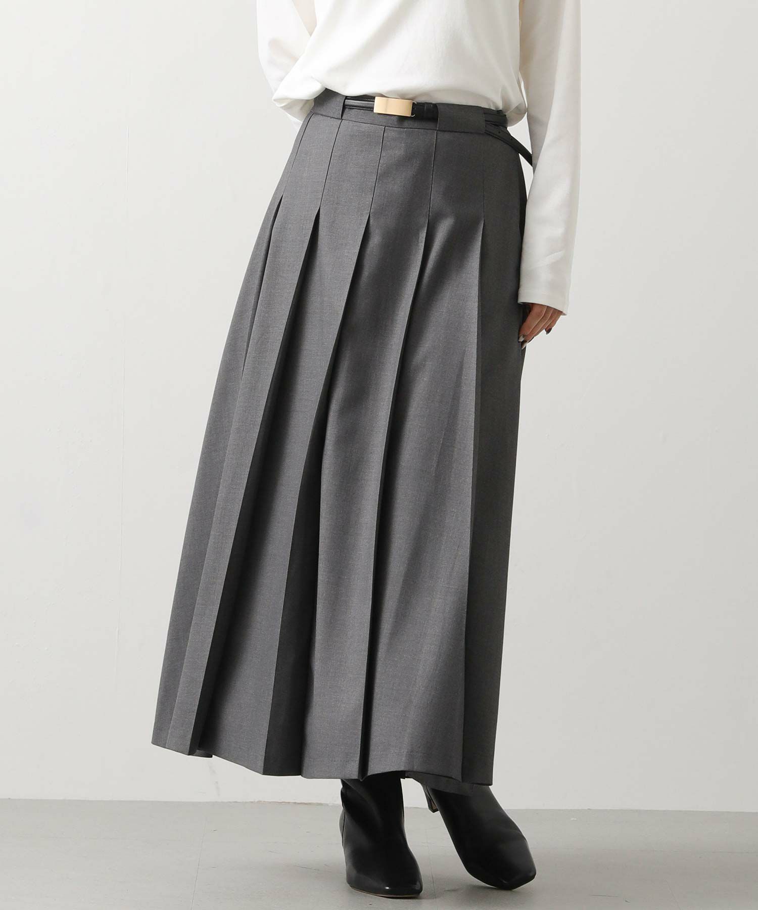今季トレンドのワイドプリーツがトラッドでクラシカルな印象のスカート。