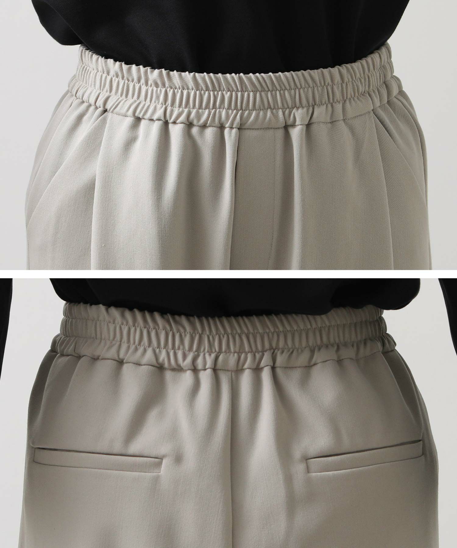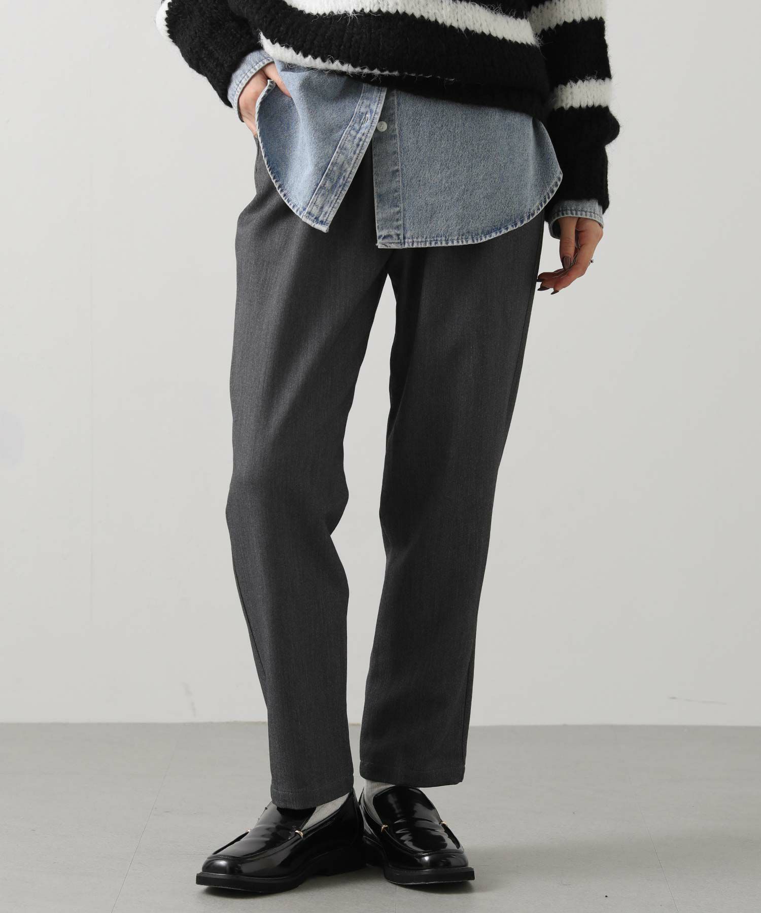 ウエストゴムの楽ちんな穿き心地に、きちんと見えするシルエットがオン・オフ使える万能パンツです。