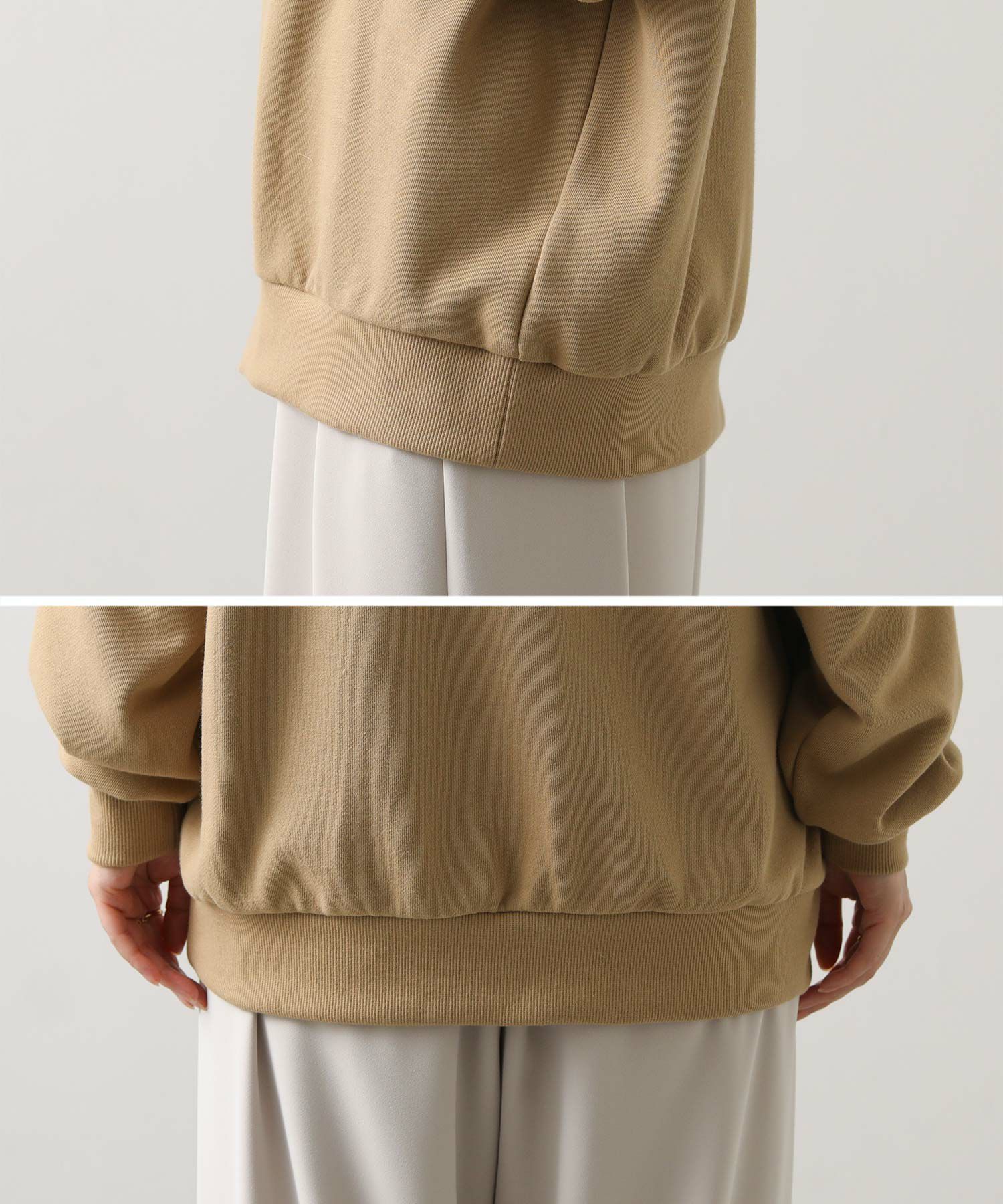 柔らかな裏毛素材を使用。上品で大人っぽいフォントのロゴなので、カジュアルになりすぎず女性らしく決まります。
