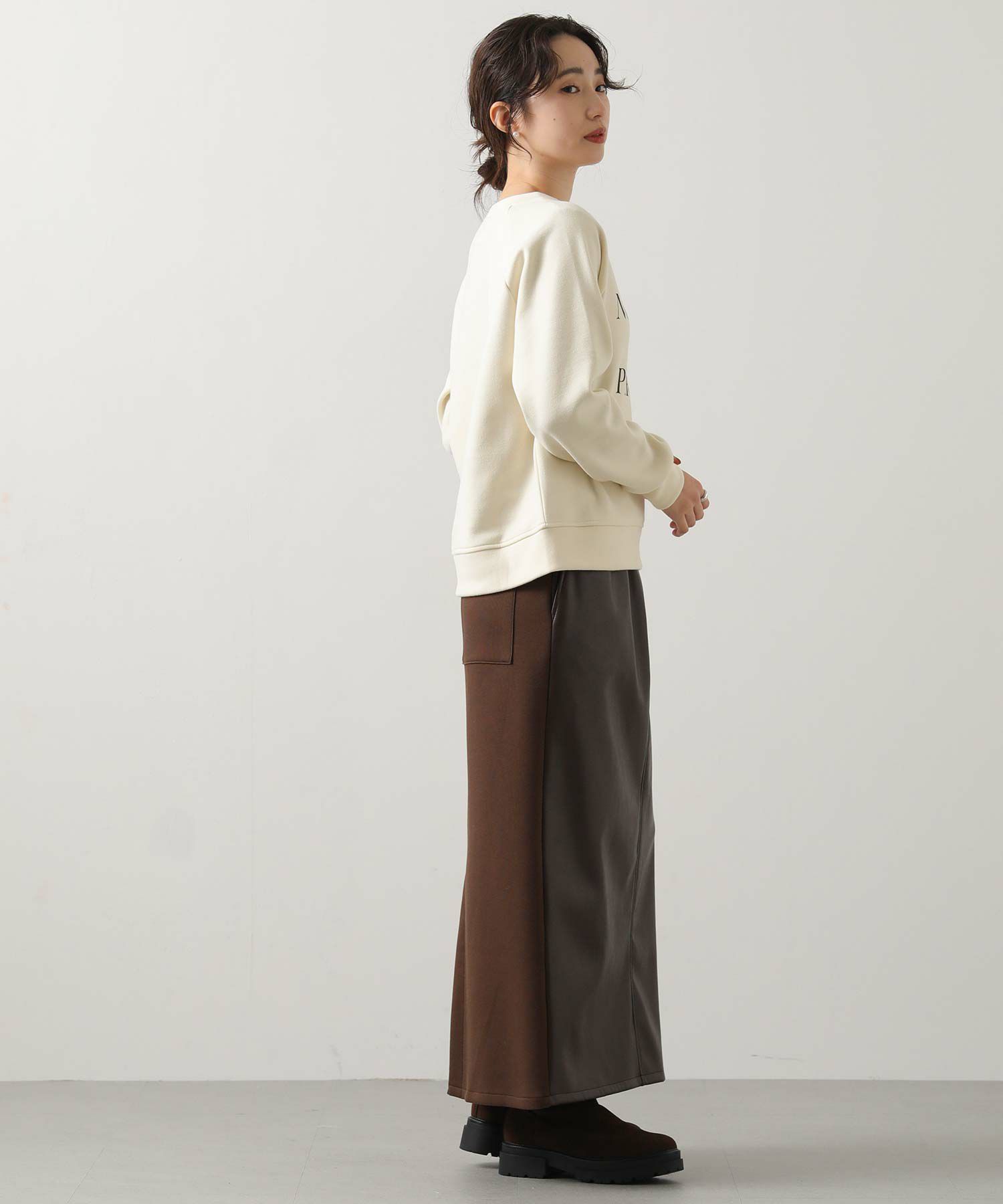 大人のリラックス感と女性らしさを両立したミニ裏毛スウェット。
