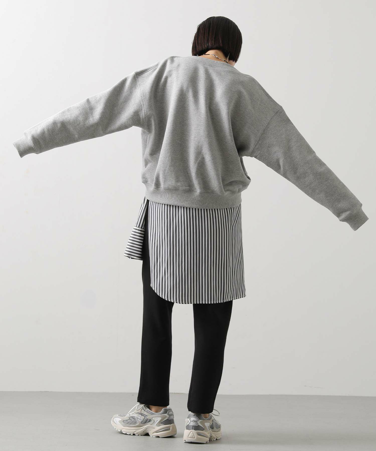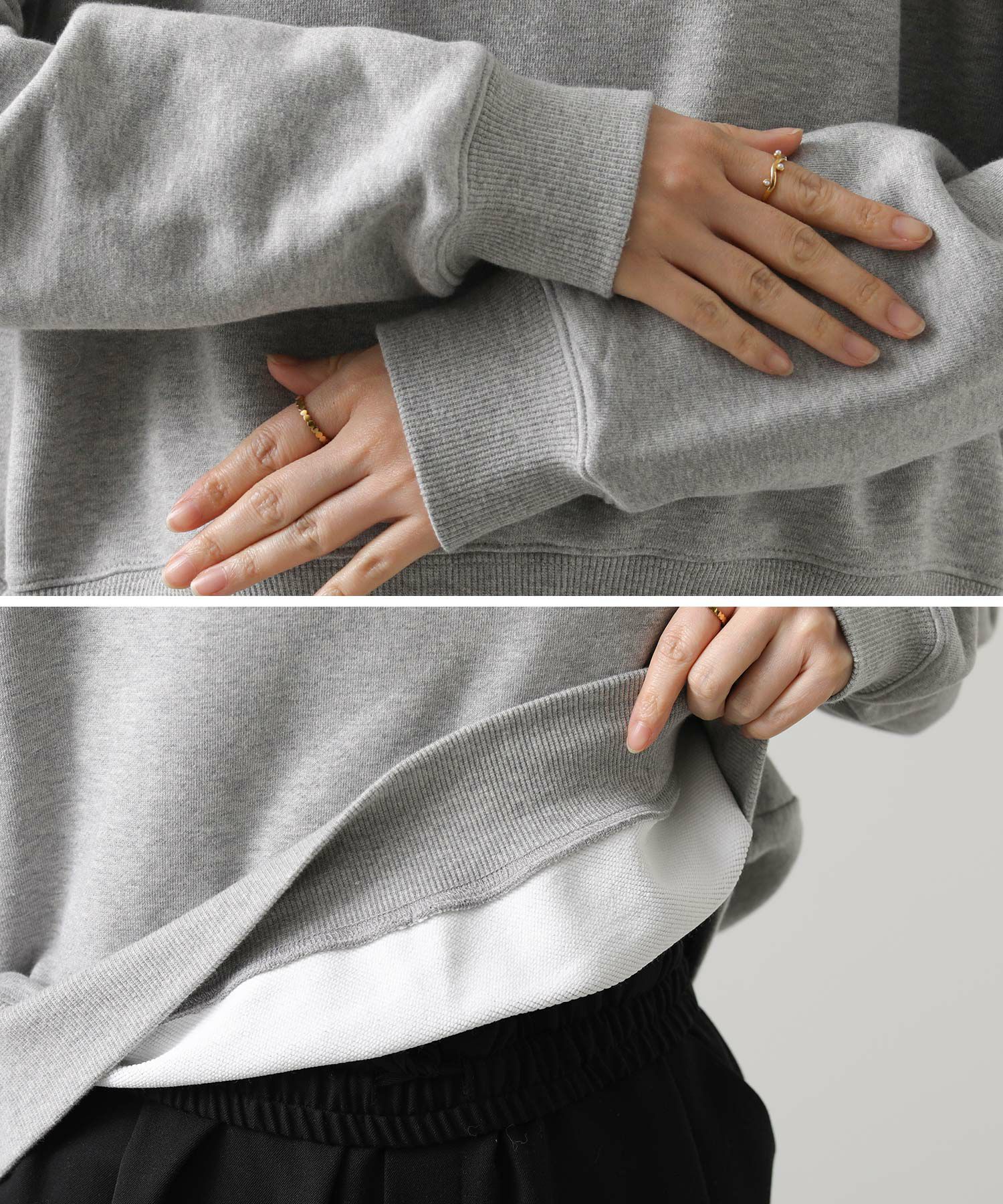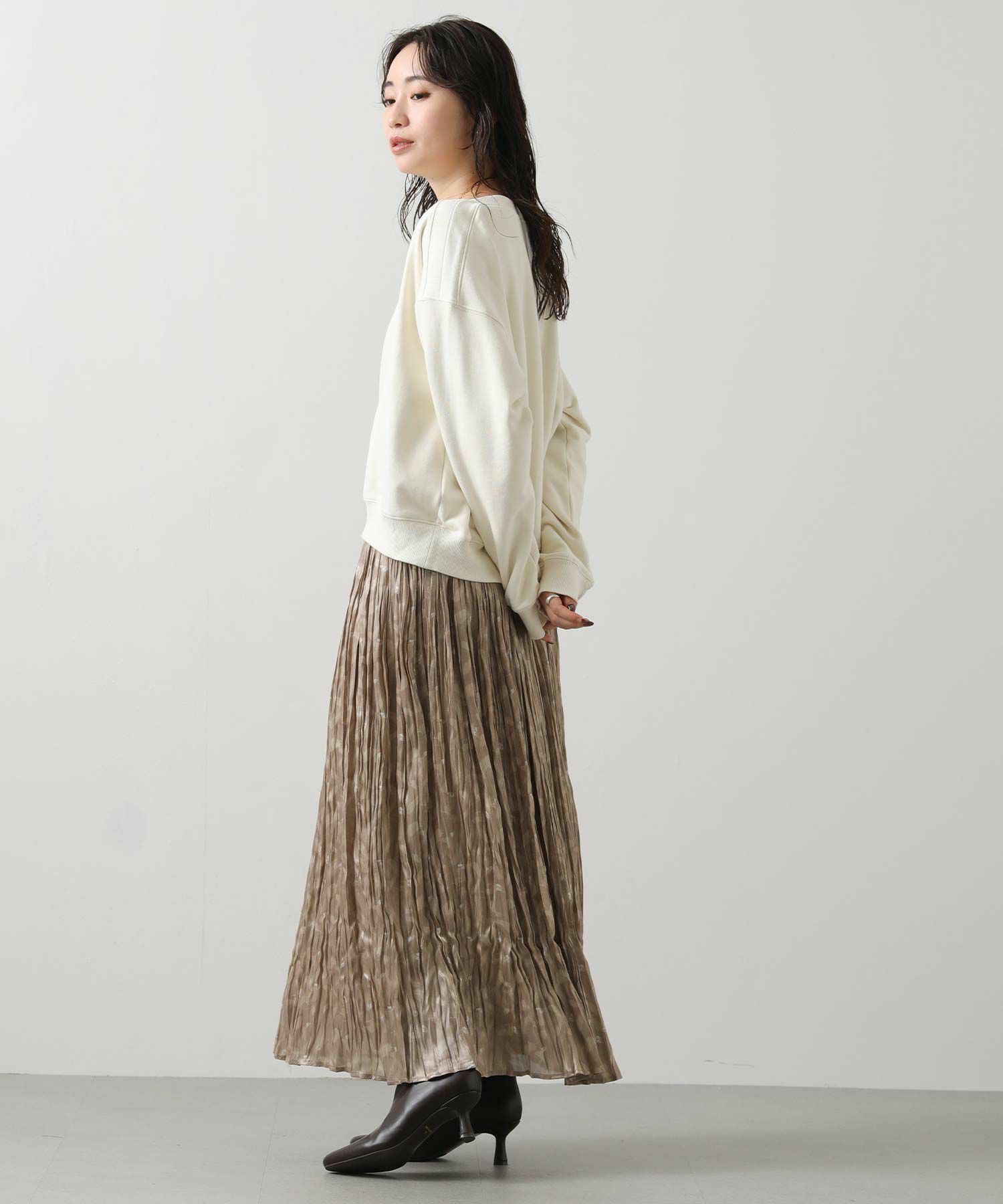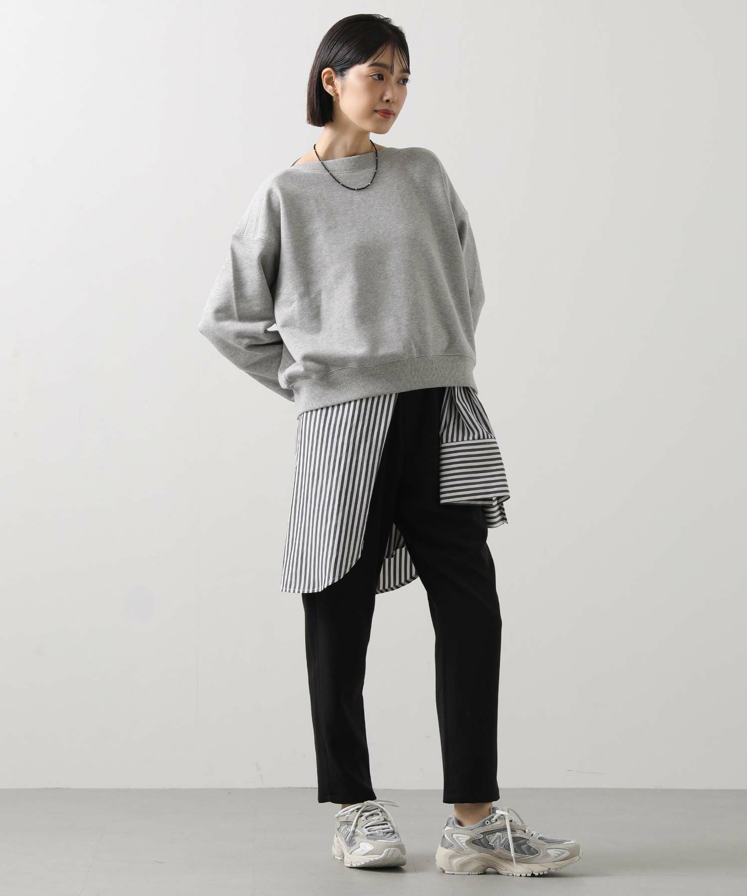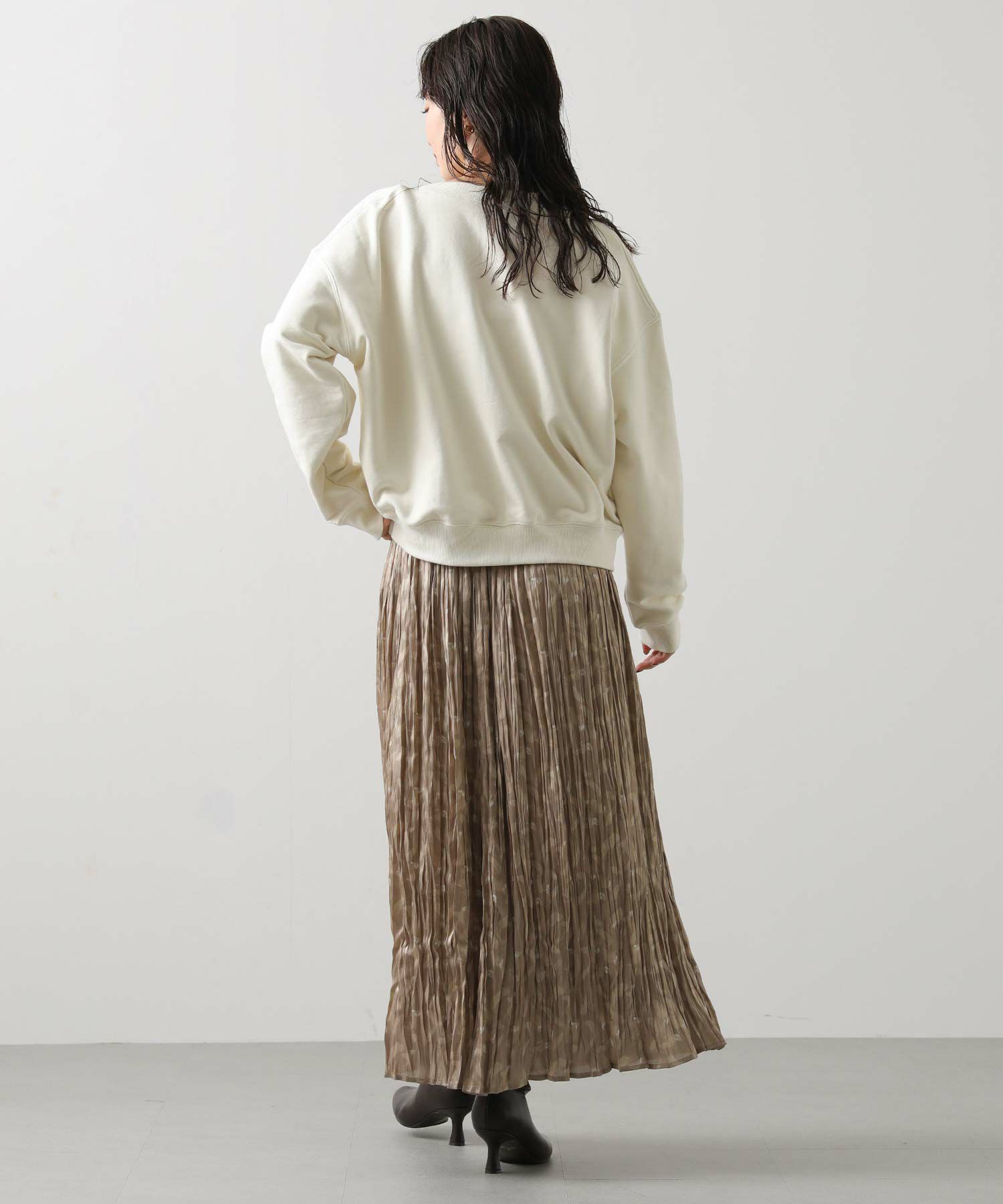 柔らかな裏毛素材が着心地の良さを叶えつつ、きれいめスタイルにも自然に馴染む1着。