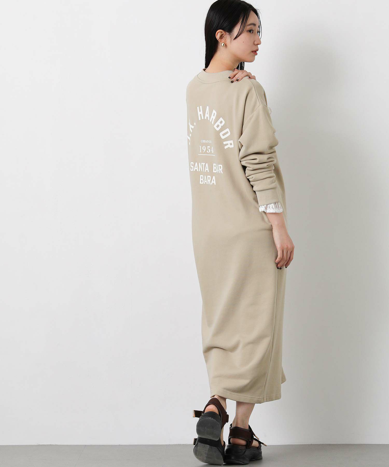 裏毛カットソーを使用した、程よい厚みで春先まで着用できるハーフジップワンピース。