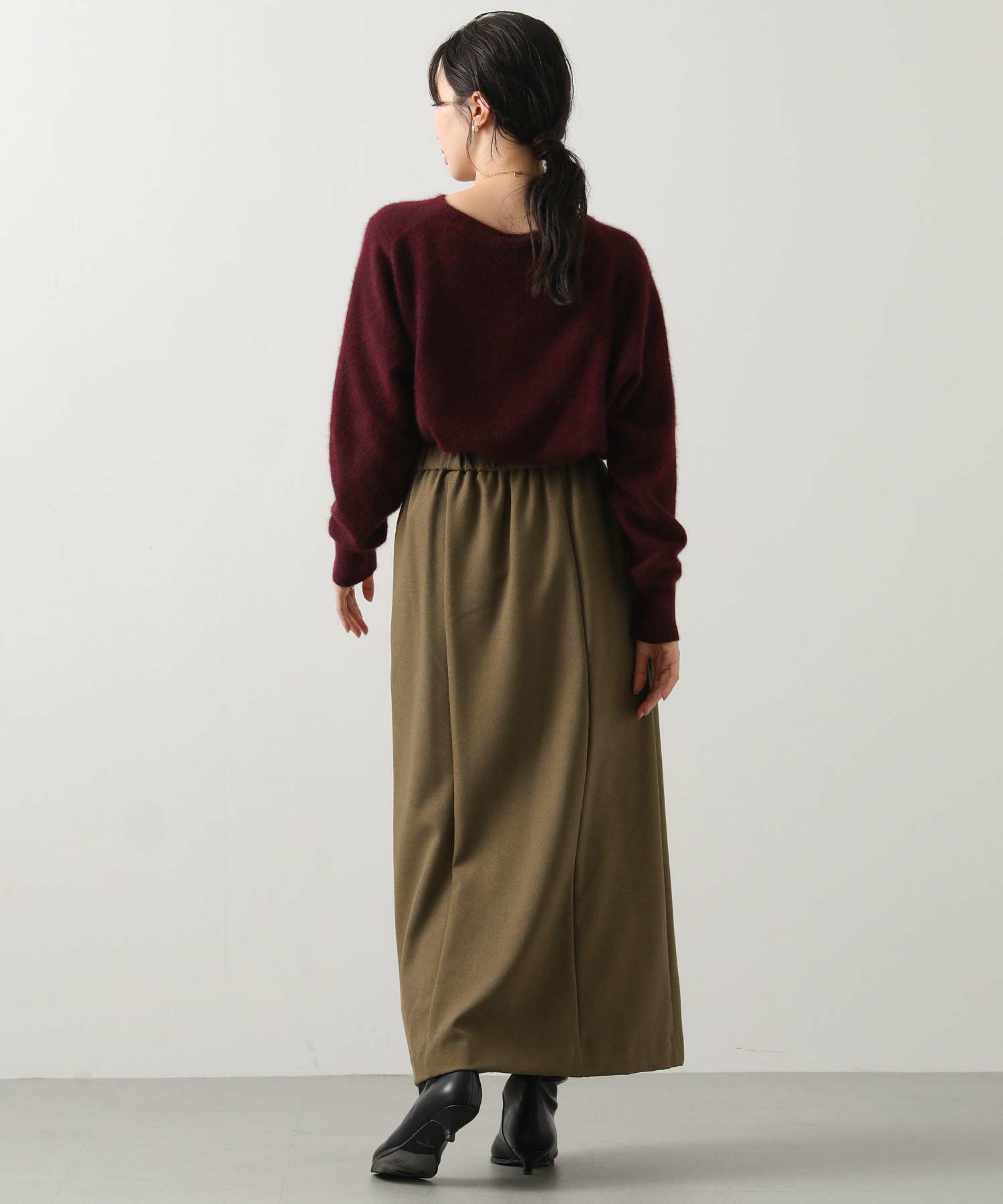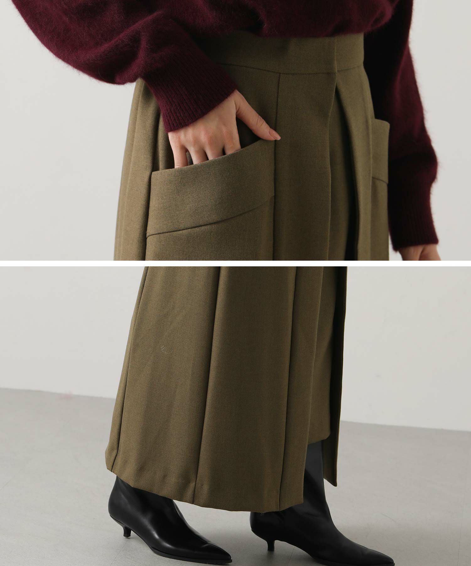 ラップスカートを外せば、シンプルなタイトスカートとしても着用できる2WAY仕様です。