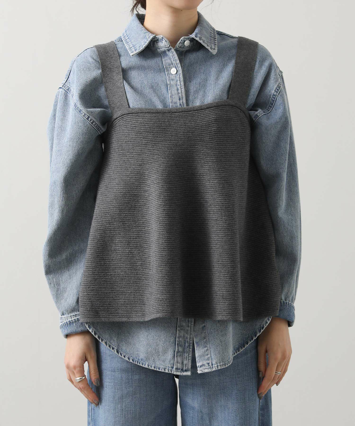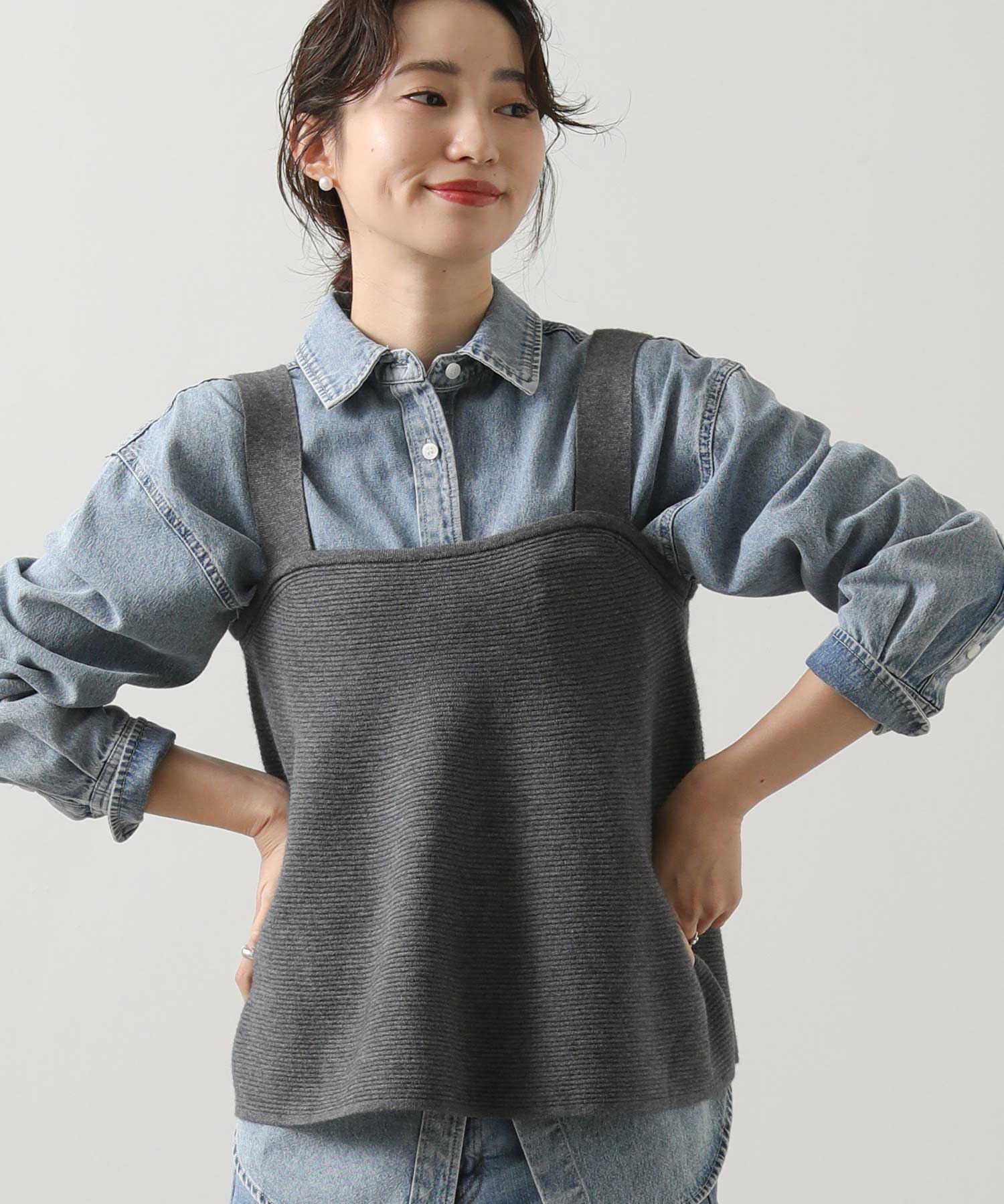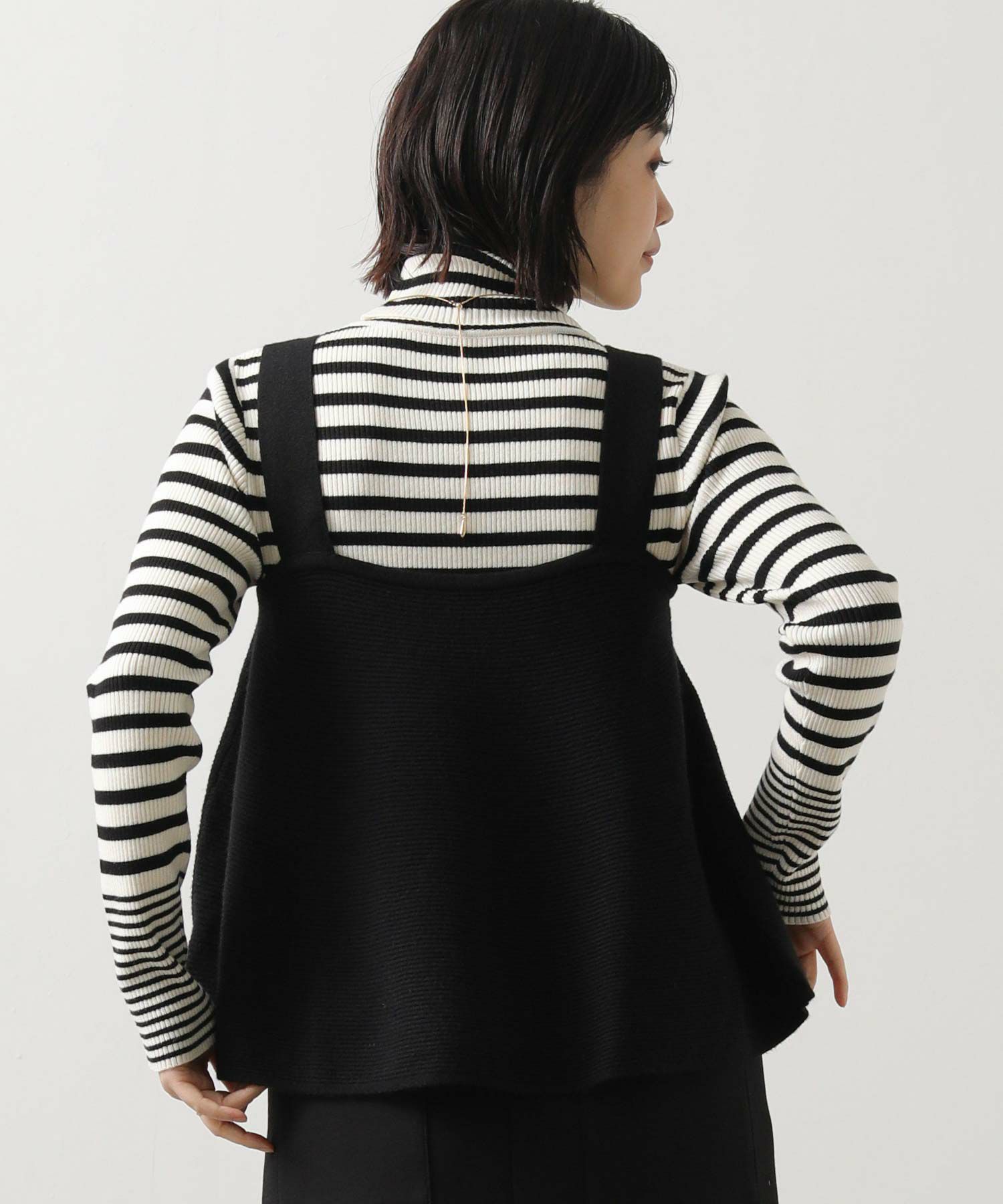 ややショート丈のデザインで、ハイウエストボトムとの相性も抜群◎
