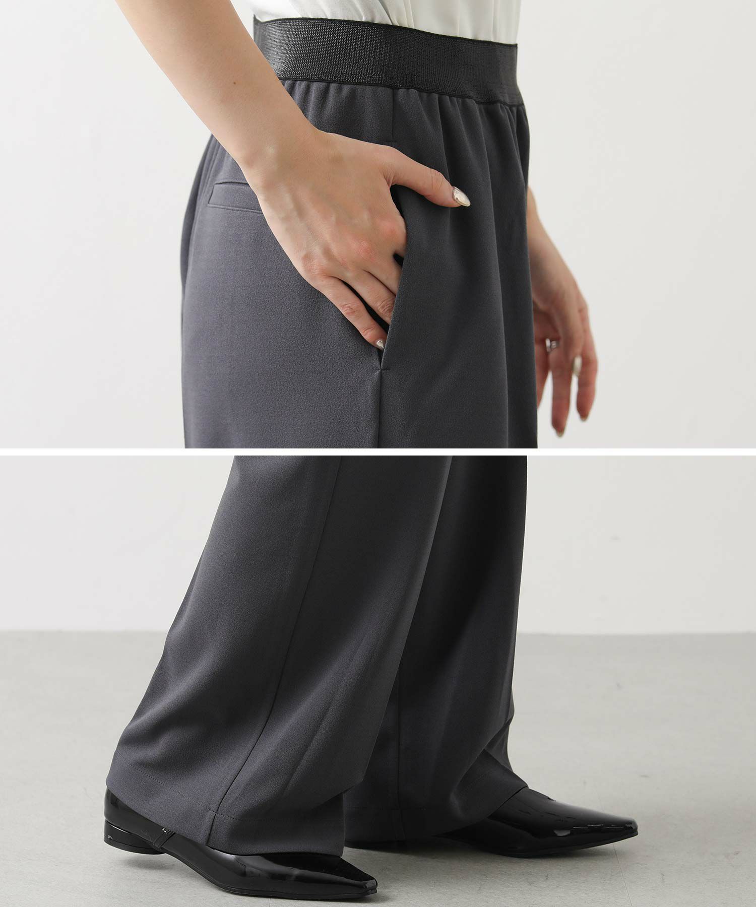 さらっと軽やかなストレッチジョーゼットを使用し、ポイントのラメ入りベルトは総ゴムで穿き心地◎