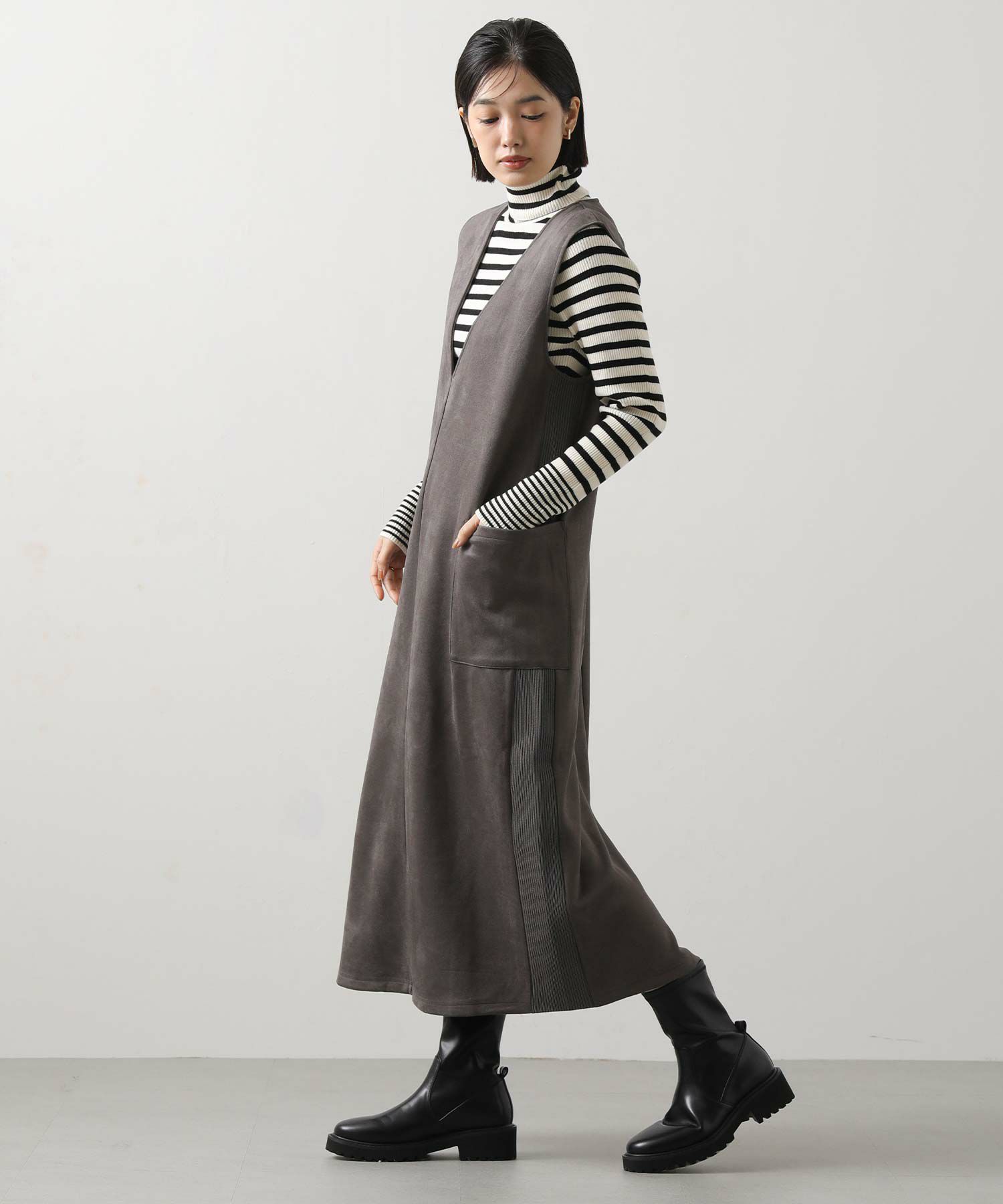 シーズンムードを高めてくれる、スエードライク素材のワンピース。