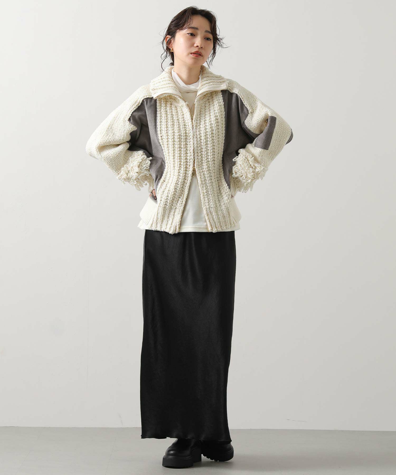 ※着用画像は撮影状況、光の当たり具合で色みが違って見える場合がございます。実際の色みについては、画像一覧の最後に掲載している詳細画像をご参照ください。