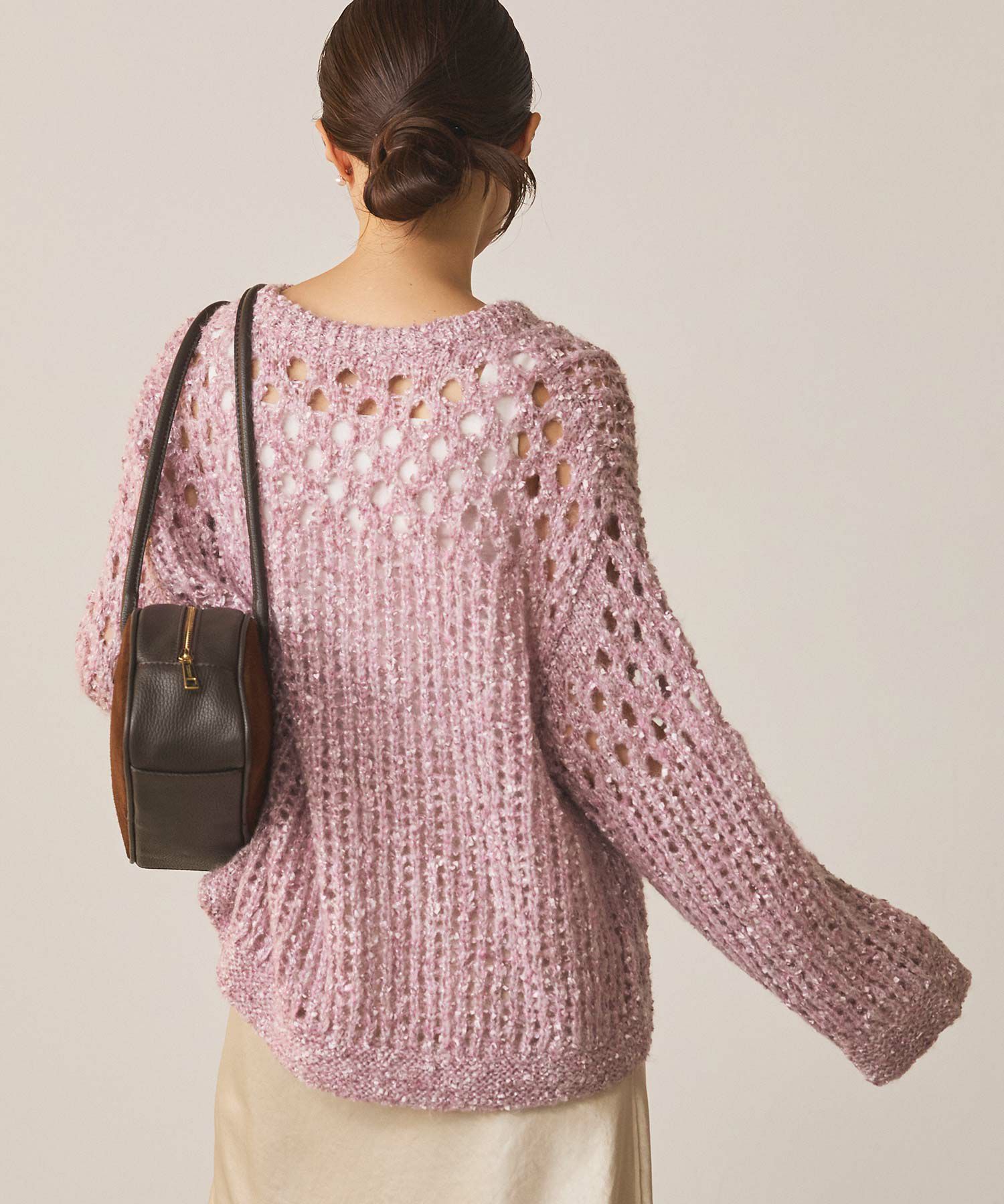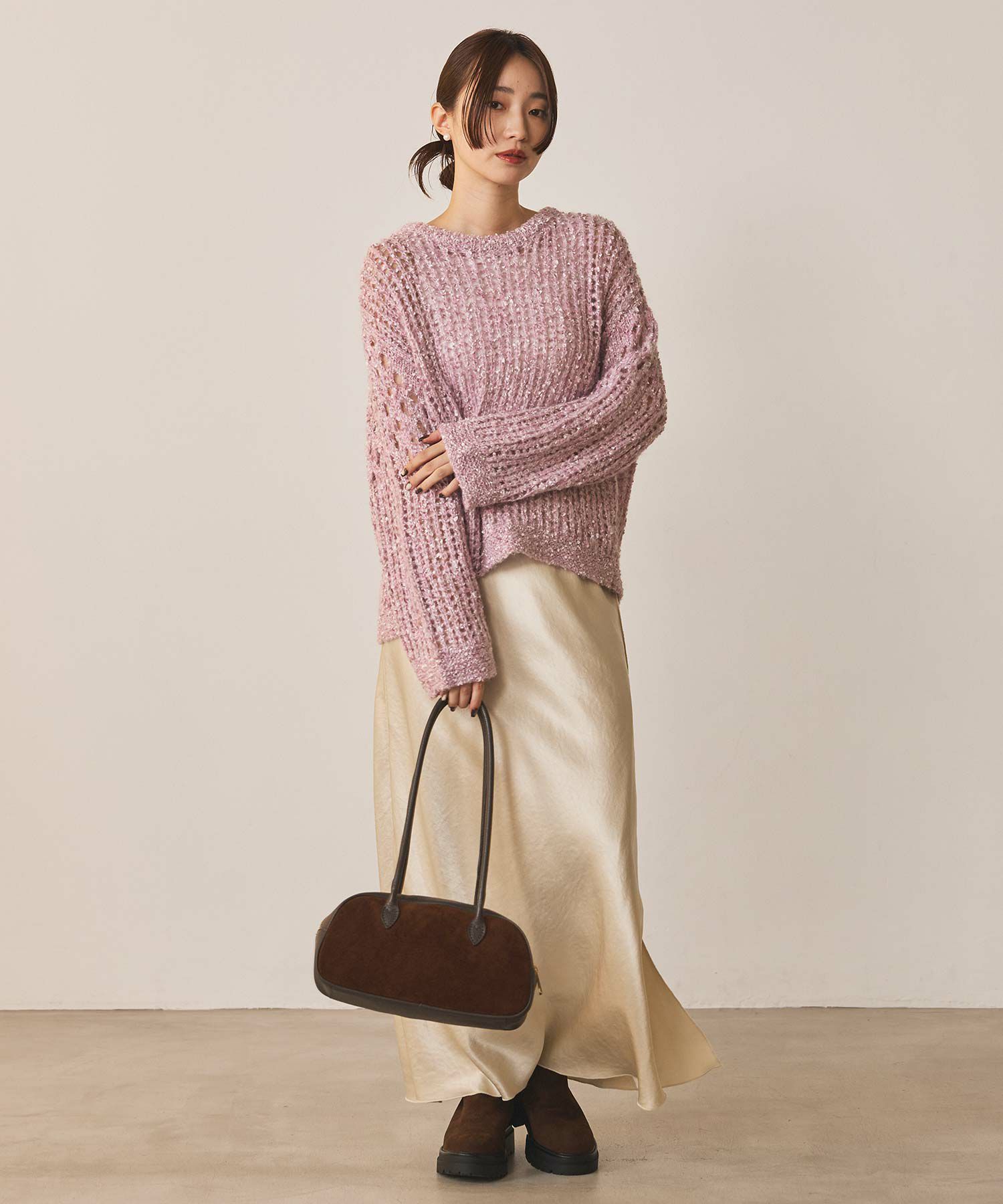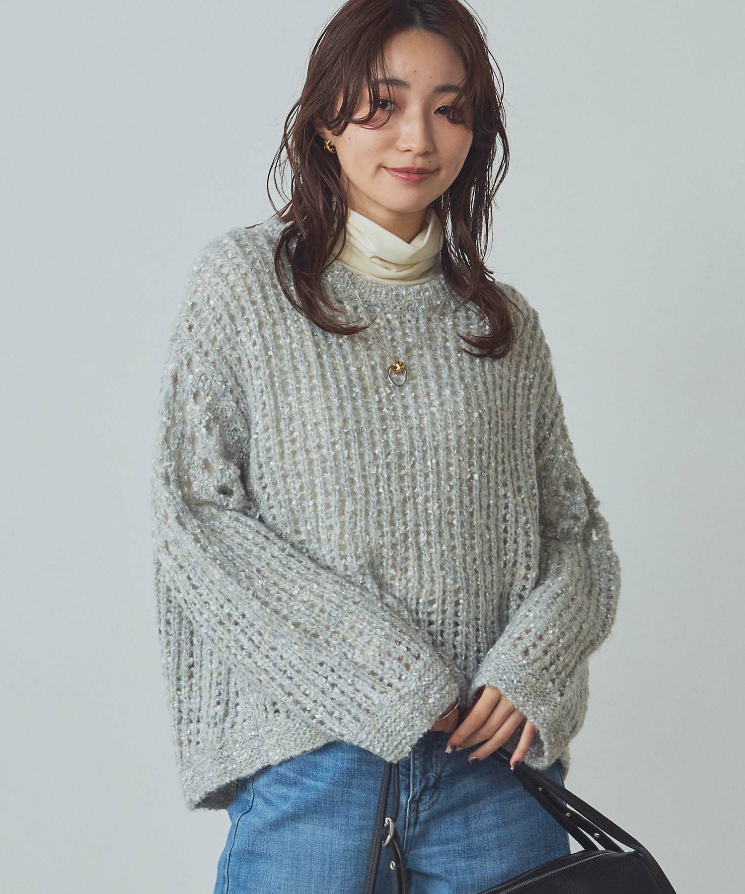 透け感のある編地が重くなりがちな秋冬コーデに抜け感を演出してくれます。