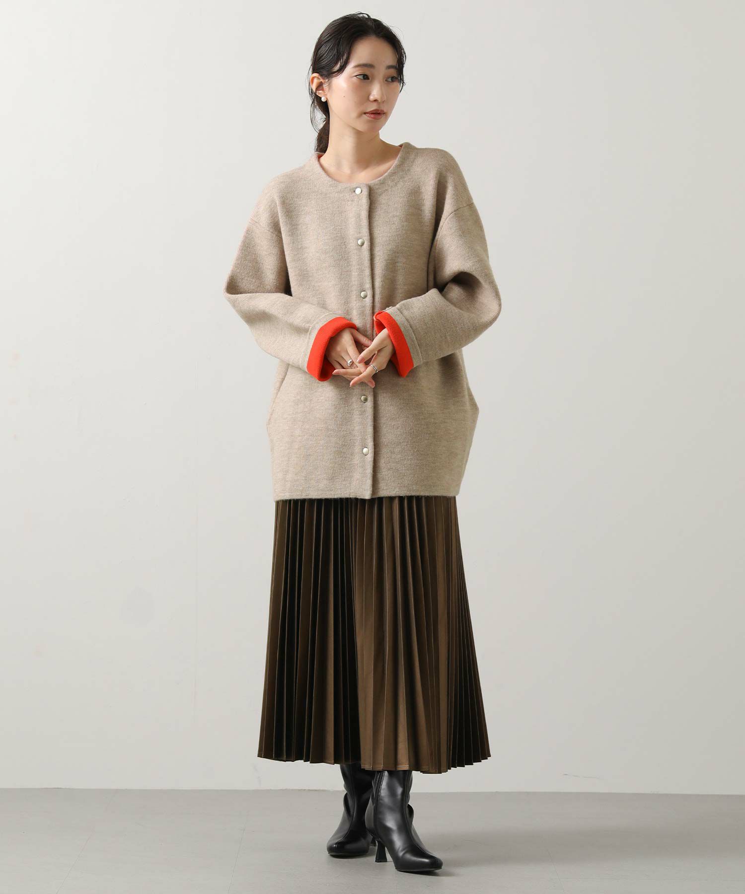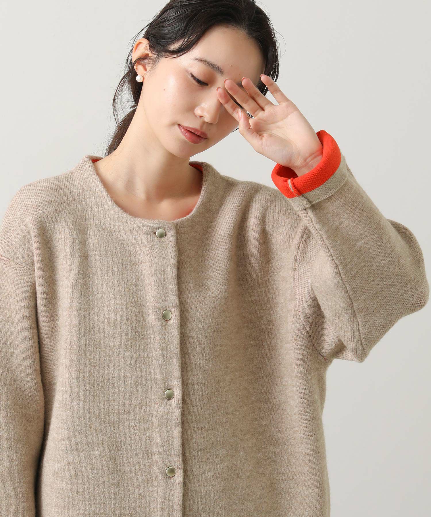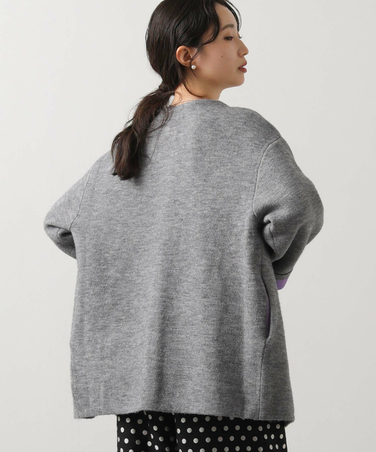 カーディガンとしてもアウターとしても楽しめる1枚です。