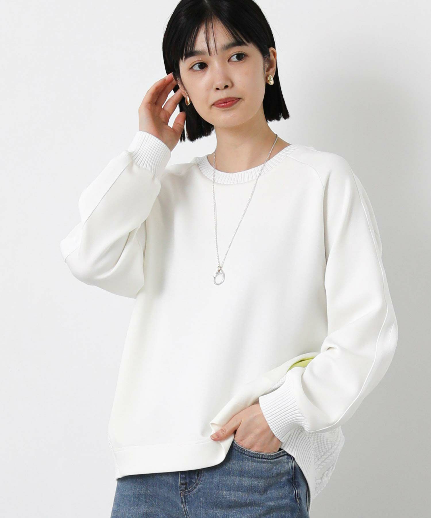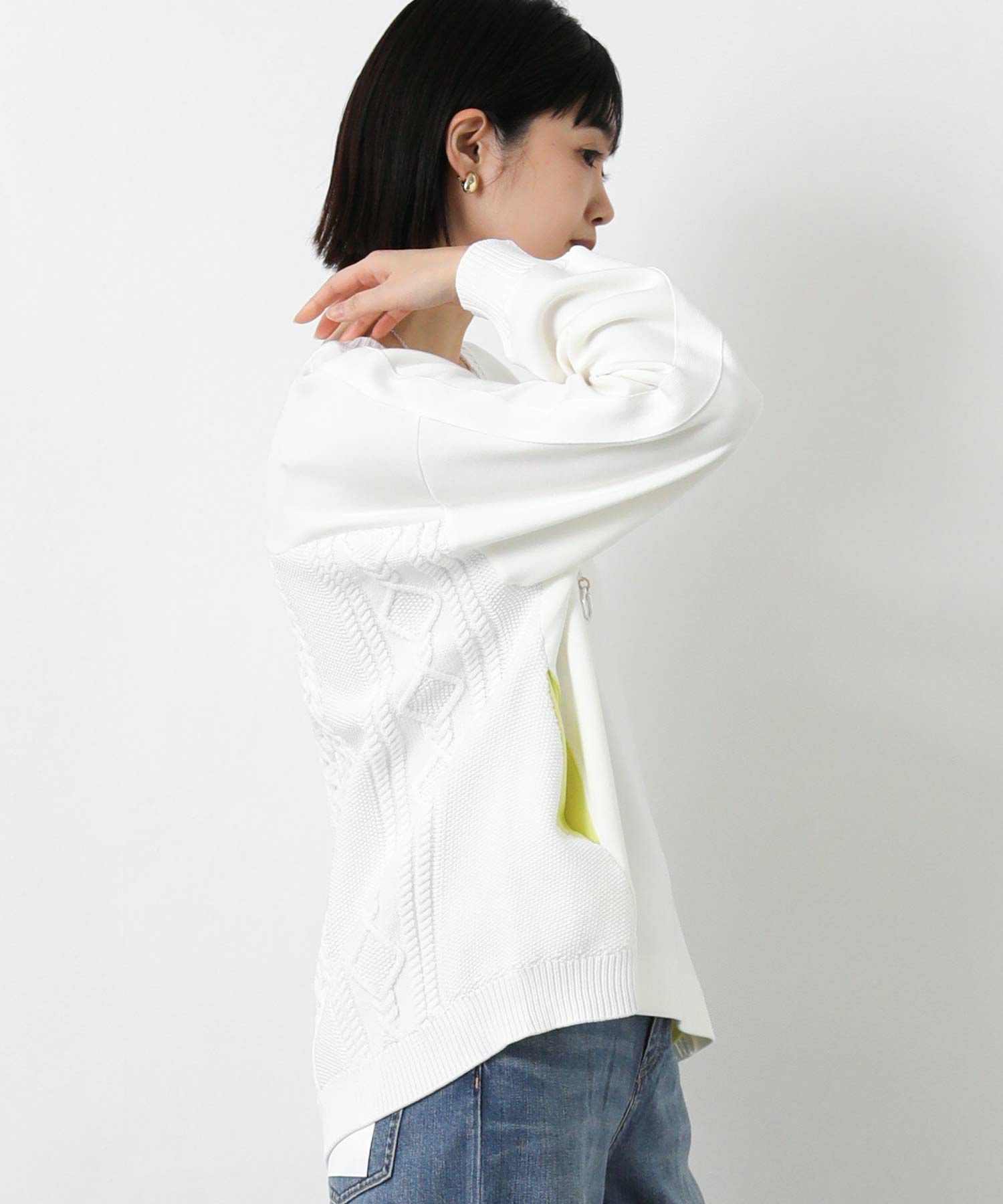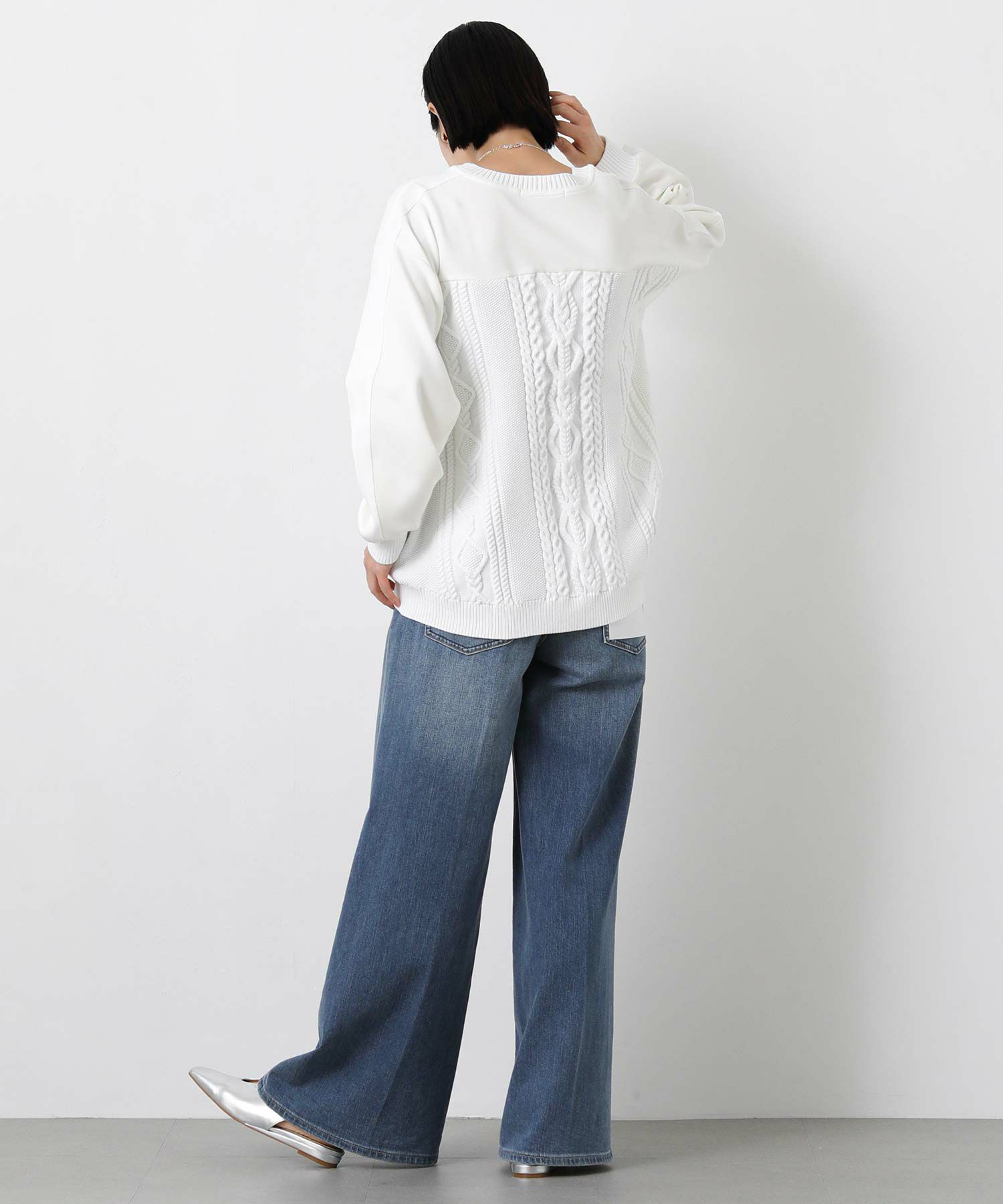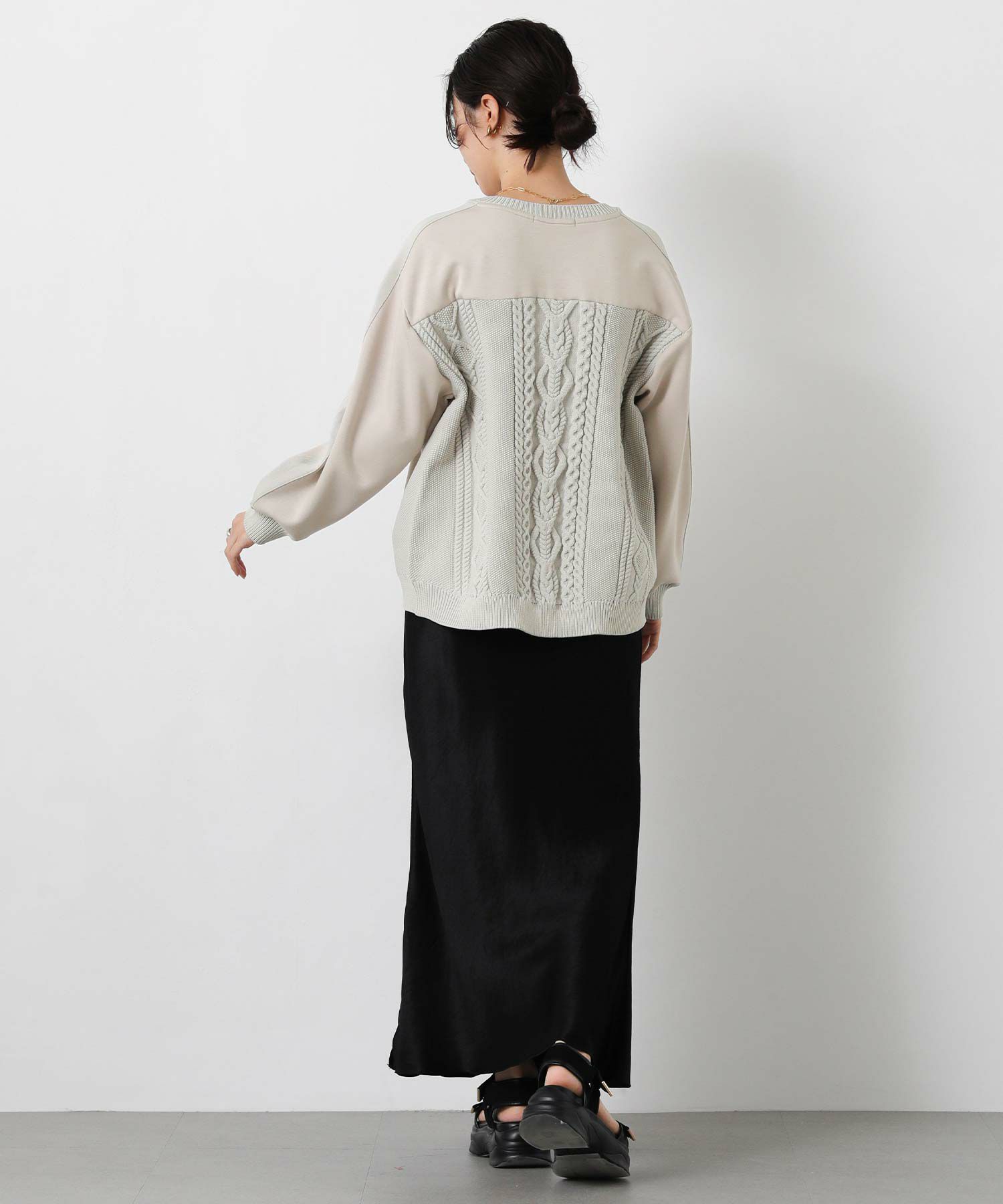 ケーブルニットとカットソーをドッキングしたプルオーバー。
