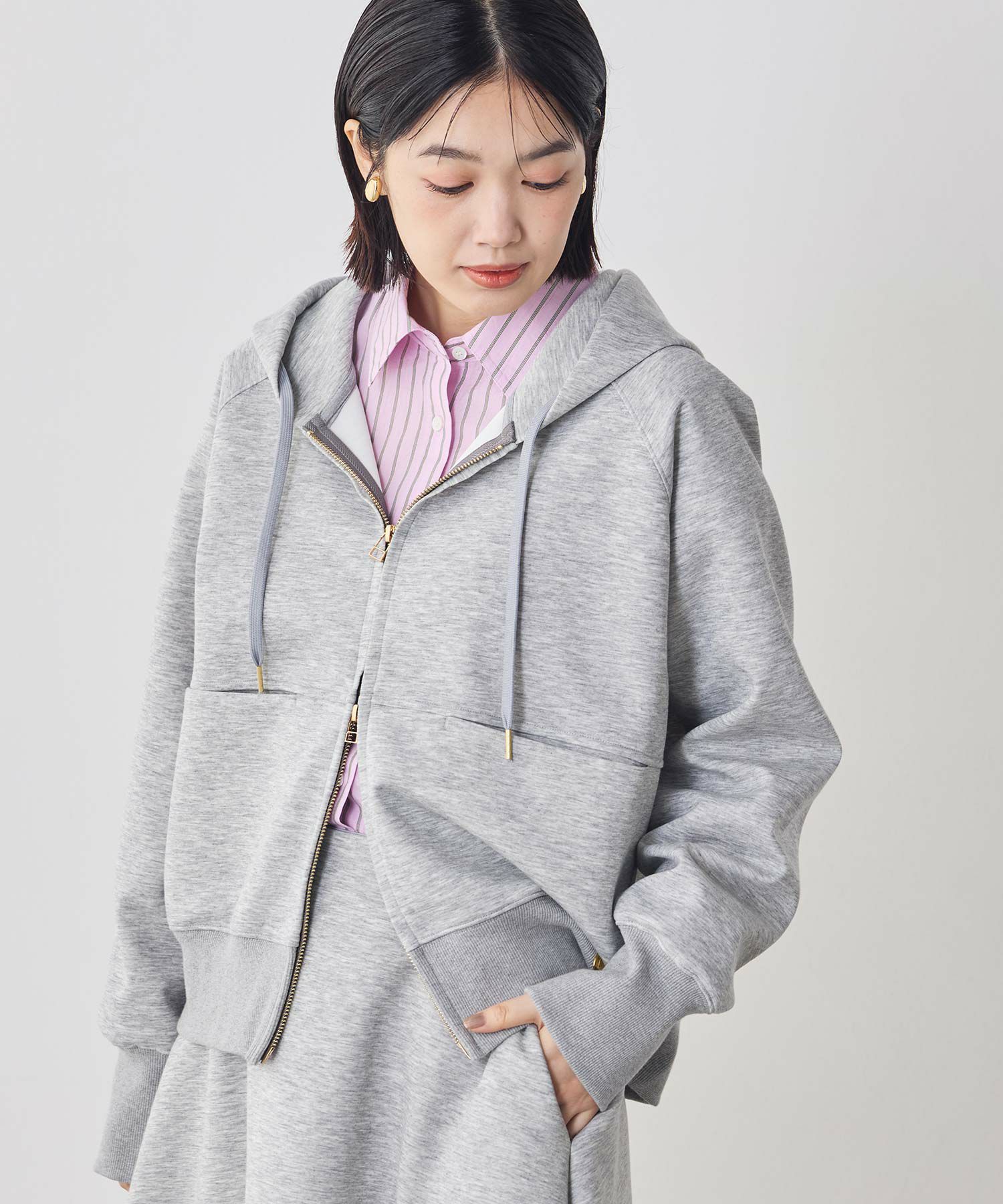 癖がなく誰にでも似合うパーカーを意識し、カジュアルながらも綺麗に見え、大人の女性にマッチするようこだわりました。
