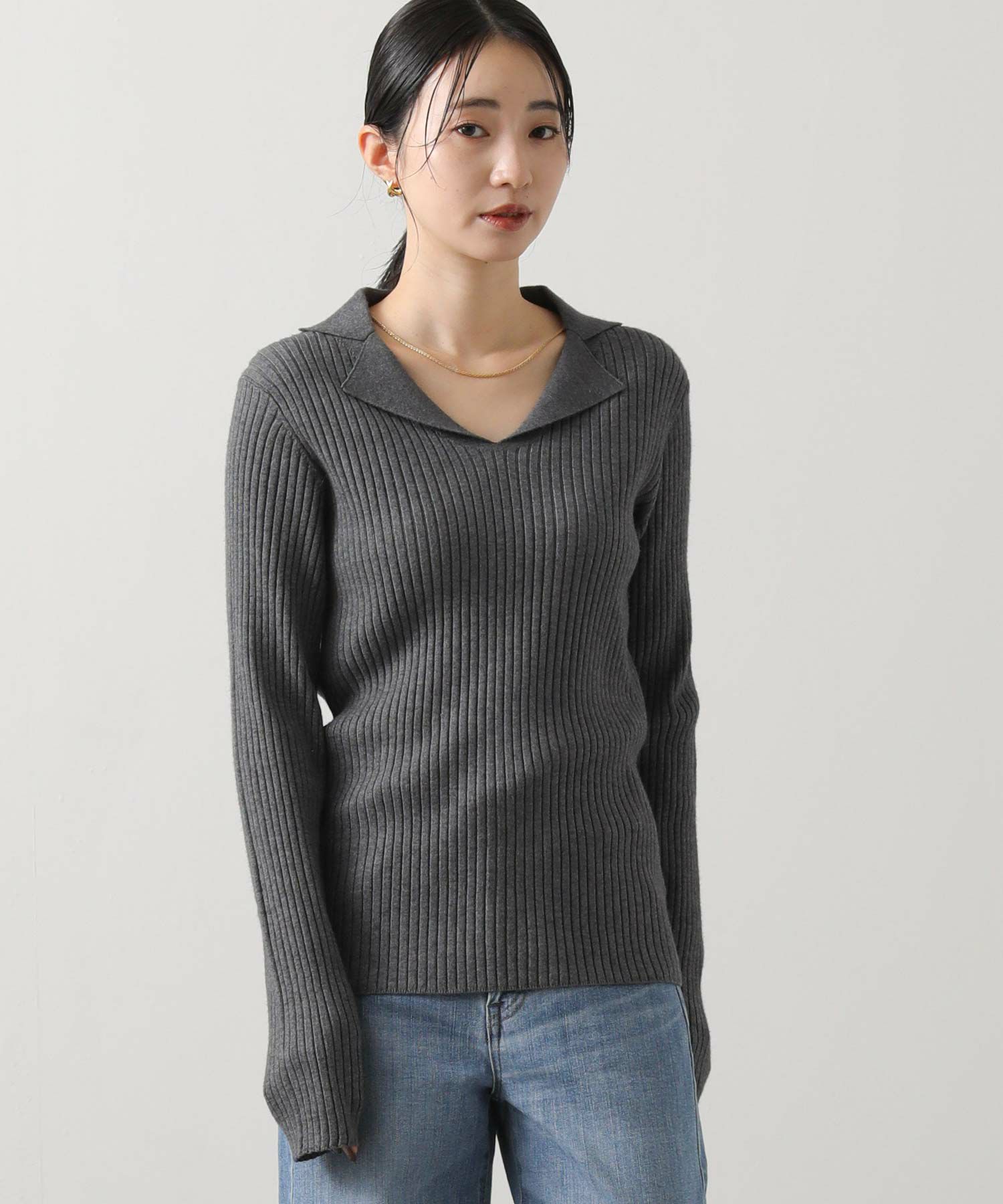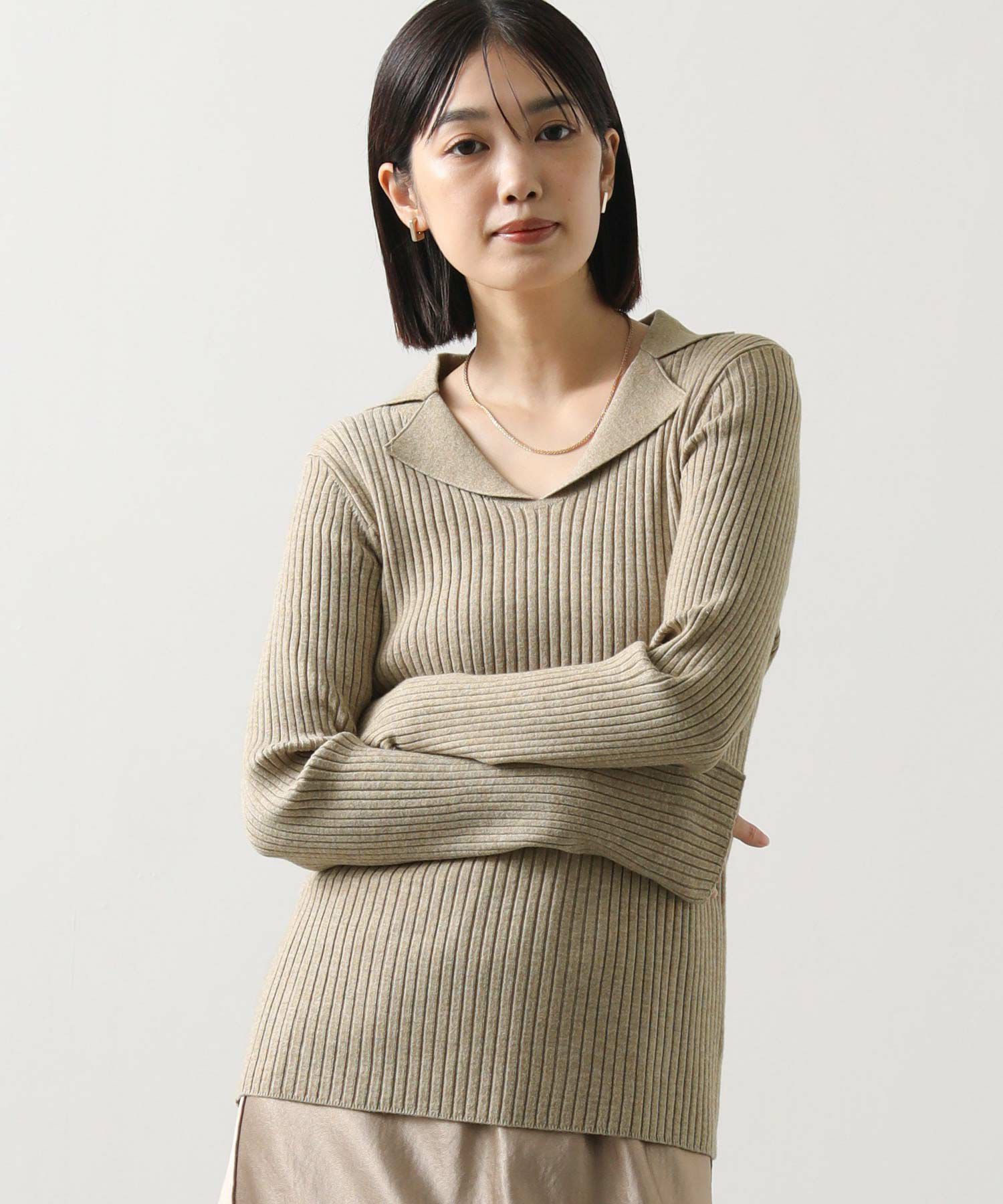 肌触りの柔らかな糸を使用したリブ編みニットプルオーバー。