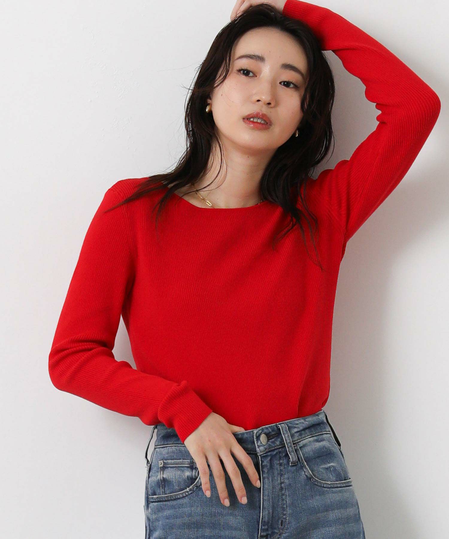 タイトめなサイズ感ですが、程よい厚みがあるので1枚でもサマになります。