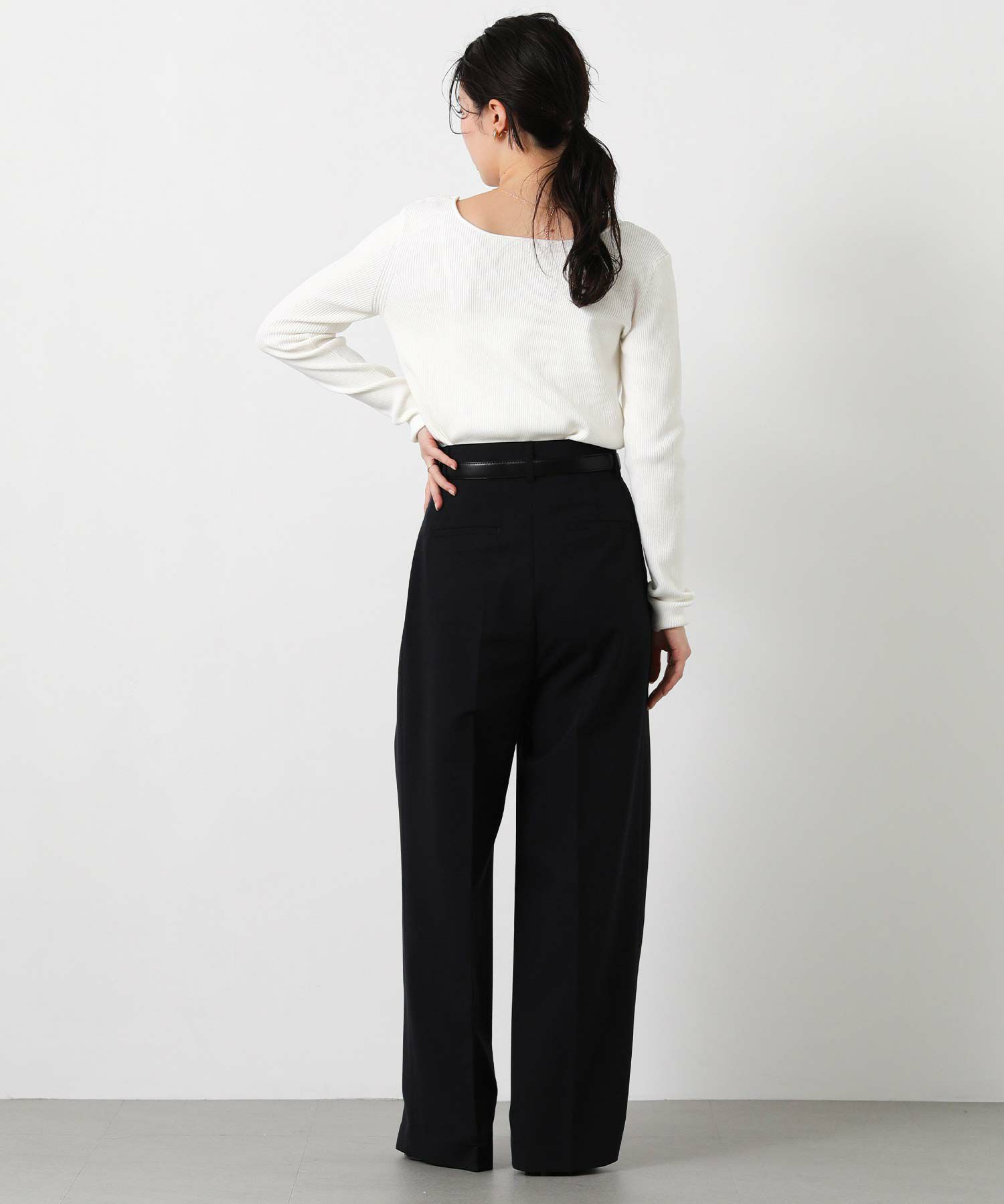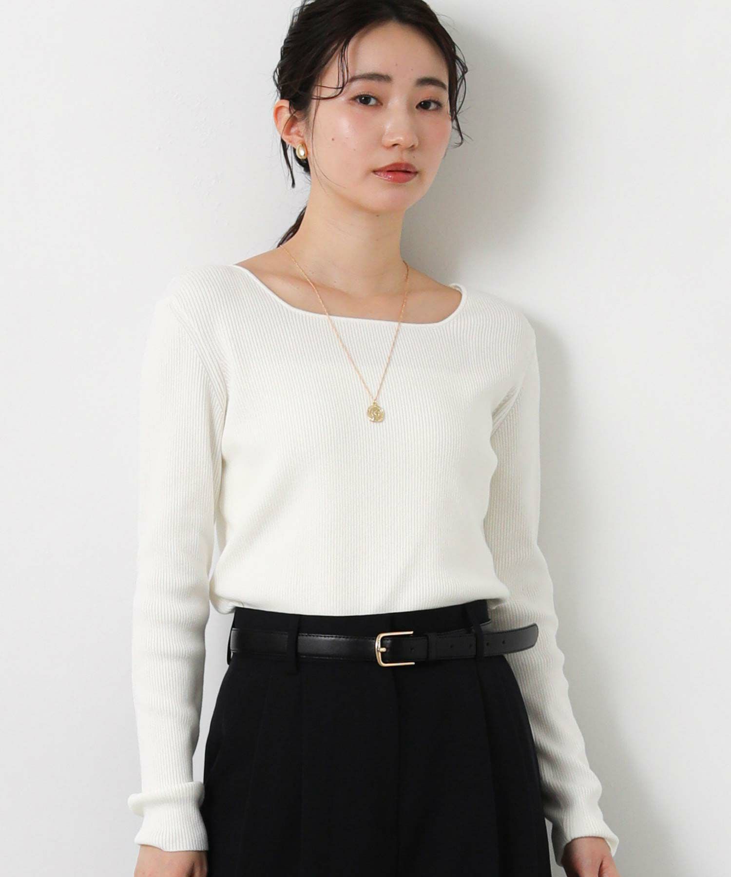 ベーシックなクルーネック、ヘルシー見えするスクエアネックの両方を楽しめる前後2way仕様。