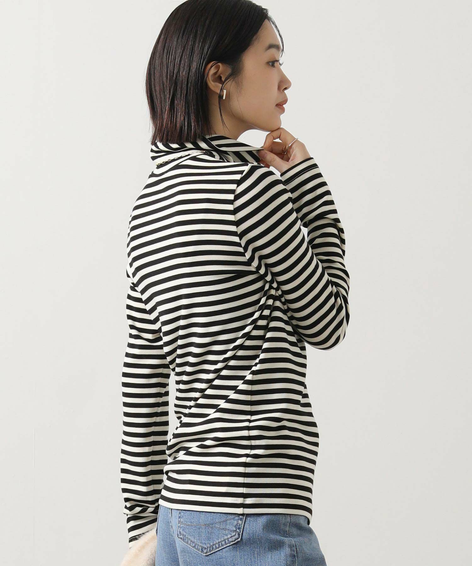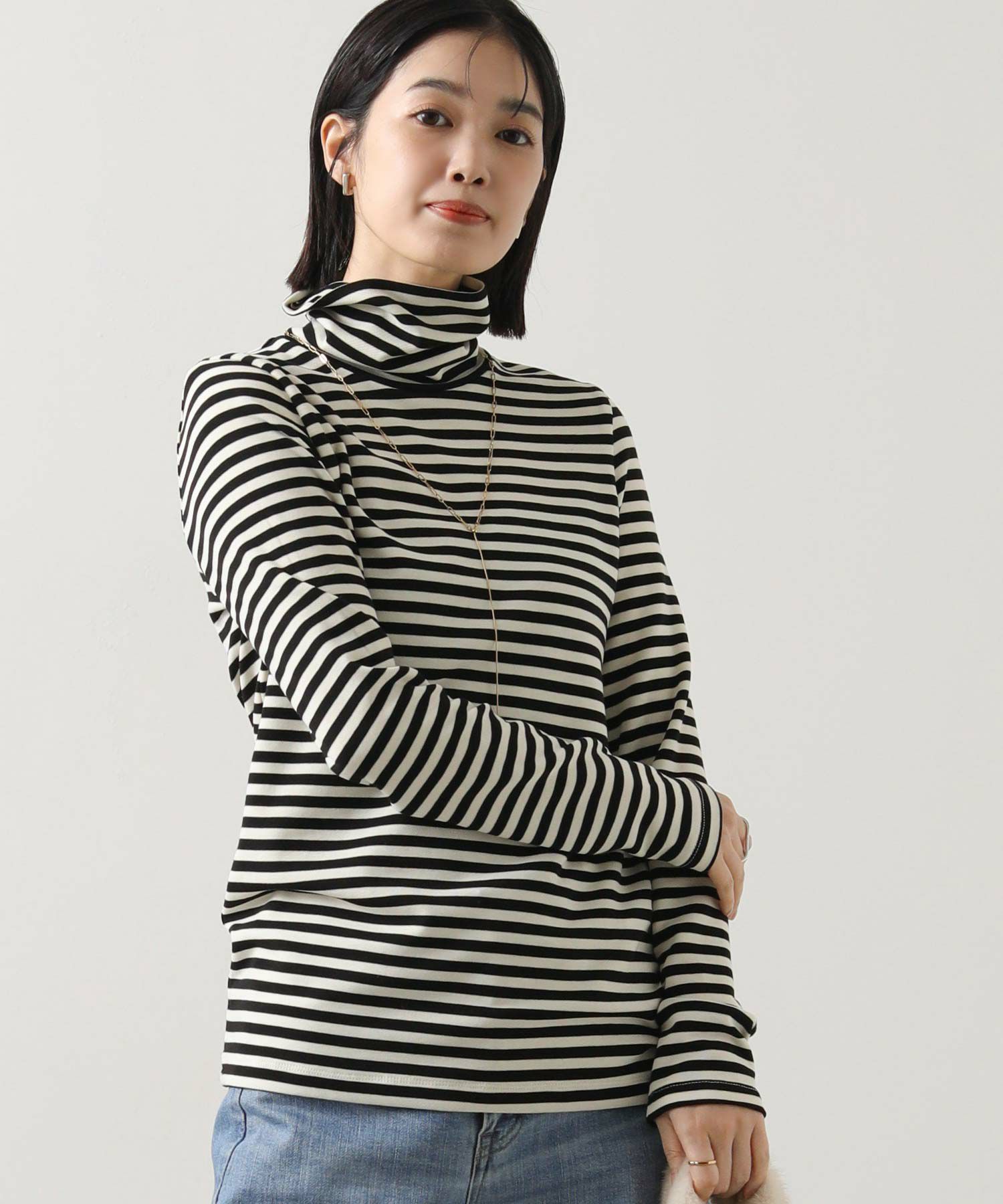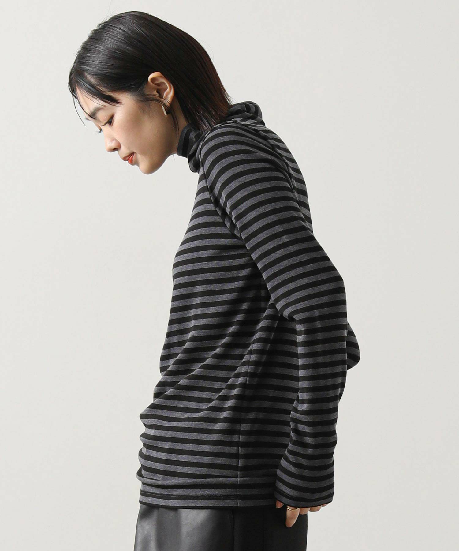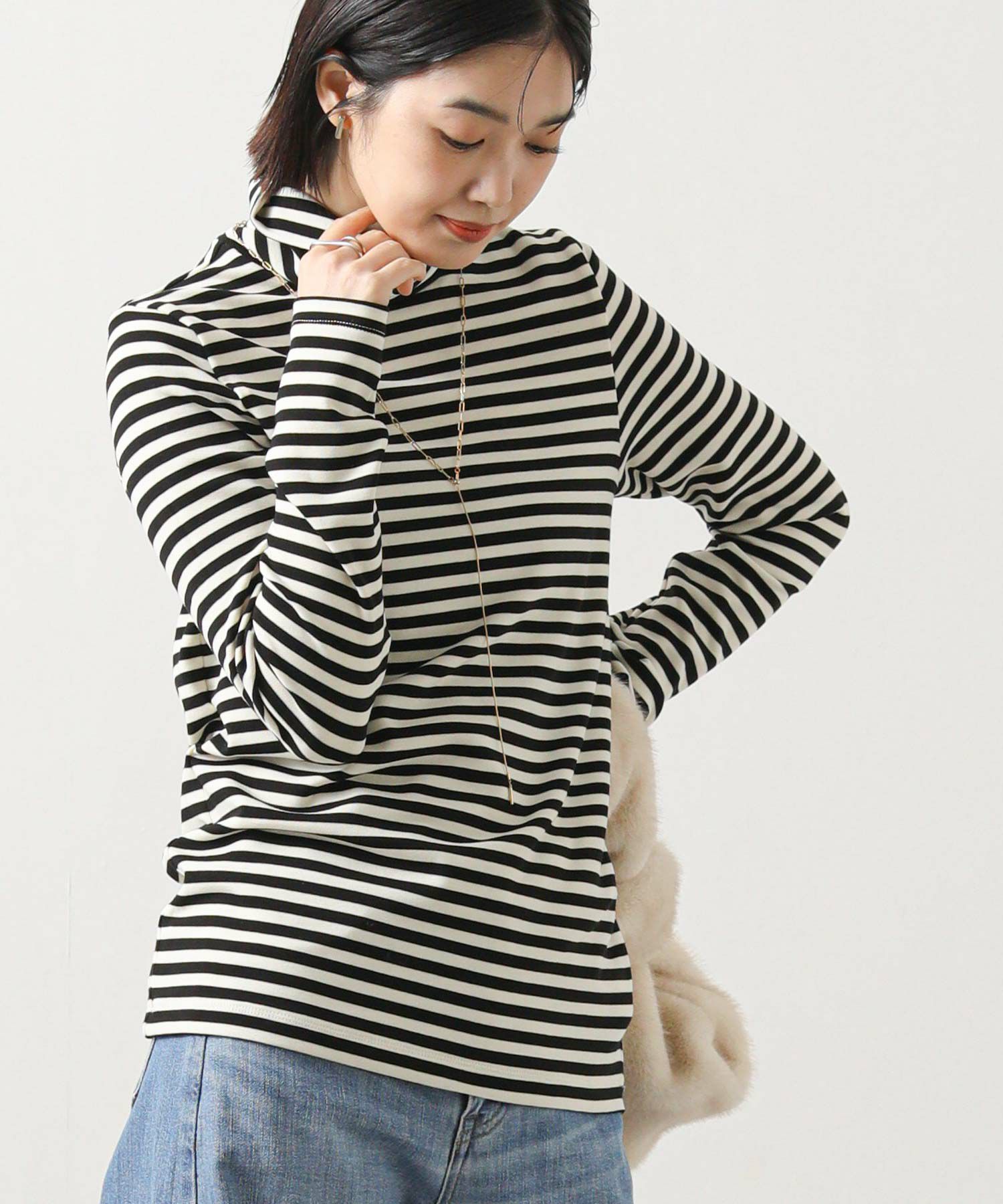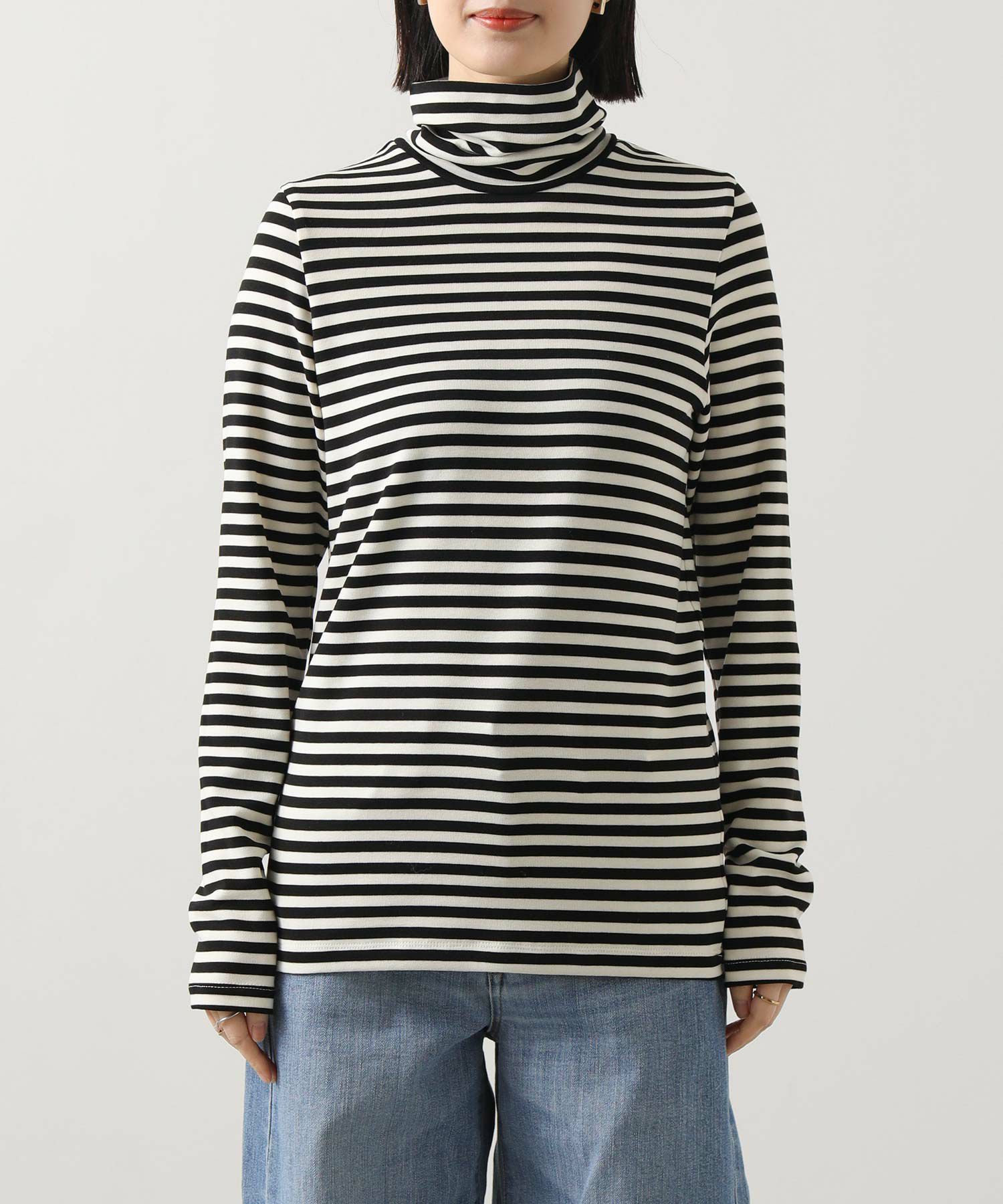 寒い季節にうれしい、首までしっかり暖かいカットソー。
