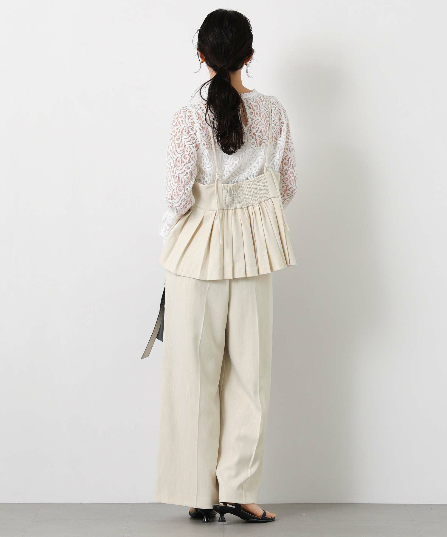 同素材のパンツLUスラブハイウエストワイド(OEO1034426004)と合わせてサロペット風の着こなしもオススメ。
