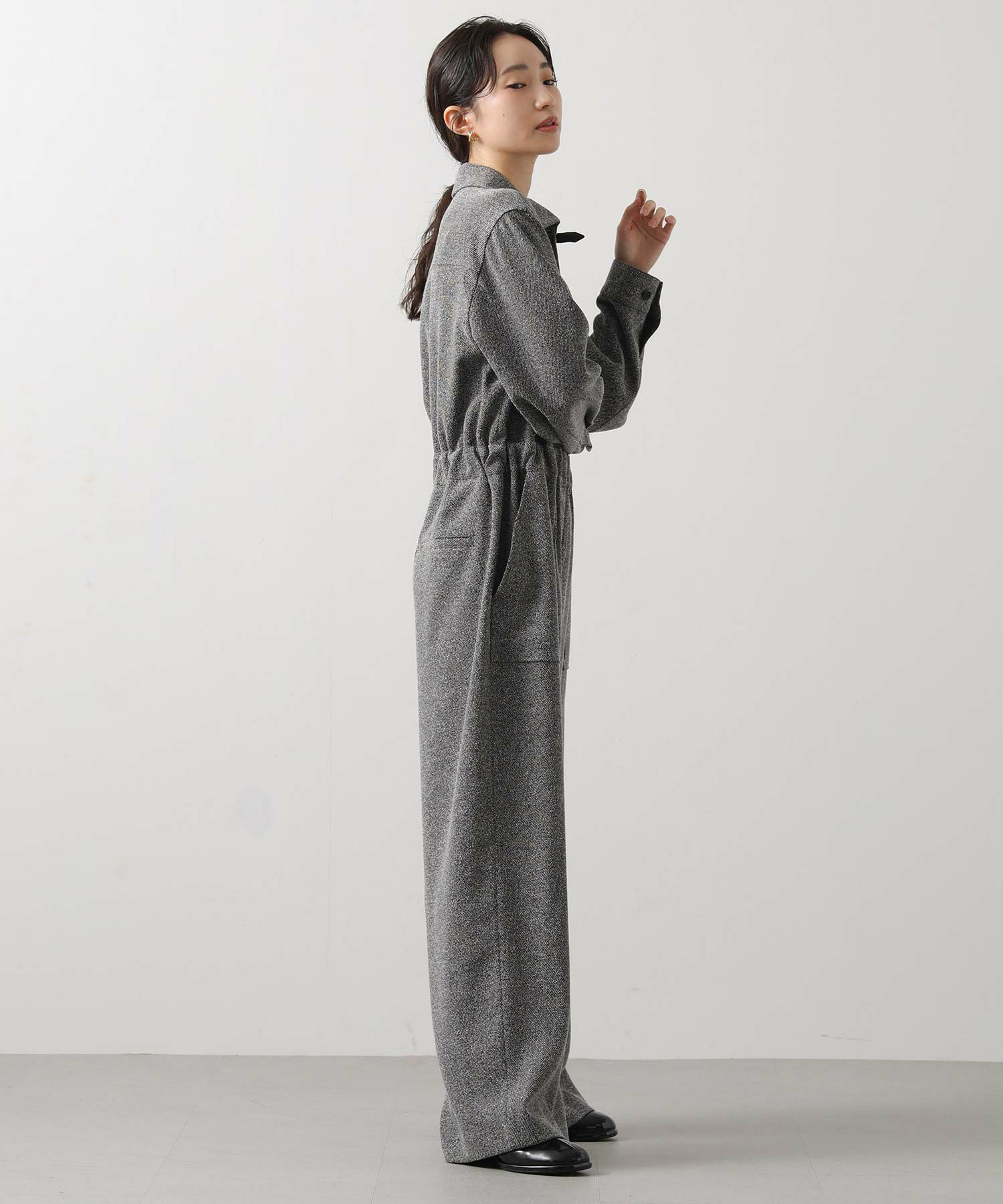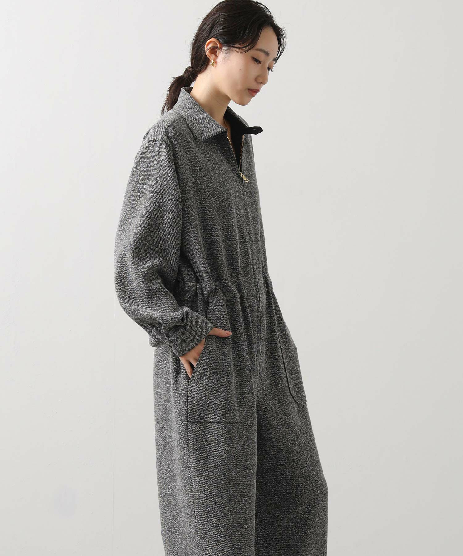 上品なツイード素材を贅沢に使ったクラシックなオールインワン。