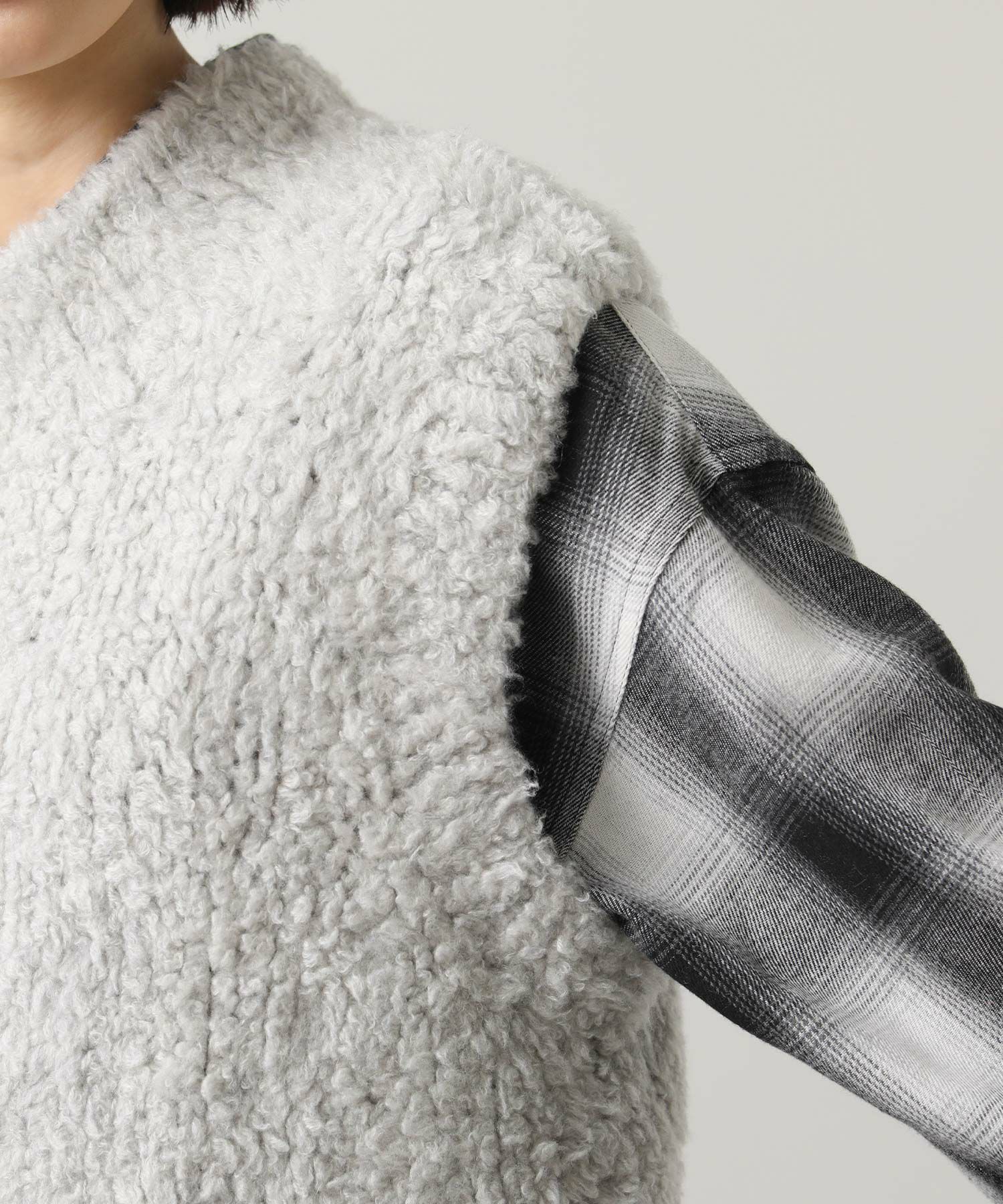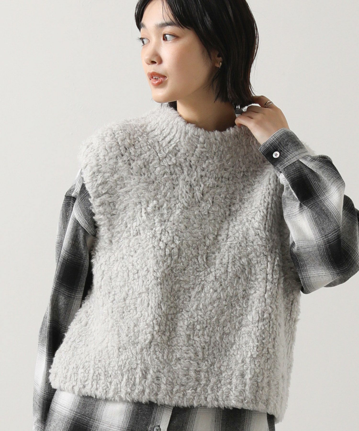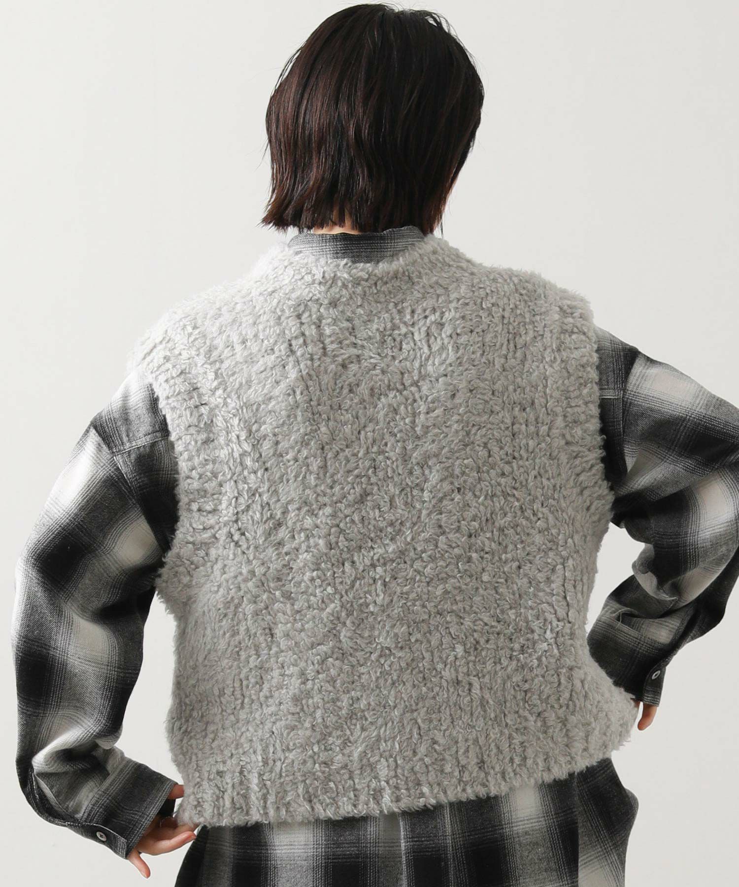 カシミヤ高混率のループヤーンを使用したラグジュアリーなニットベスト。