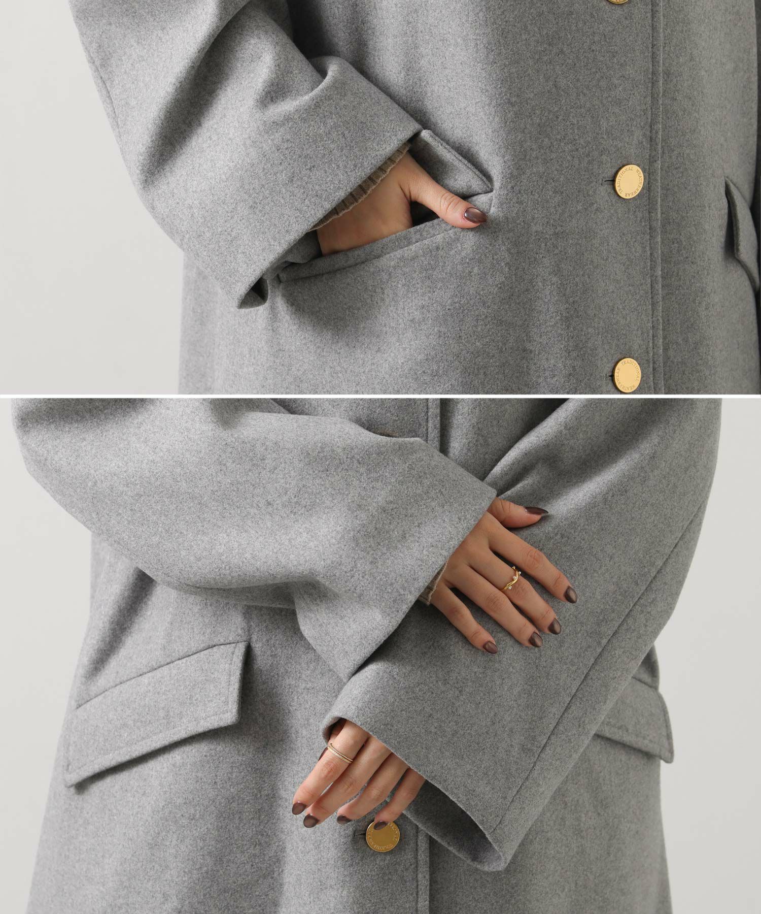 程よいハリと膨らみが特徴のダブルフェイスのメルトン素材を使用し、素材を活かしたハリのある生地から美しいシルエットが生まれ、羽織るだけでこなれた印象に。