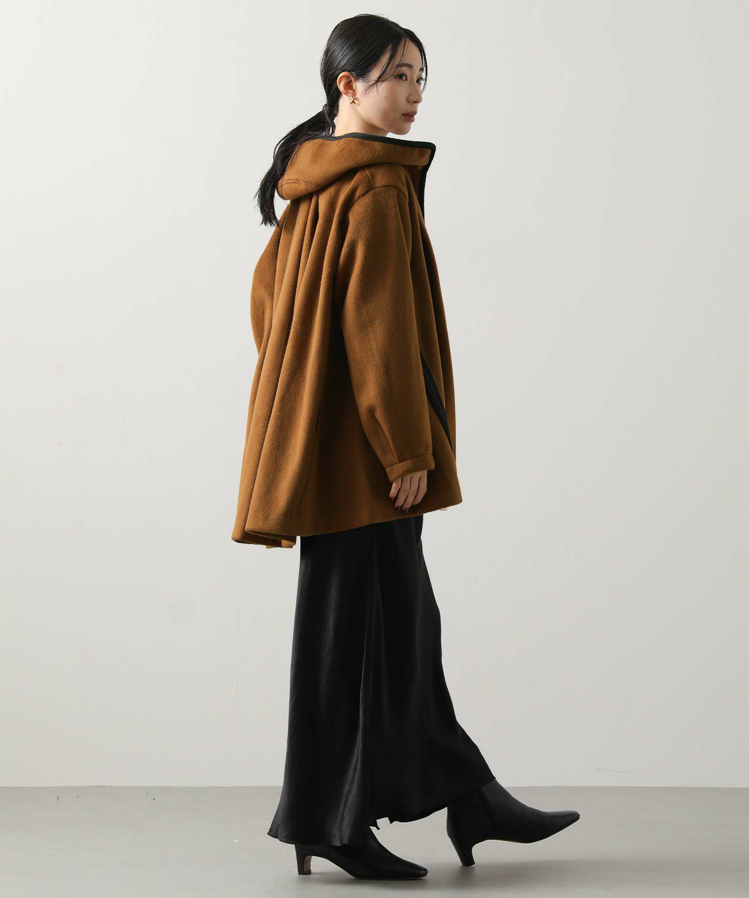 立体的に作られたフードが、小顔効果も◎シンプルながらもこだわりのあるディテールが魅力。