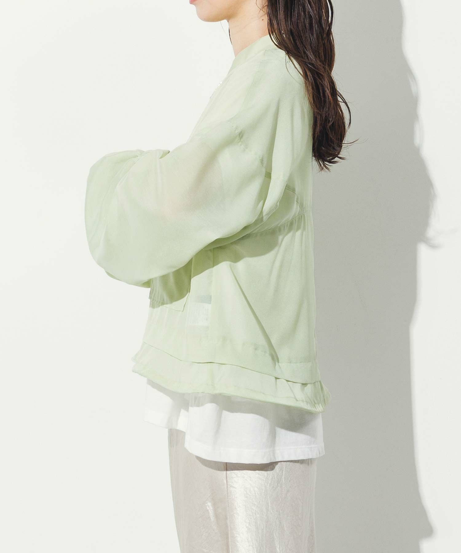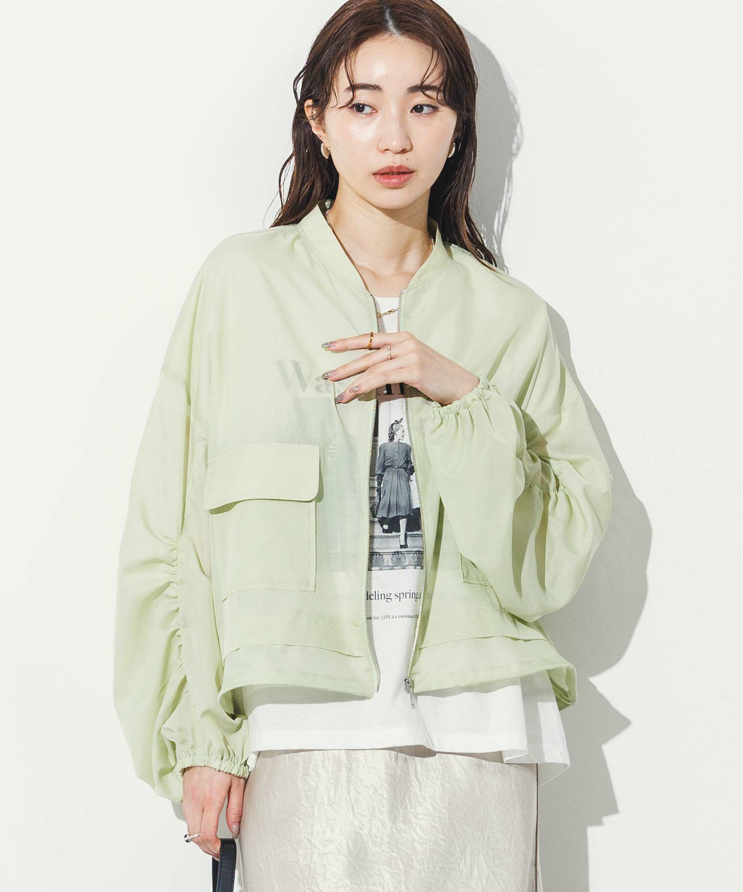 軽やかなシアー素材を使用したMA-1ブルゾン。