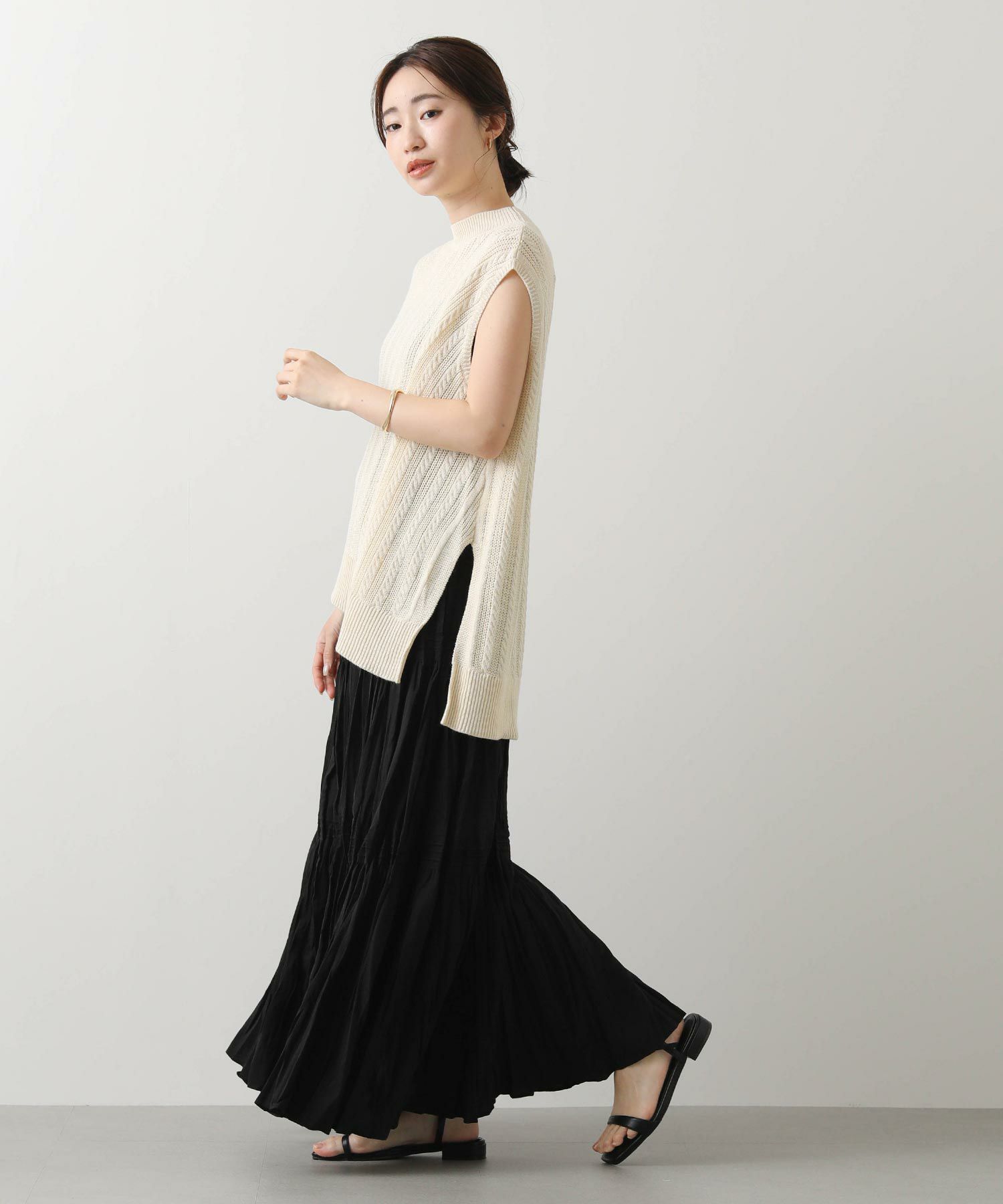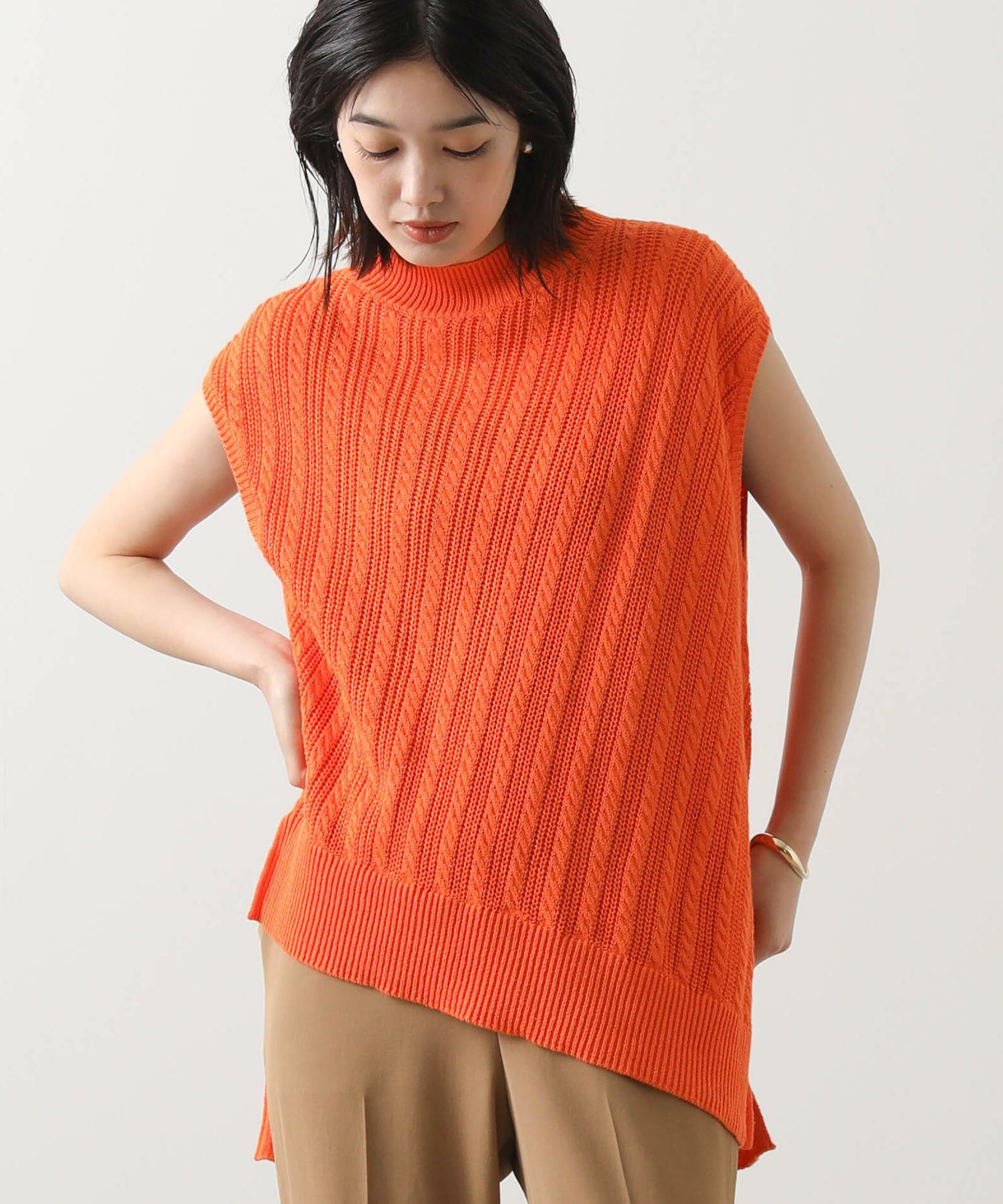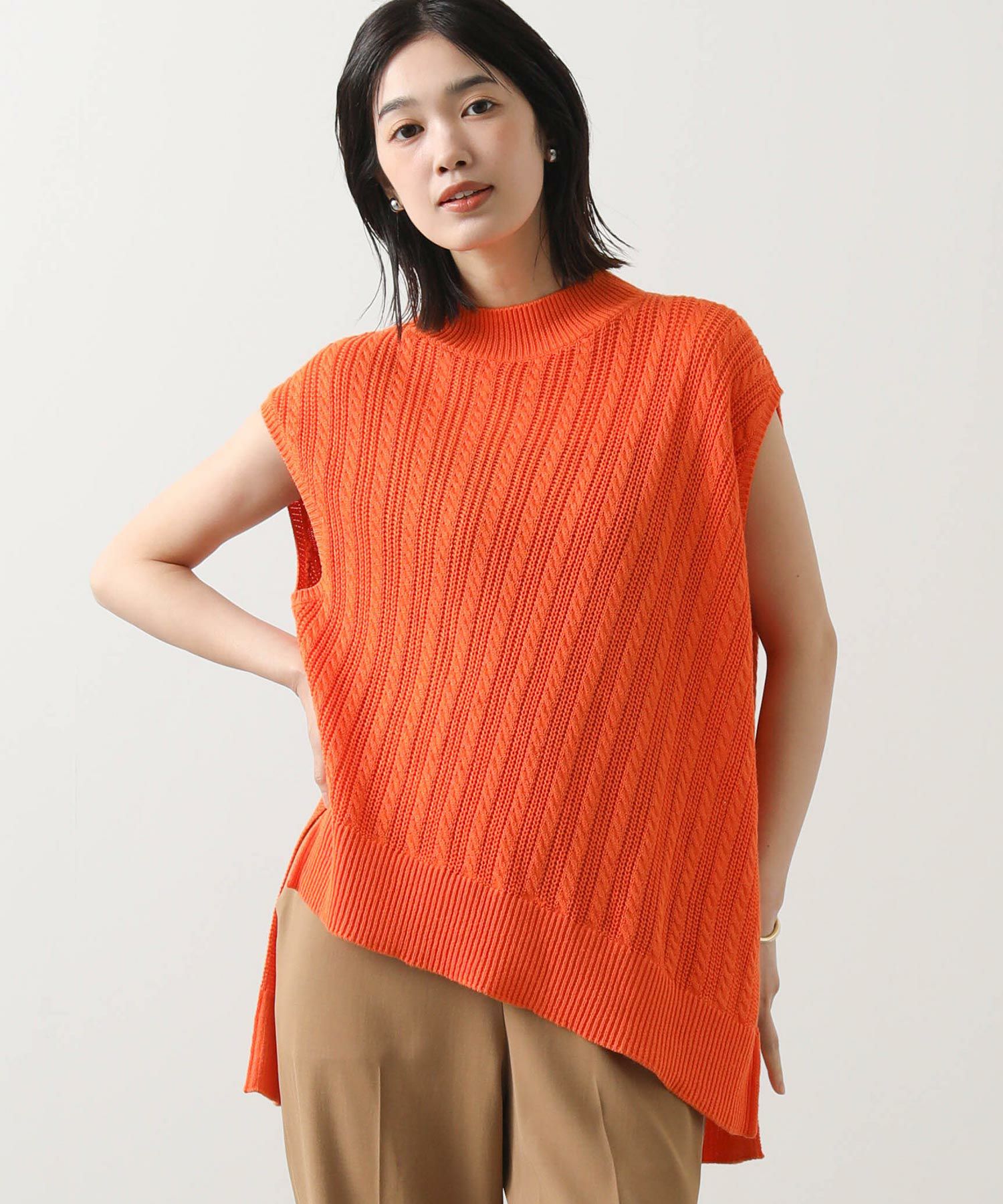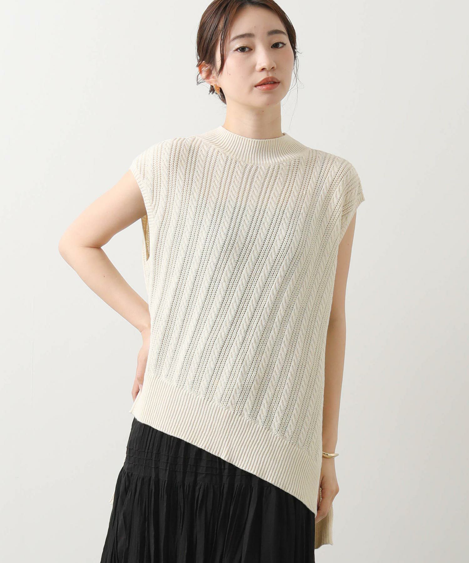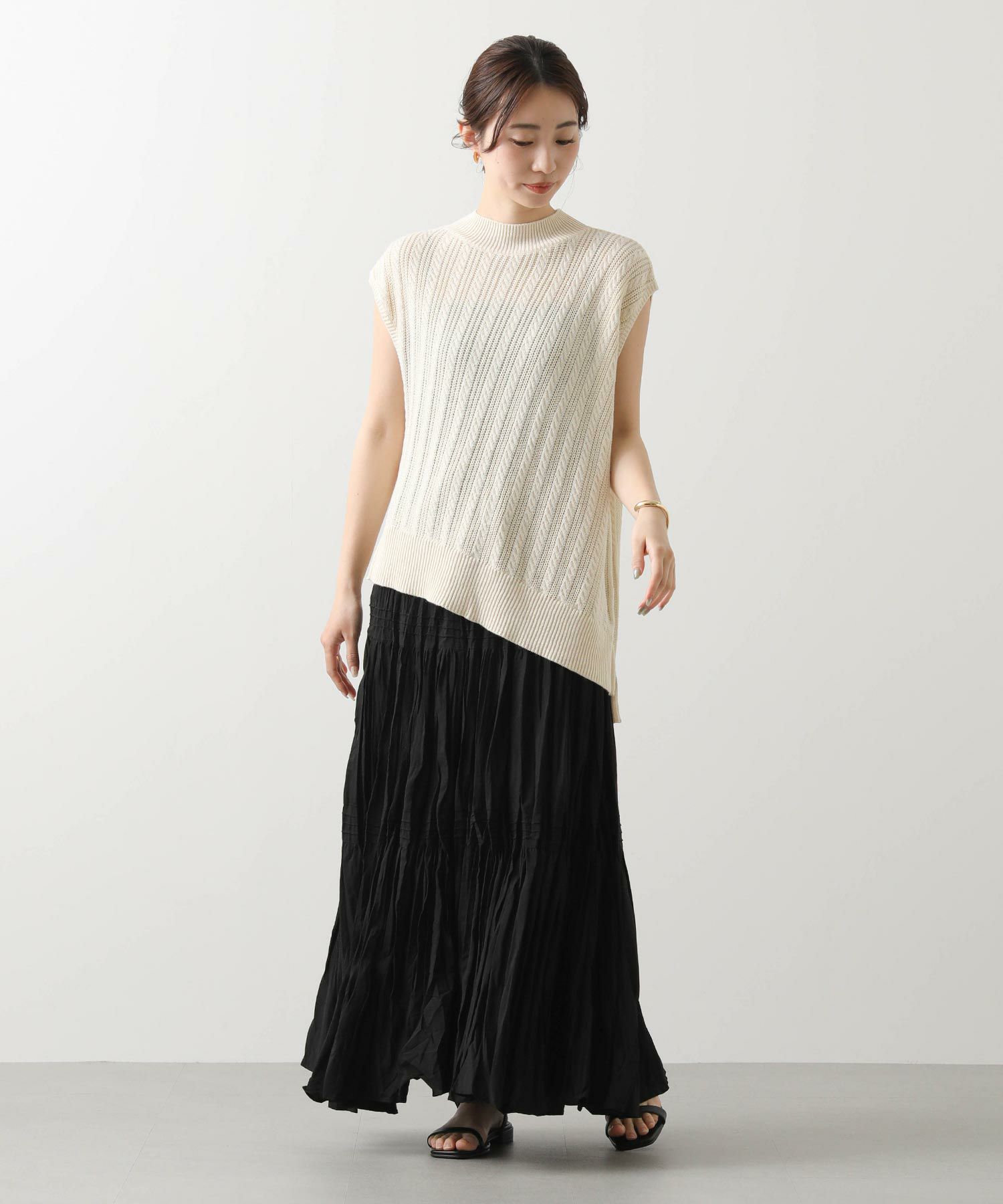 前身頃が大胆なアシンメトリーになっており、スタイリングにインパクトをつけられる1枚。