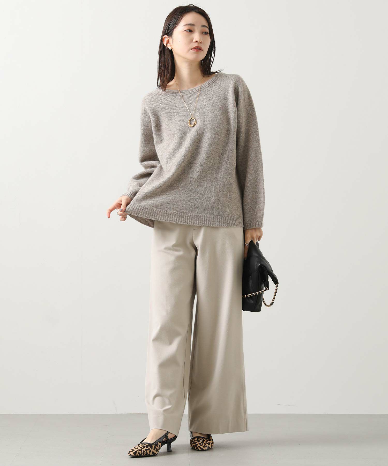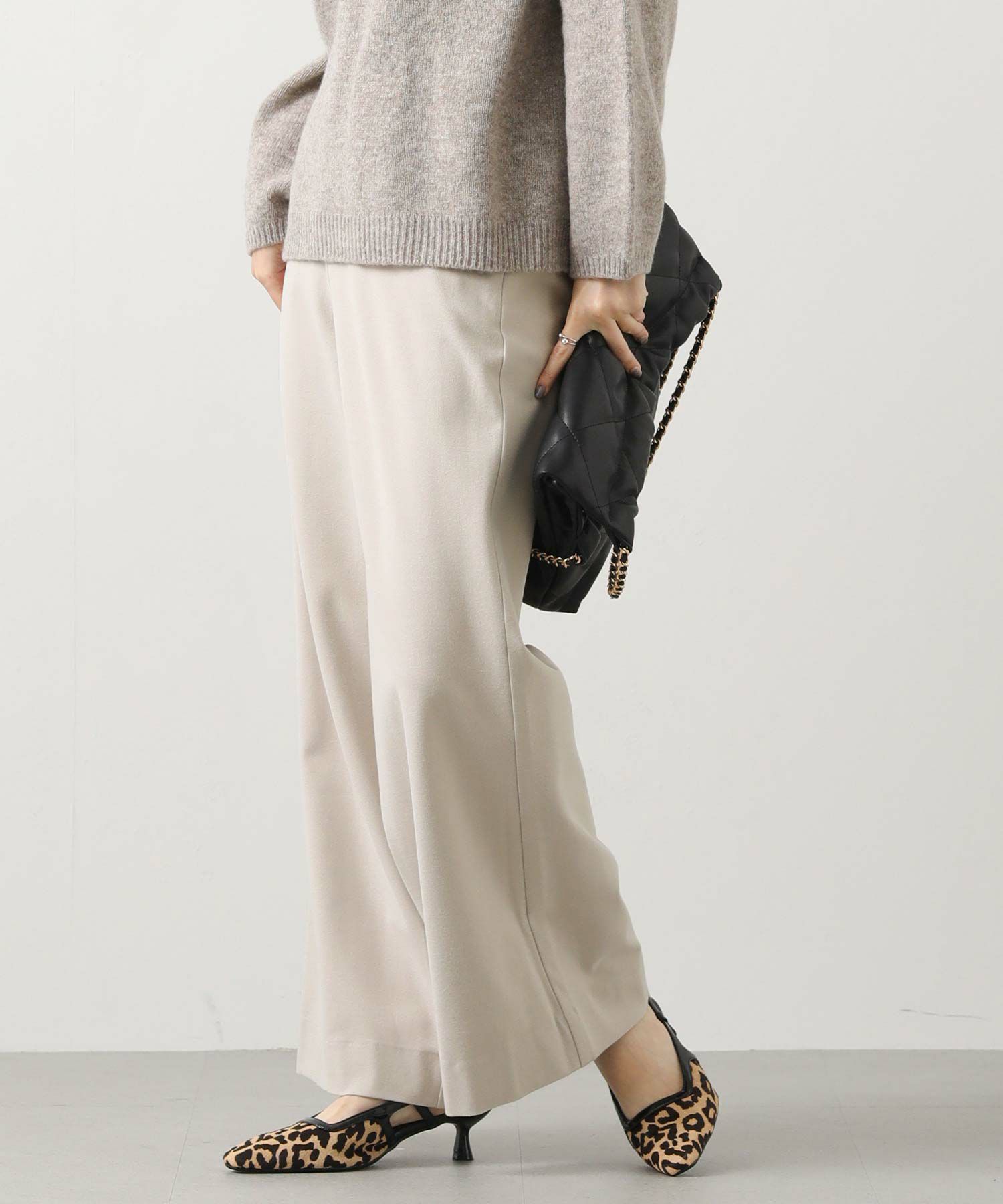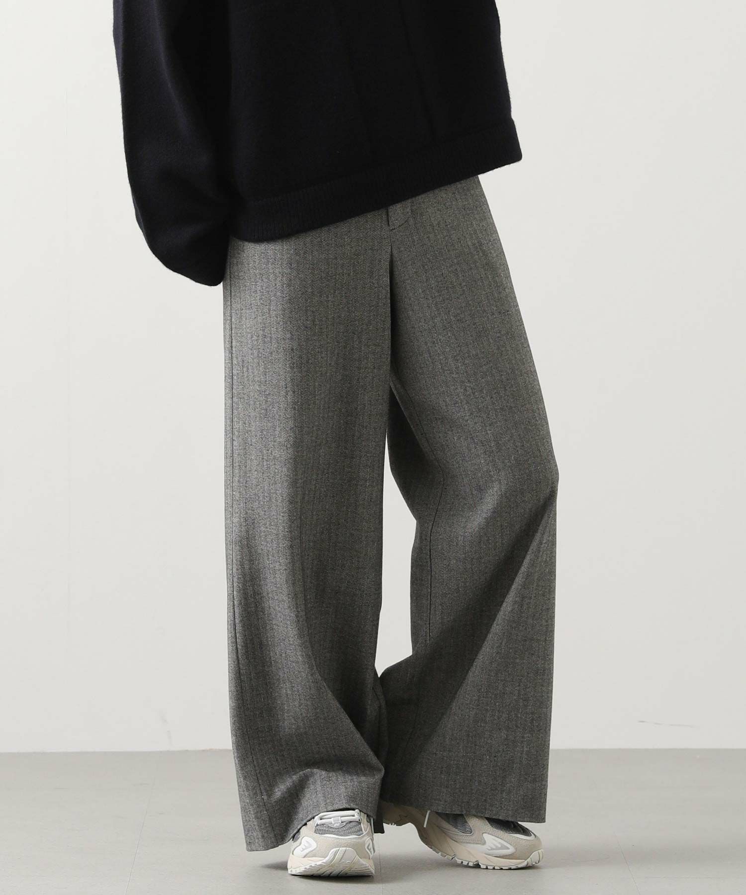 両面起毛のウォーム感ある日本製素材を使用したワイドパンツをセレクト。