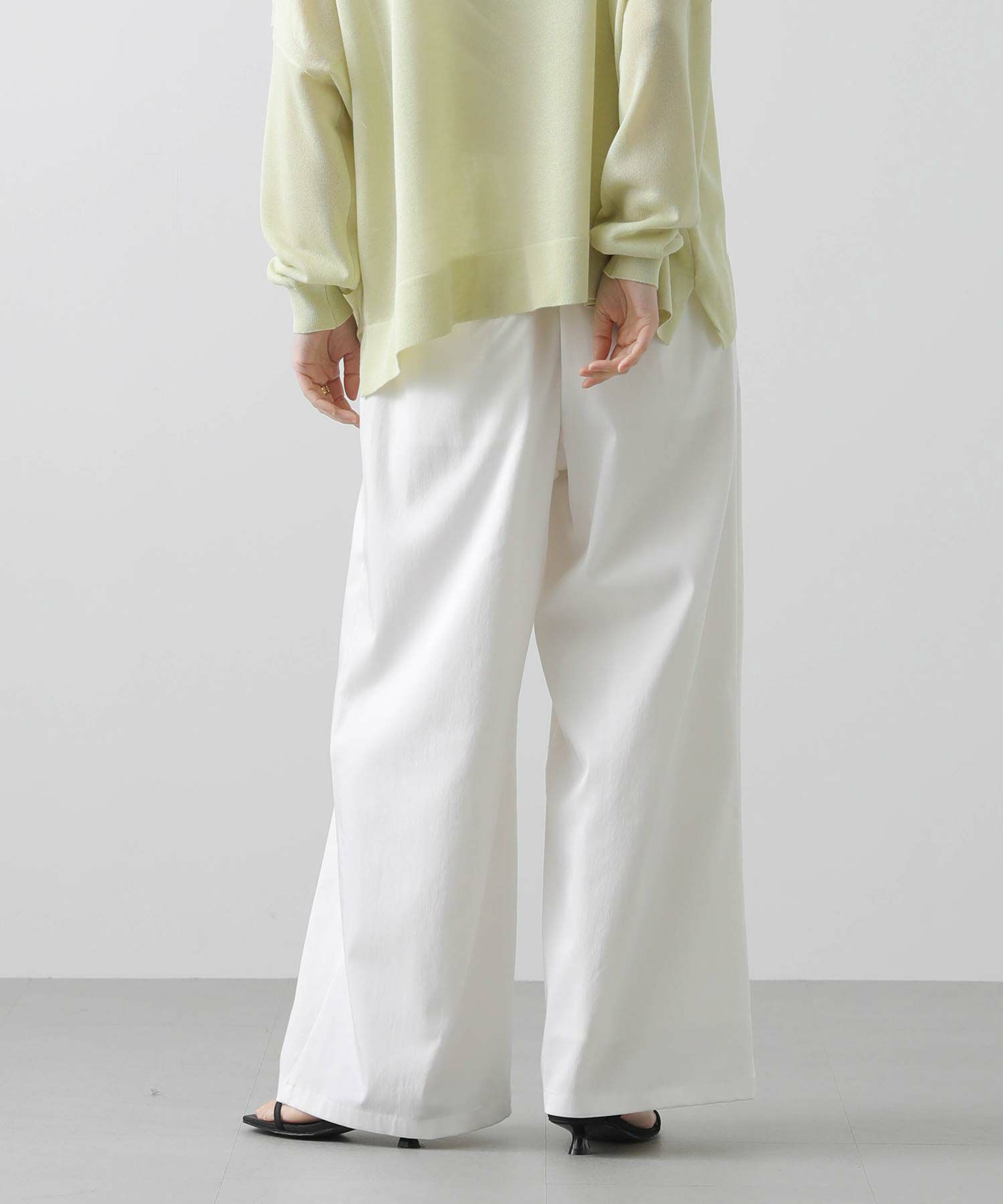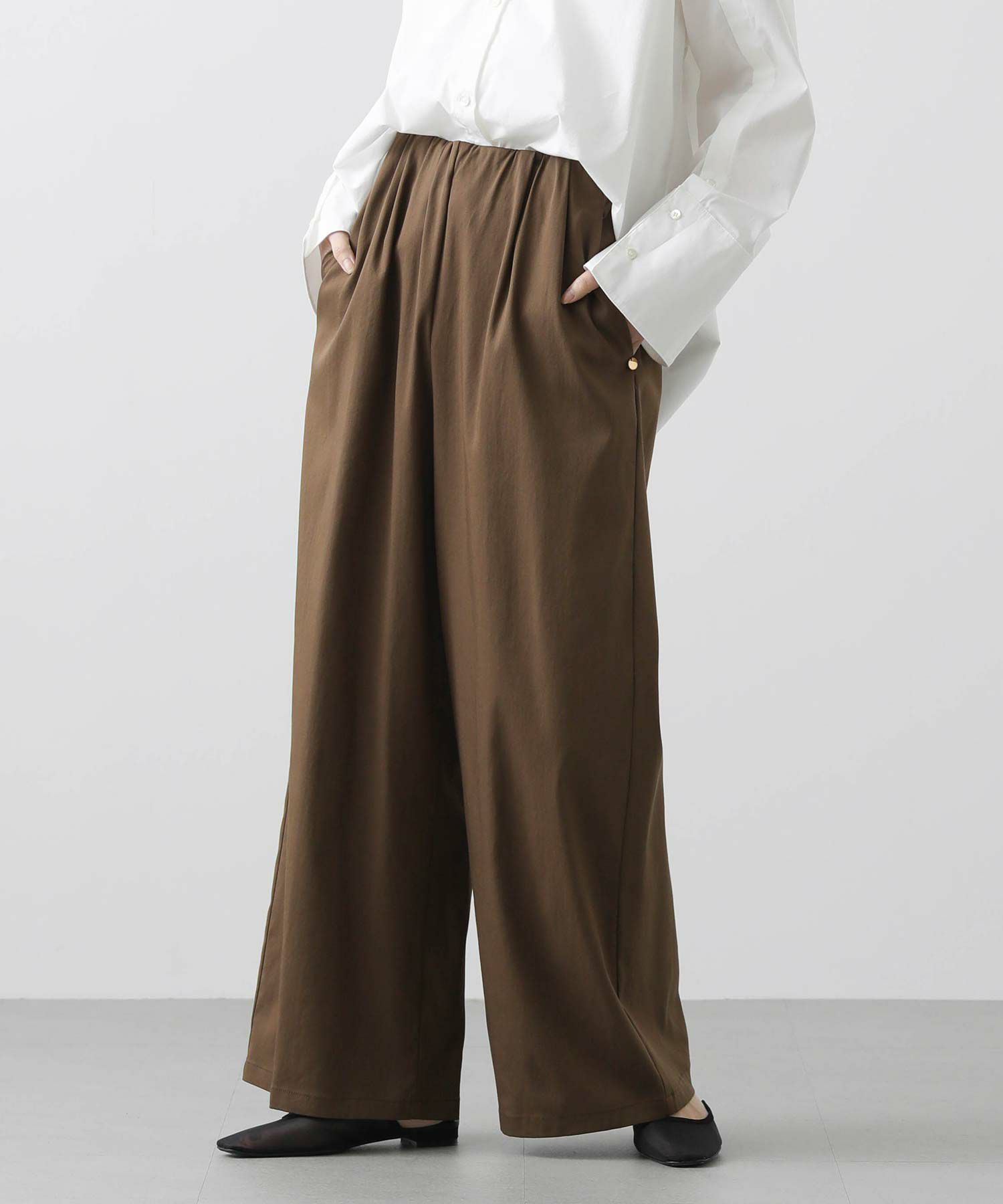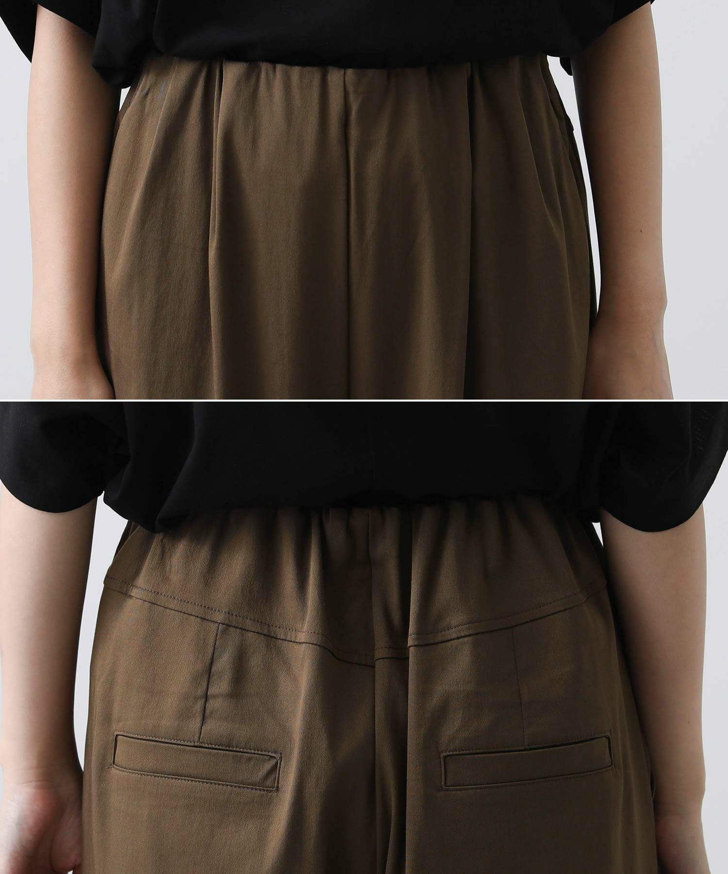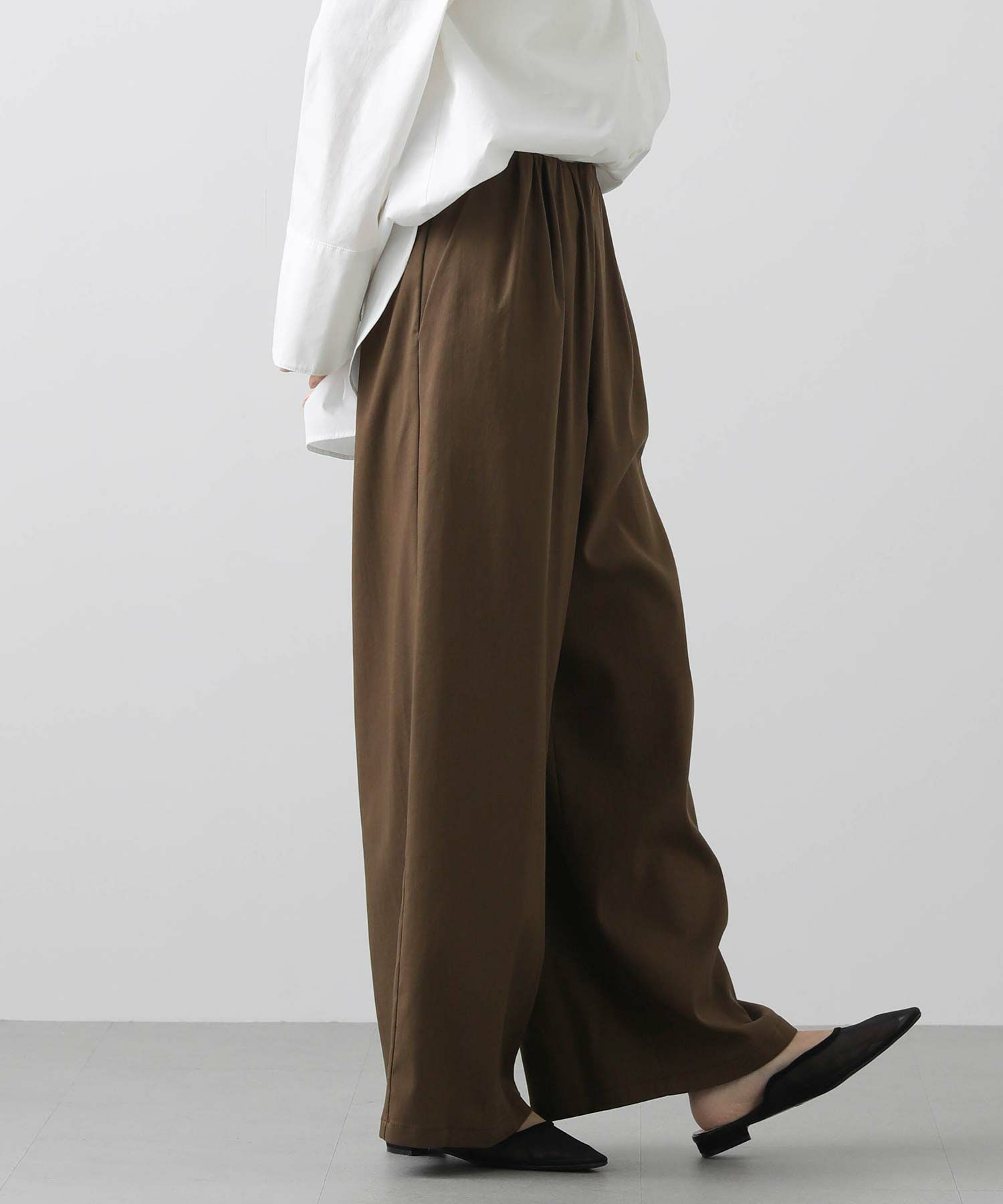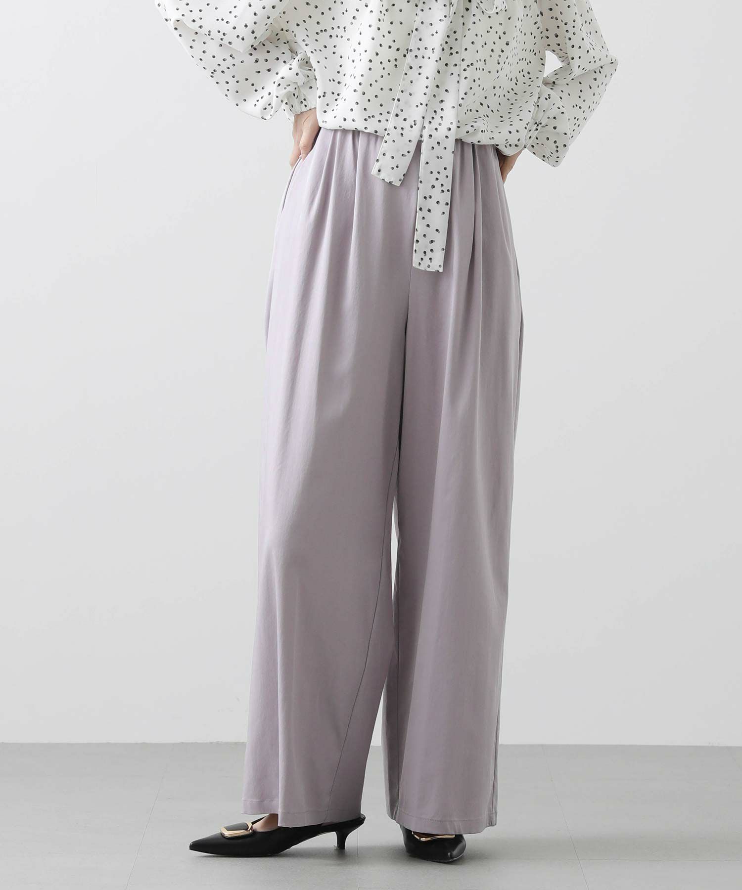 広がり過ぎないストレートシルエットが魅力のイージーセミワイドパンツ。さらりとした肌さわりの良い素材をチョイスし、きちんと感があるルックスながらリラクシーな履き心地です。