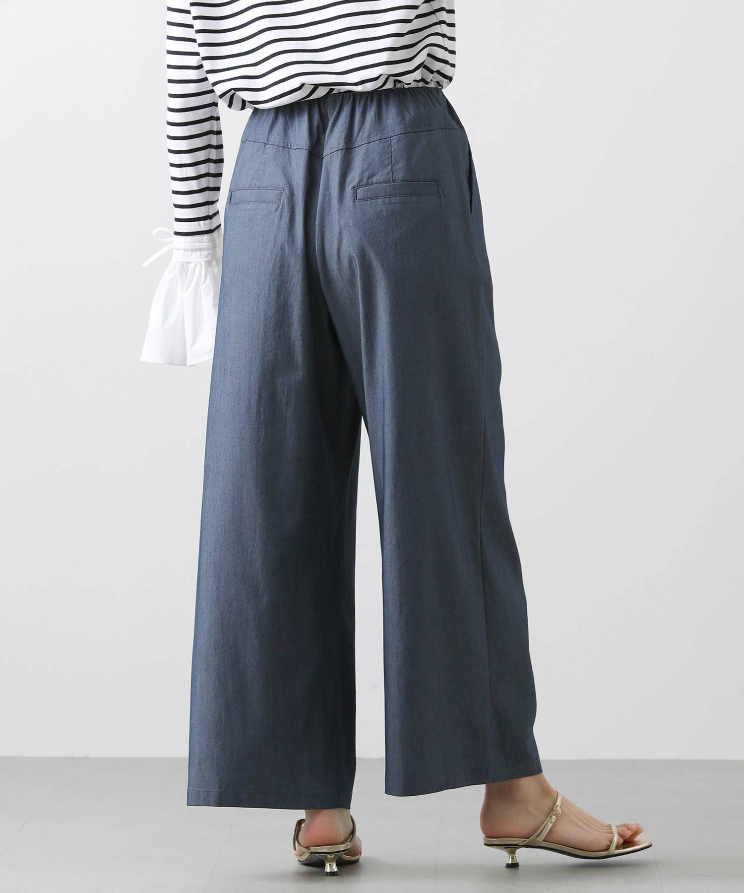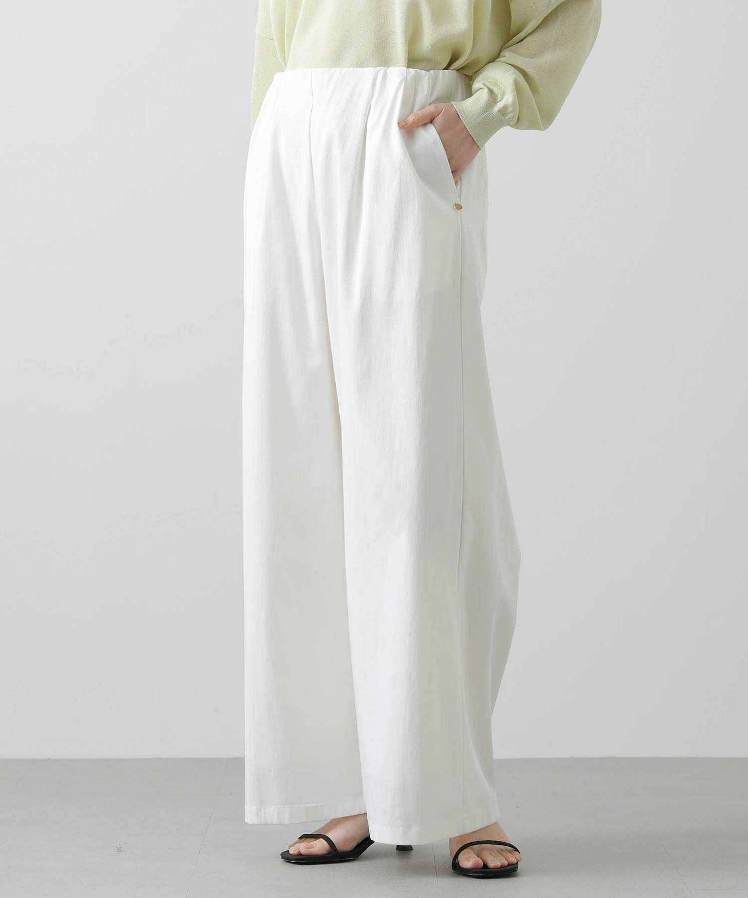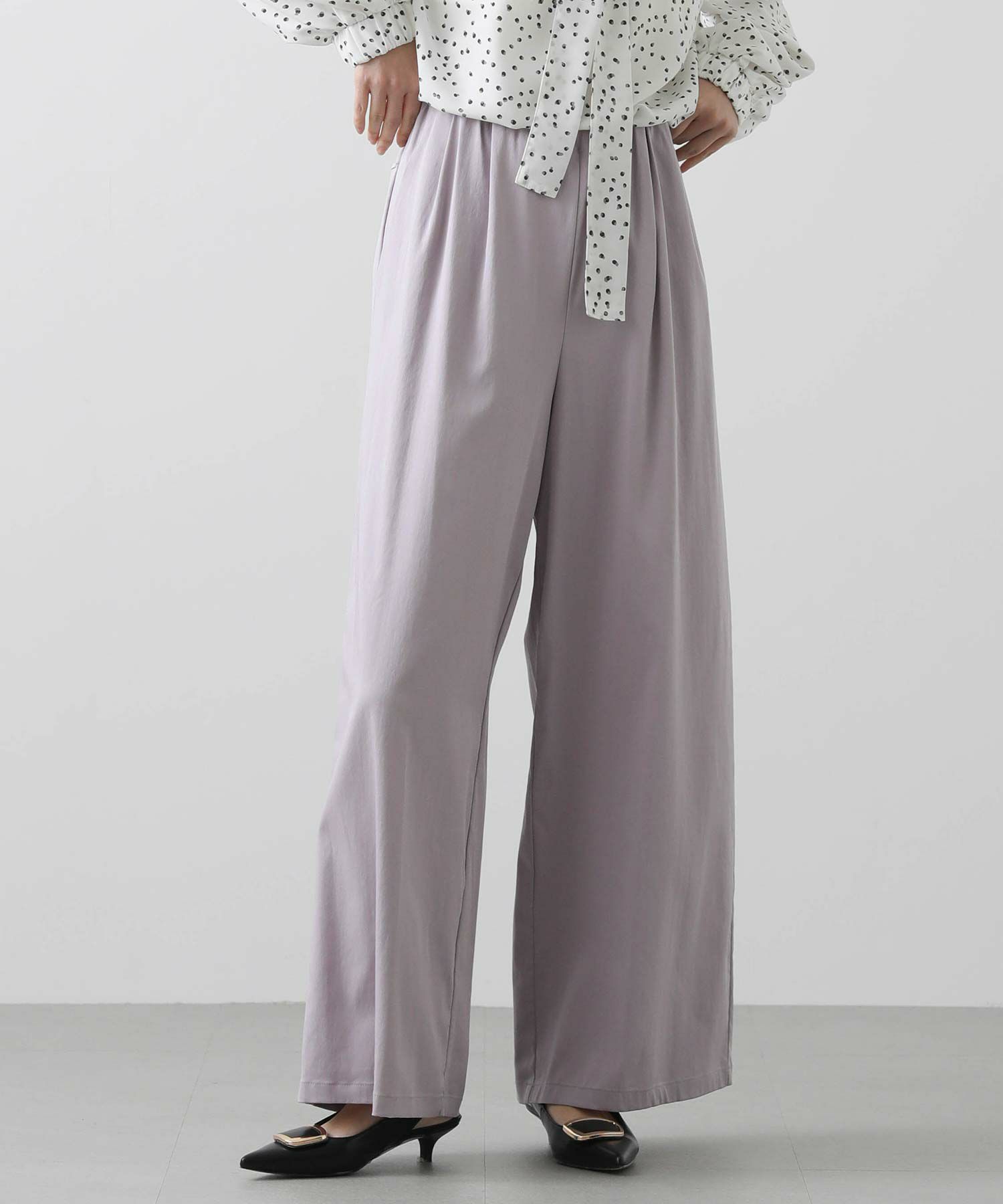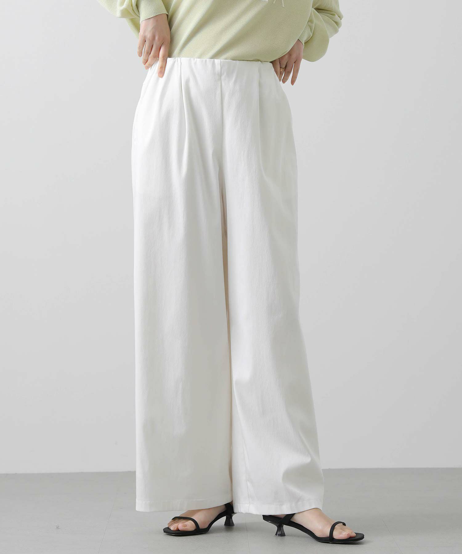 広がり過ぎないストレートシルエットが魅力のイージーセミワイドパンツ。さらりとした肌さわりの良い素材をチョイスし、きちんと感があるルックスながらリラクシーな履き心地です。