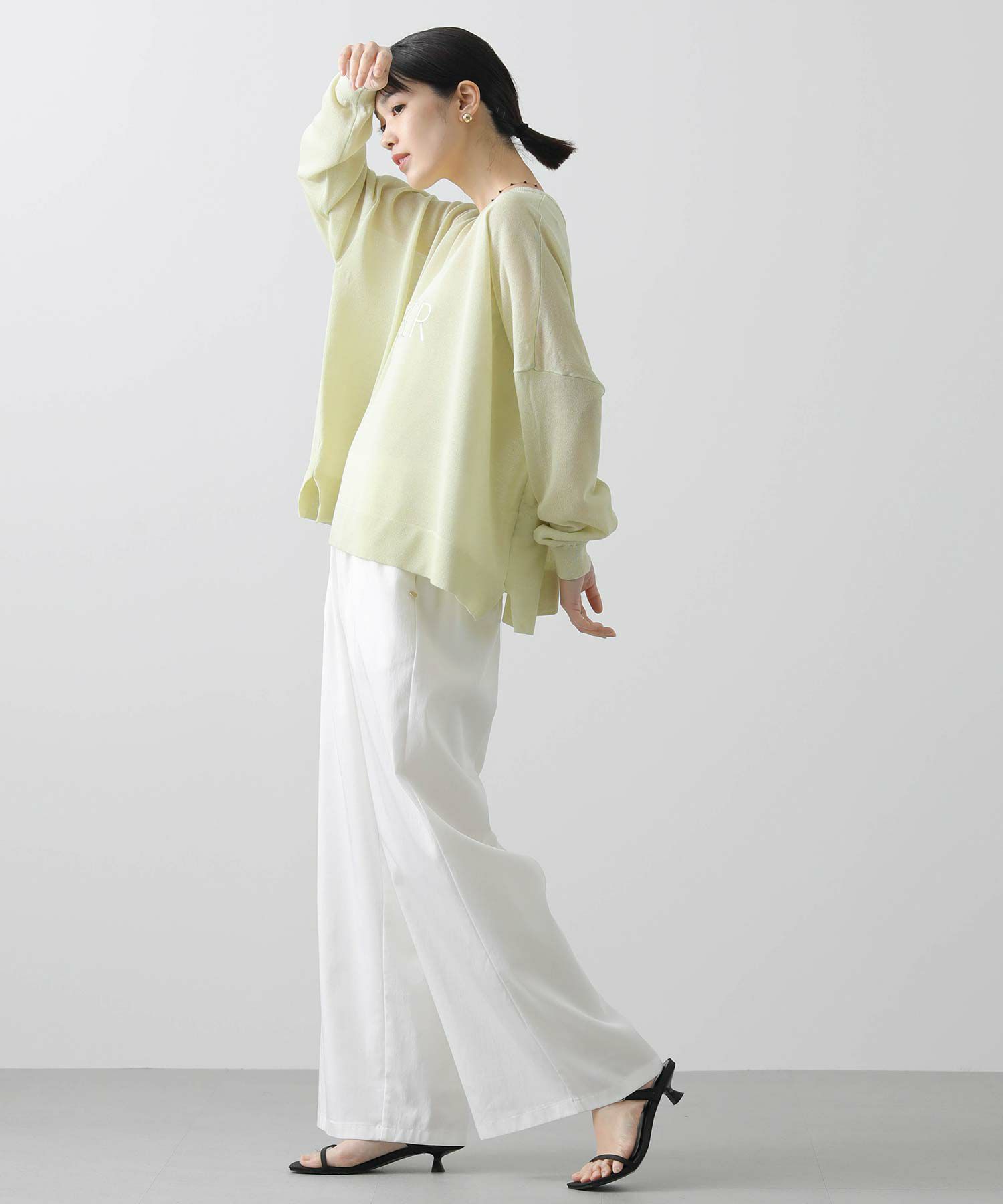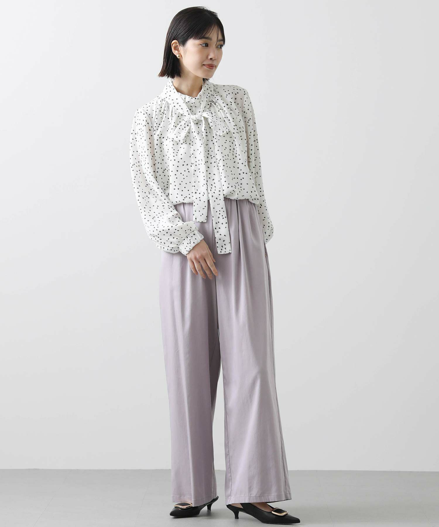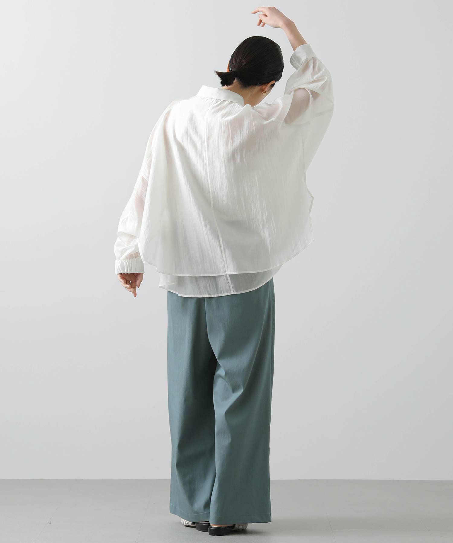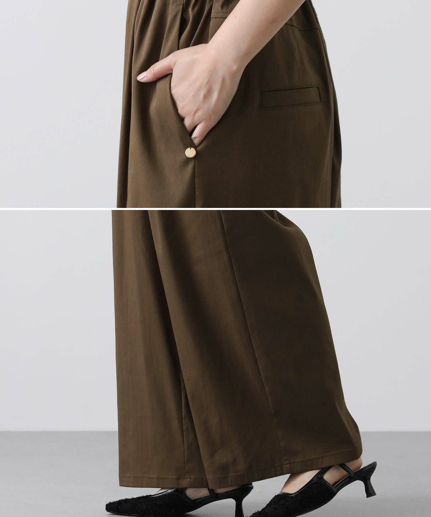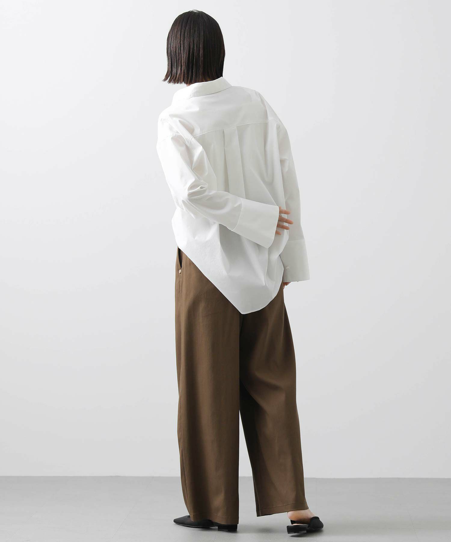 広がり過ぎないストレートシルエットが魅力のイージーセミワイドパンツ。さらりとした肌さわりの良い素材をチョイスし、きちんと感があるルックスながらリラクシーな履き心地です。