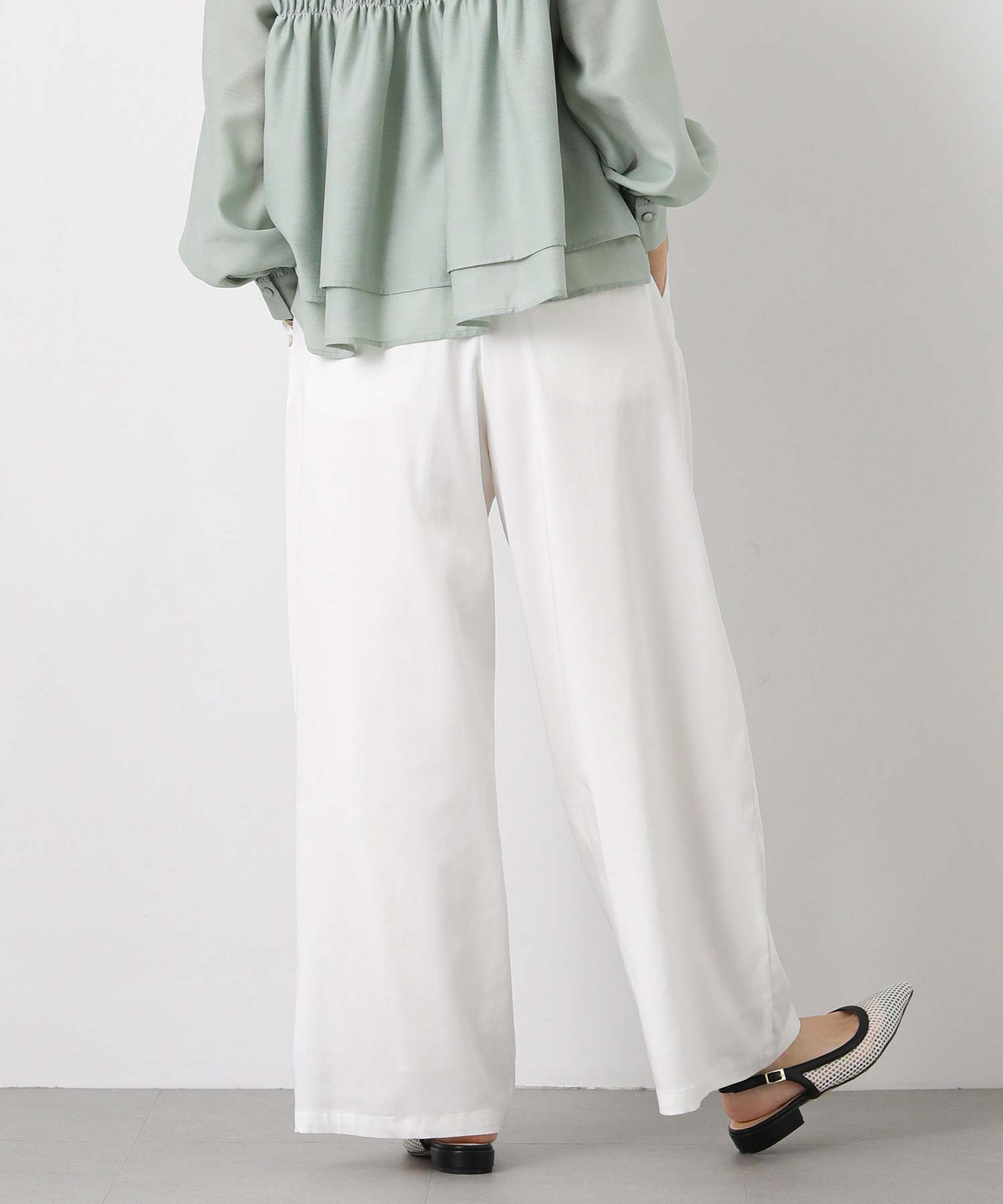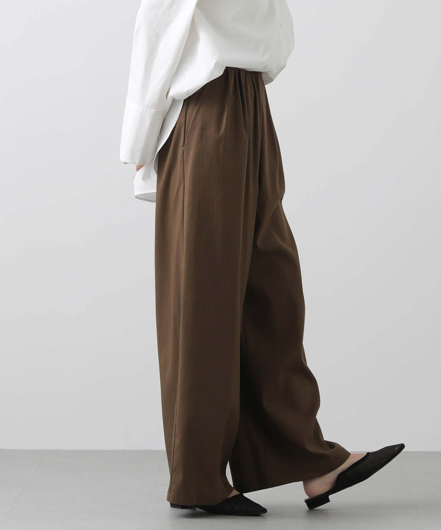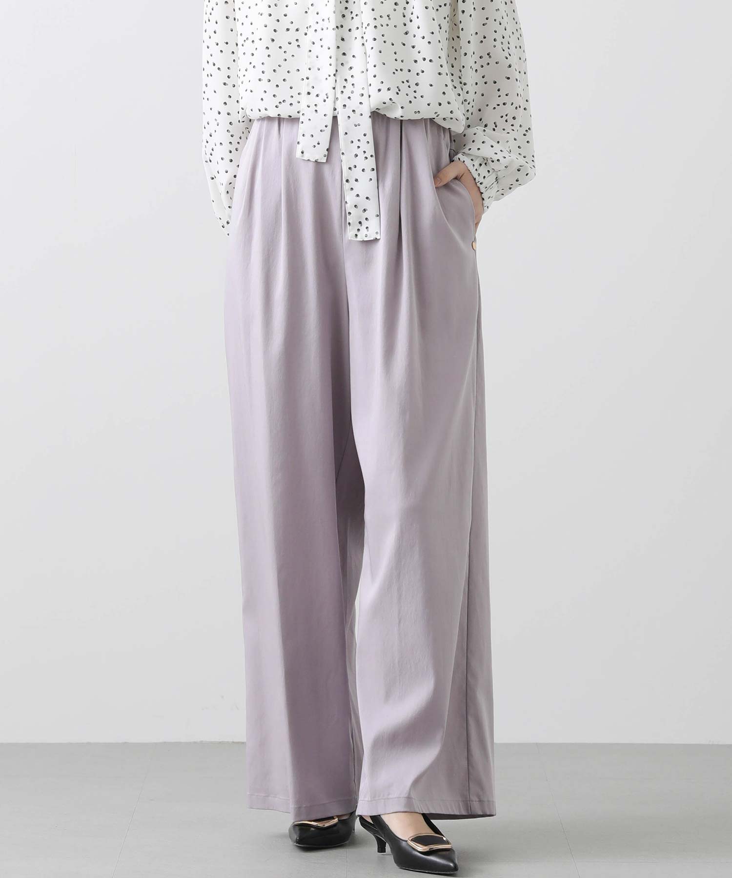 広がり過ぎないストレートシルエットが魅力のイージーセミワイドパンツ。さらりとした肌さわりの良い素材をチョイスし、きちんと感があるルックスながらリラクシーな履き心地です。