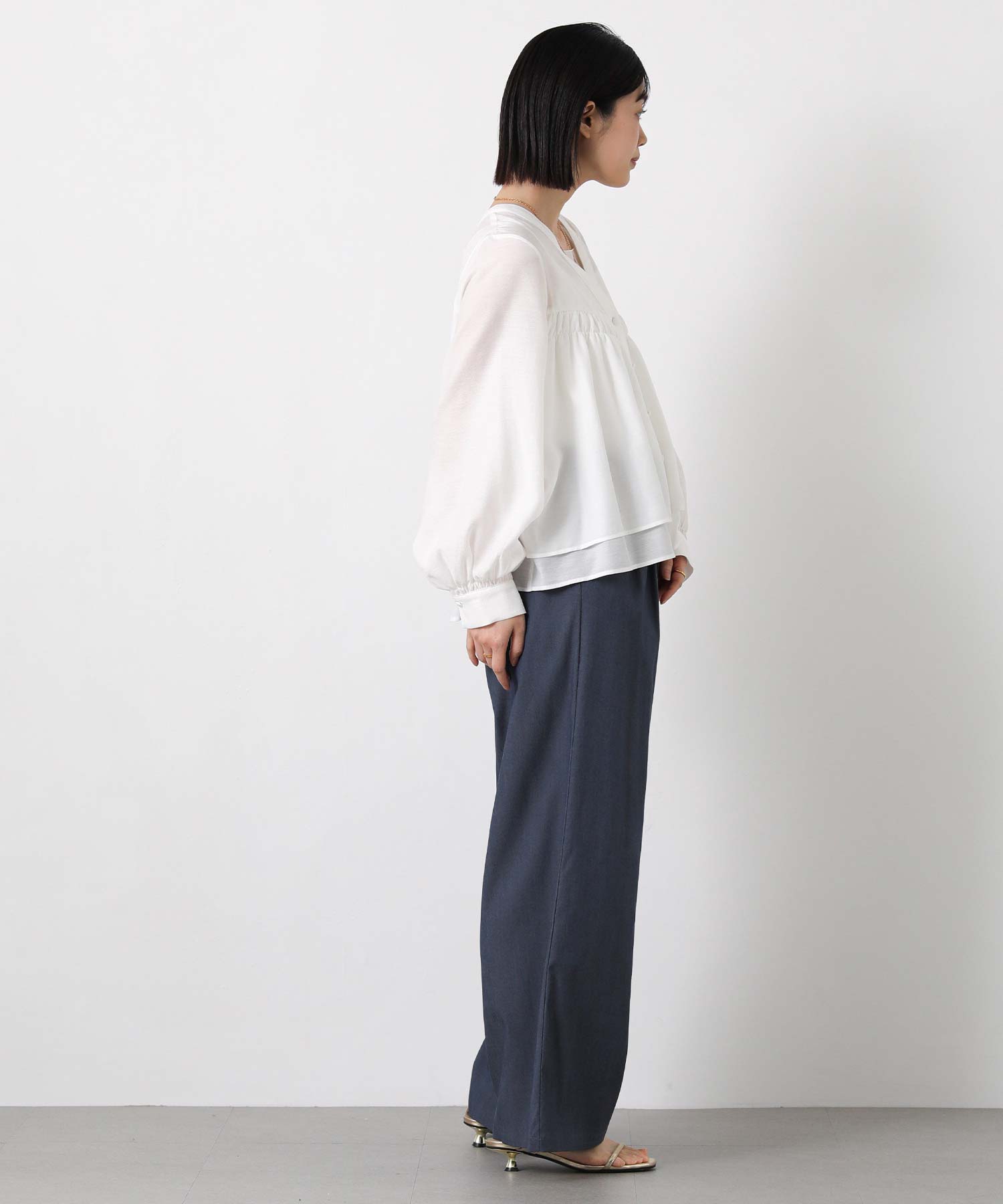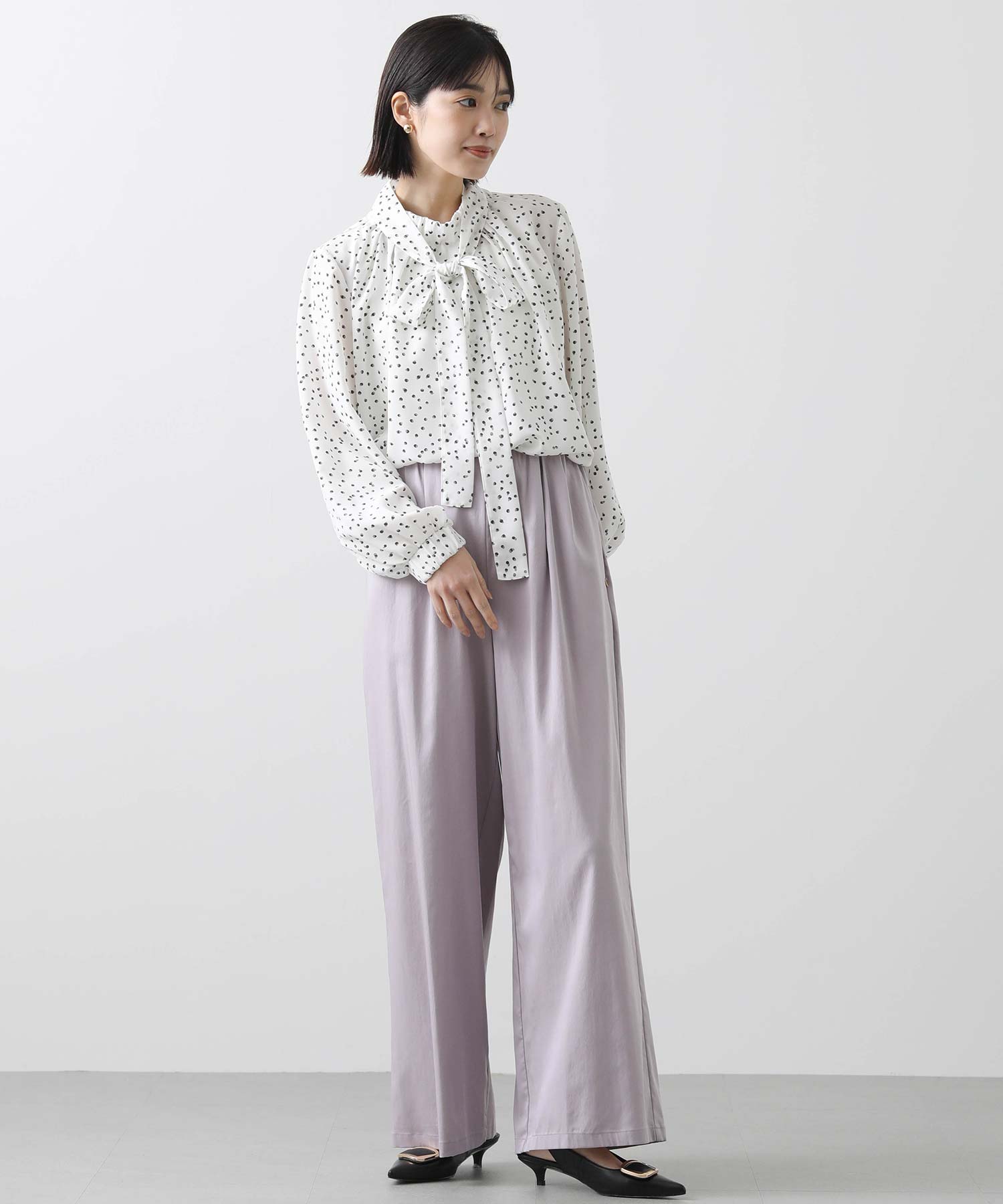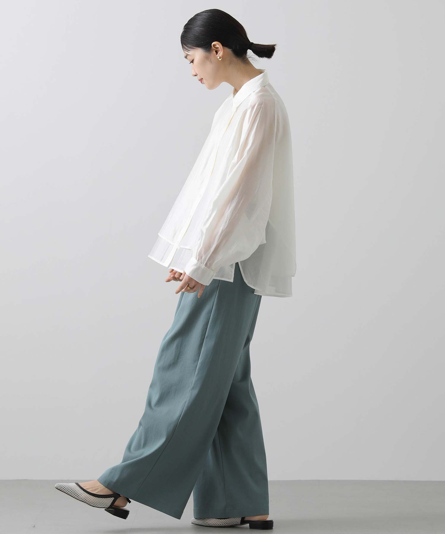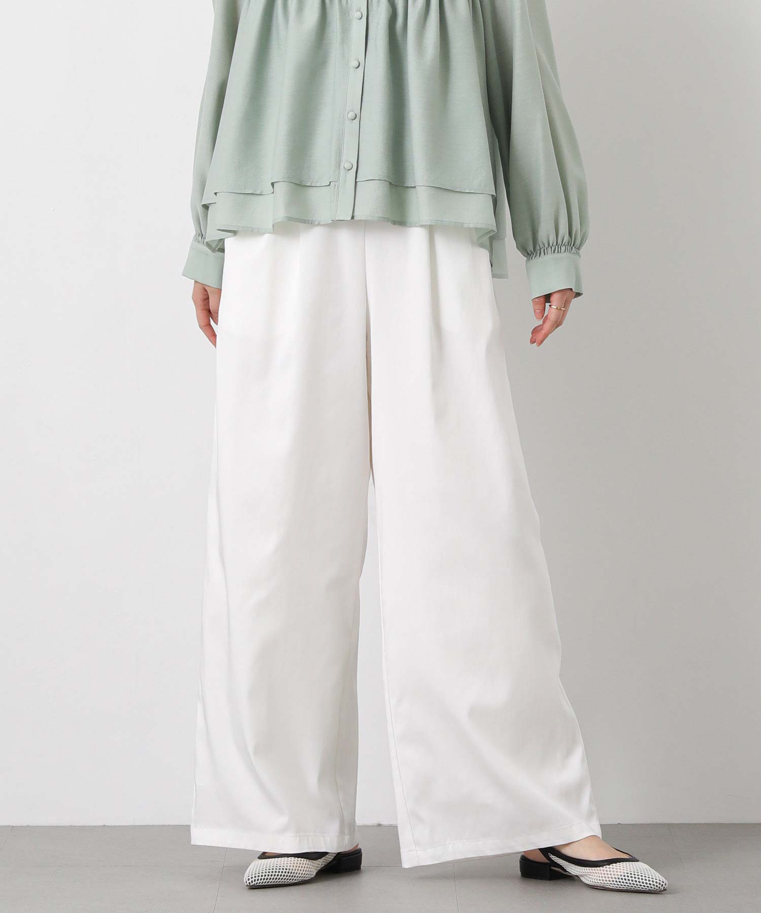 広がり過ぎないストレートシルエットが魅力のイージーセミワイドパンツ。さらりとした肌さわりの良い素材をチョイスし、きちんと感があるルックスながらリラクシーな履き心地です。