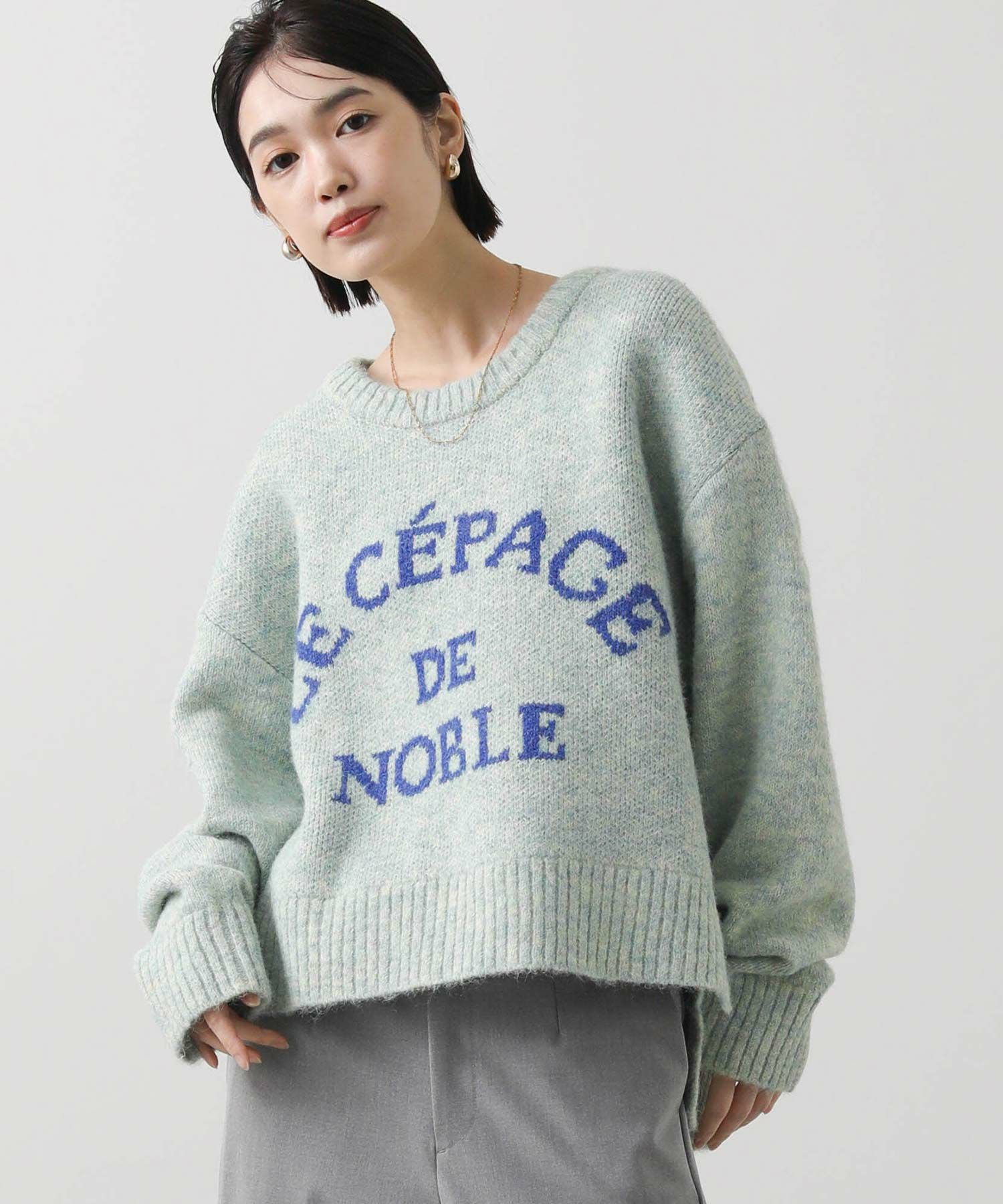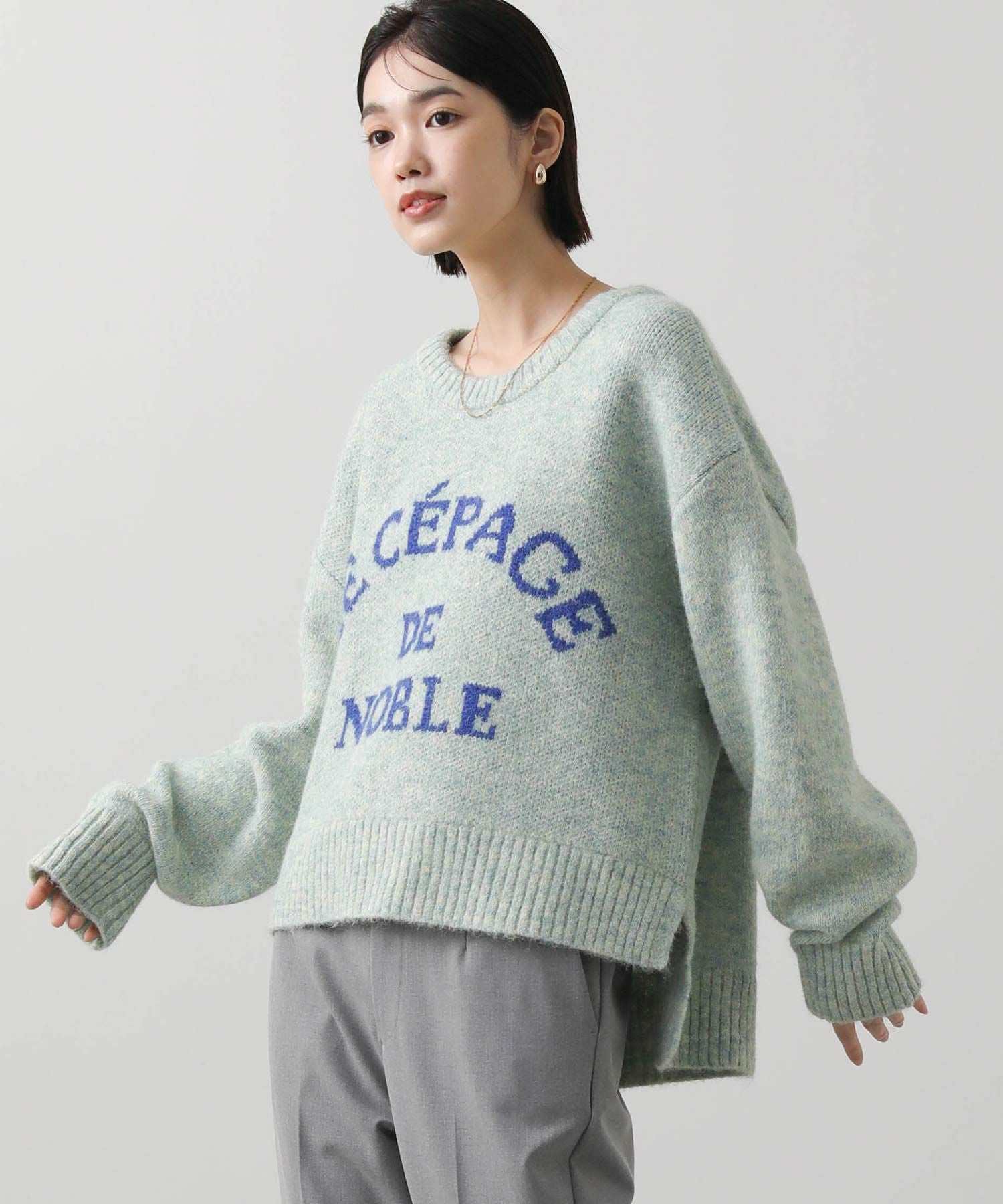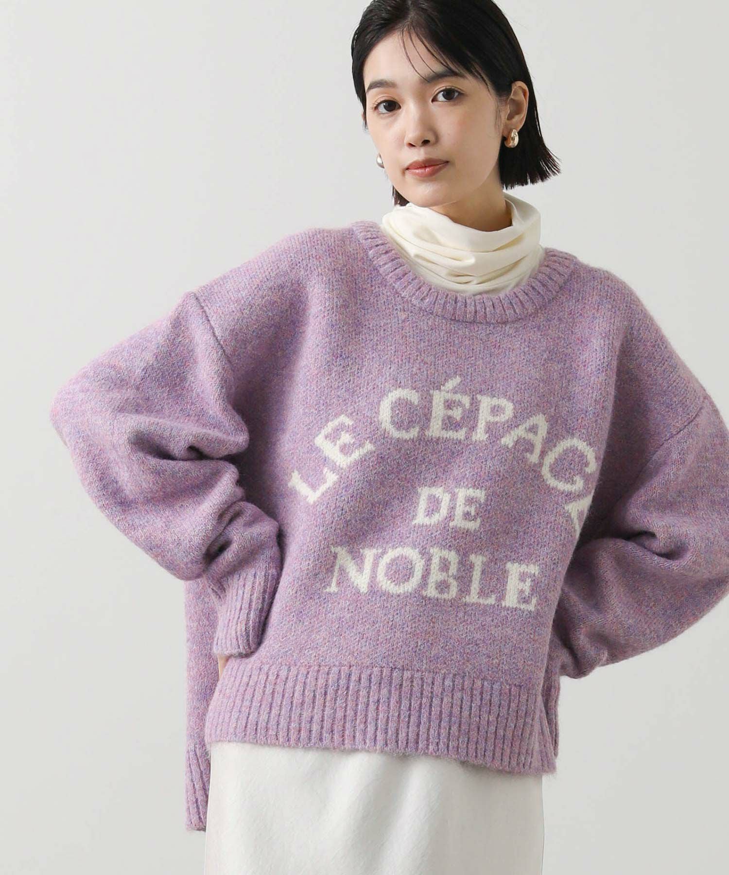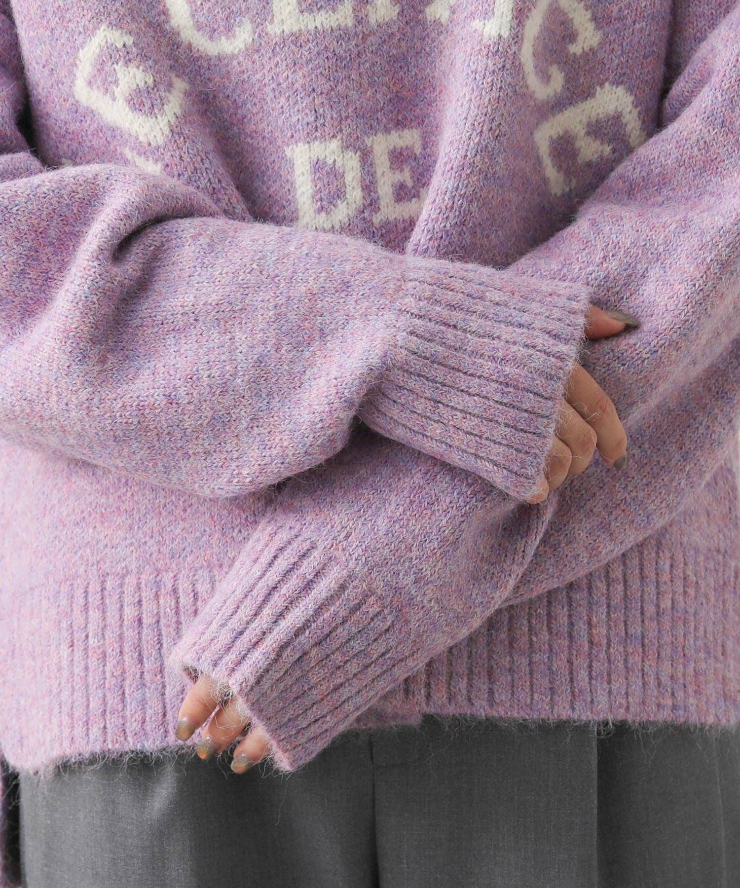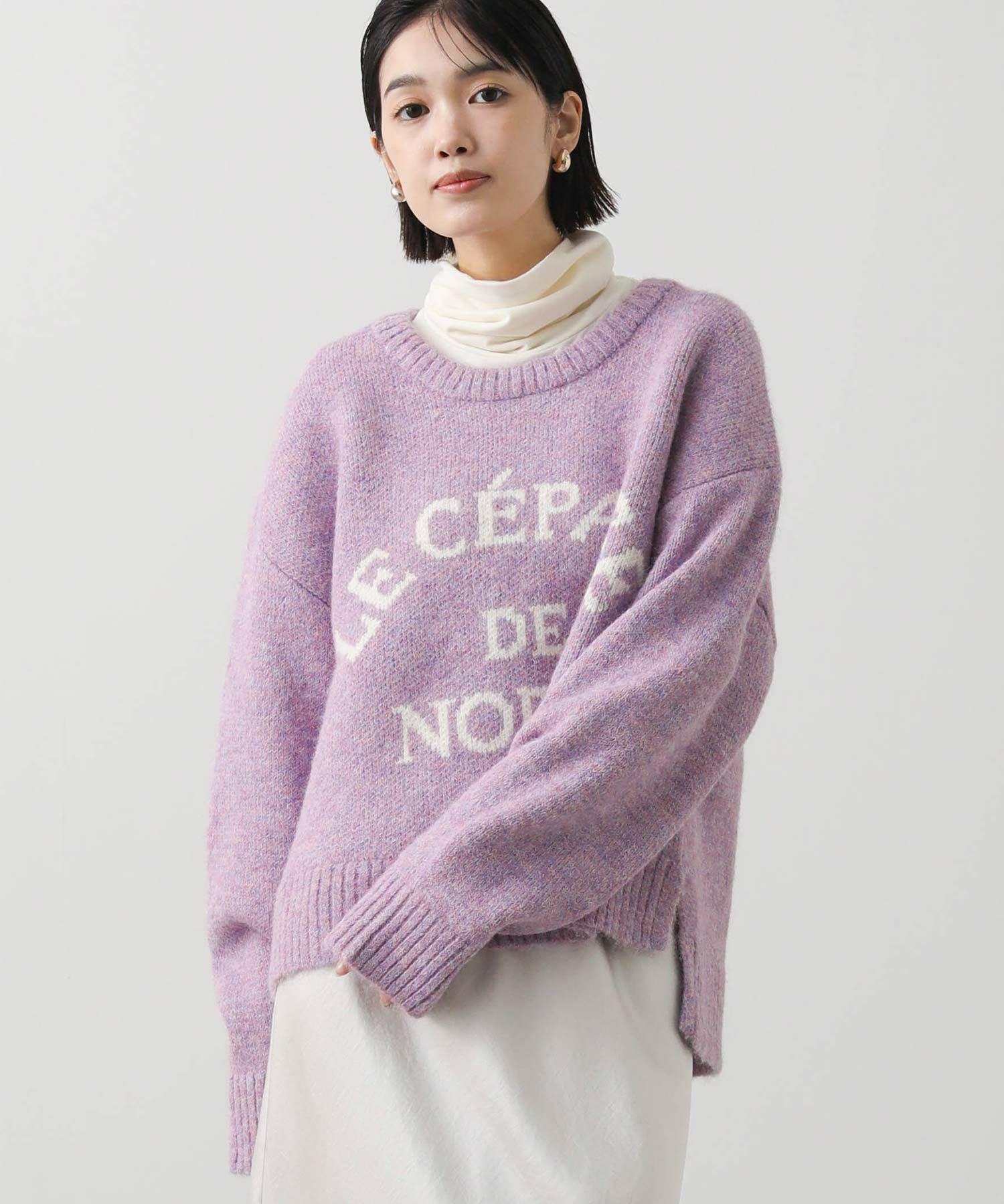 ポップなロゴとペールトーンの優しいカラーリングが魅力のニットプルオーバー。メランジの奥行のある色合いのニットにジャガードでロゴをあしらったこだわりの1枚。