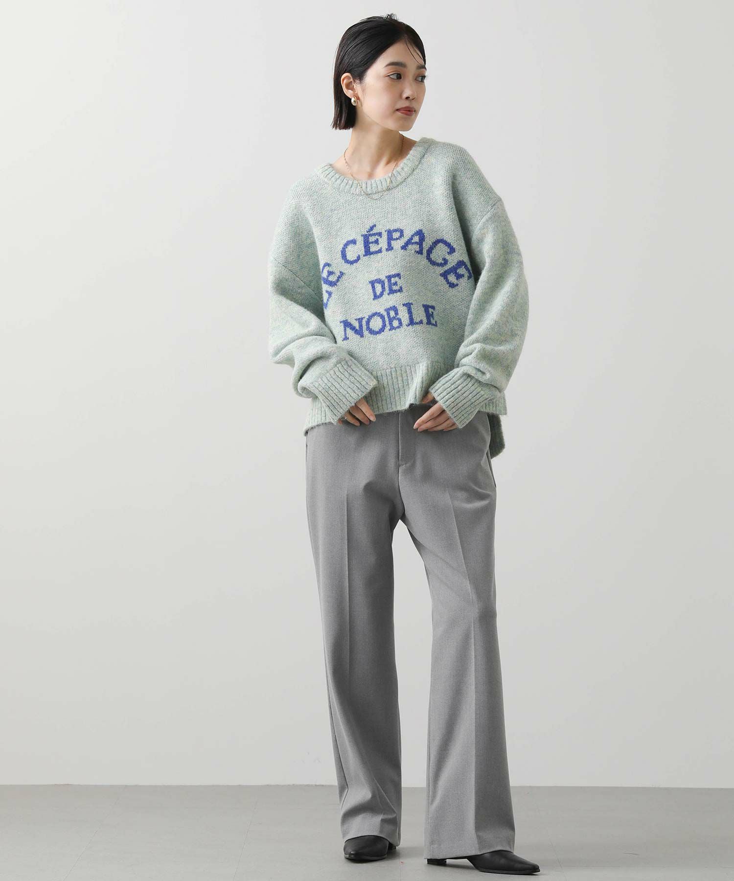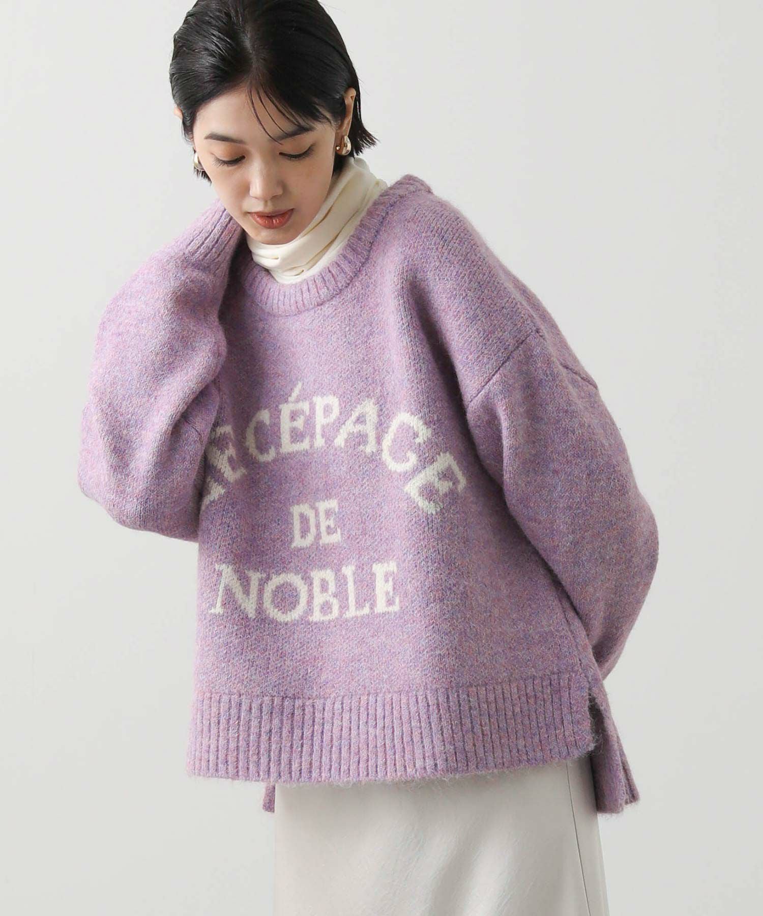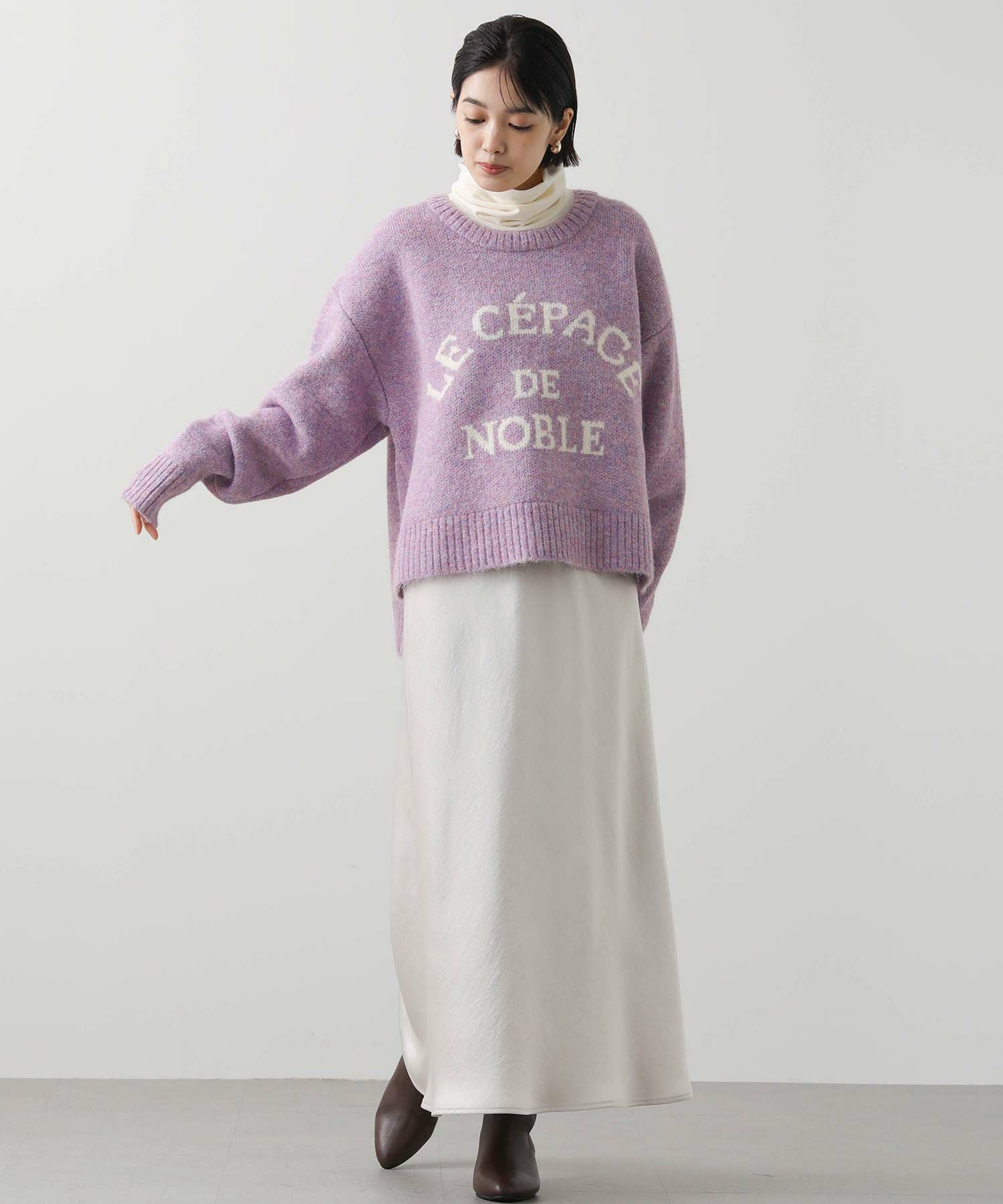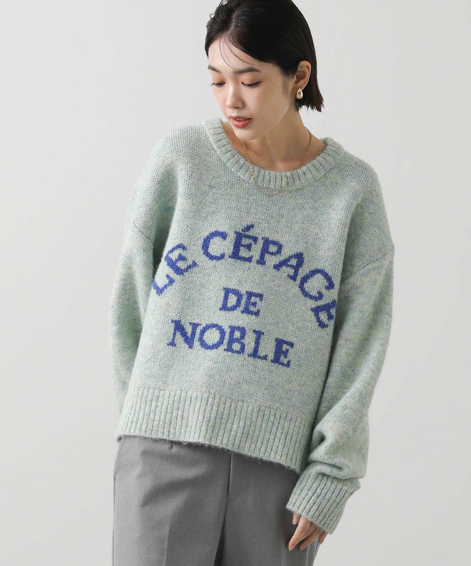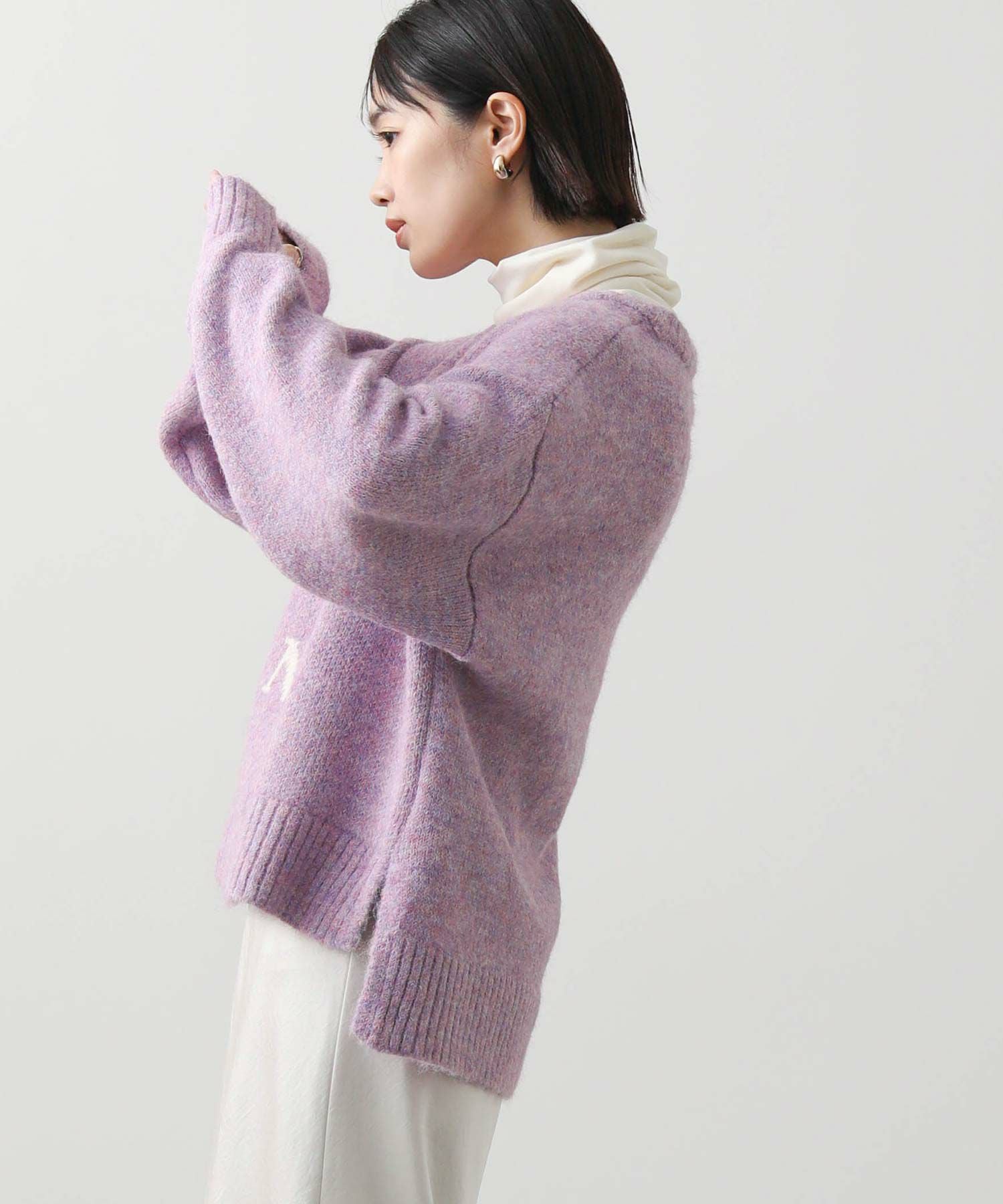 ポップなロゴとペールトーンの優しいカラーリングが魅力のニットプルオーバー。メランジの奥行のある色合いのニットにジャガードでロゴをあしらったこだわりの1枚。