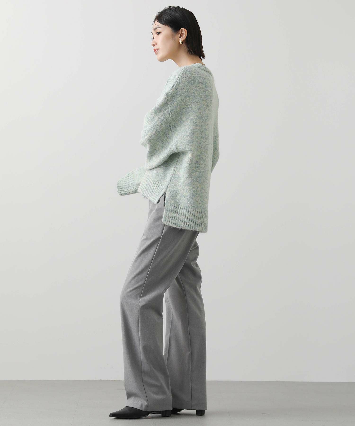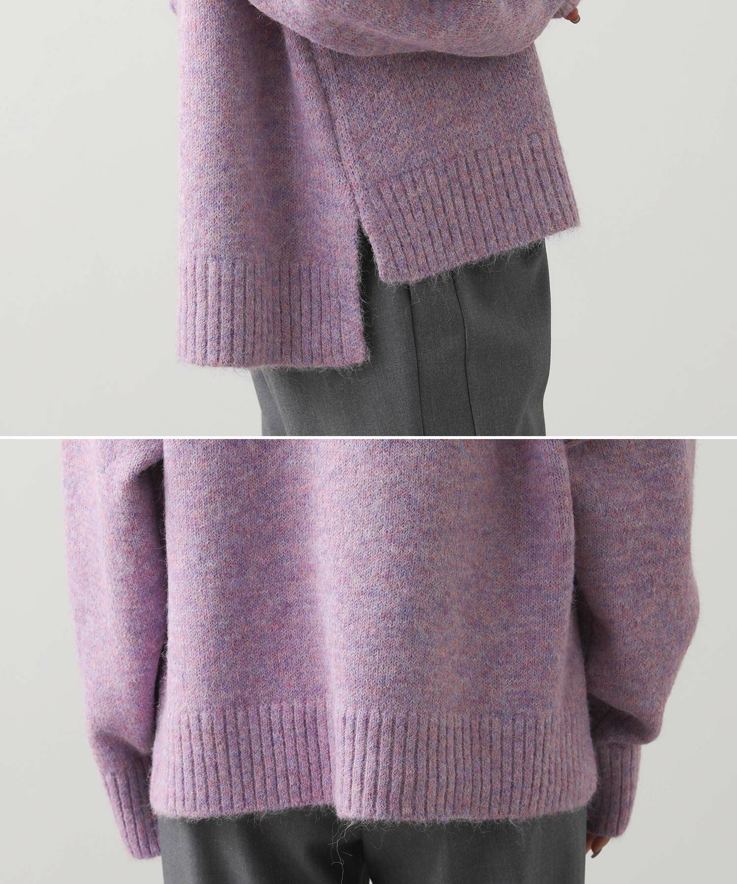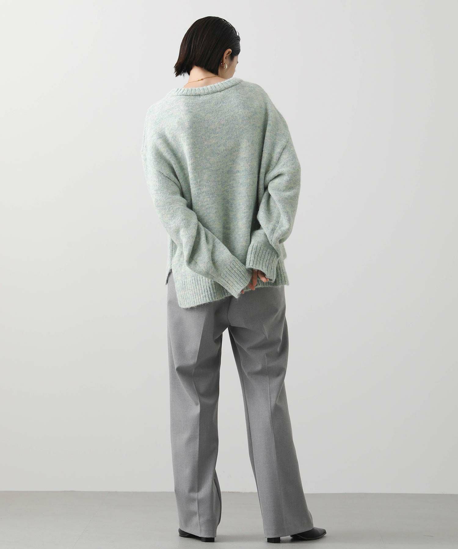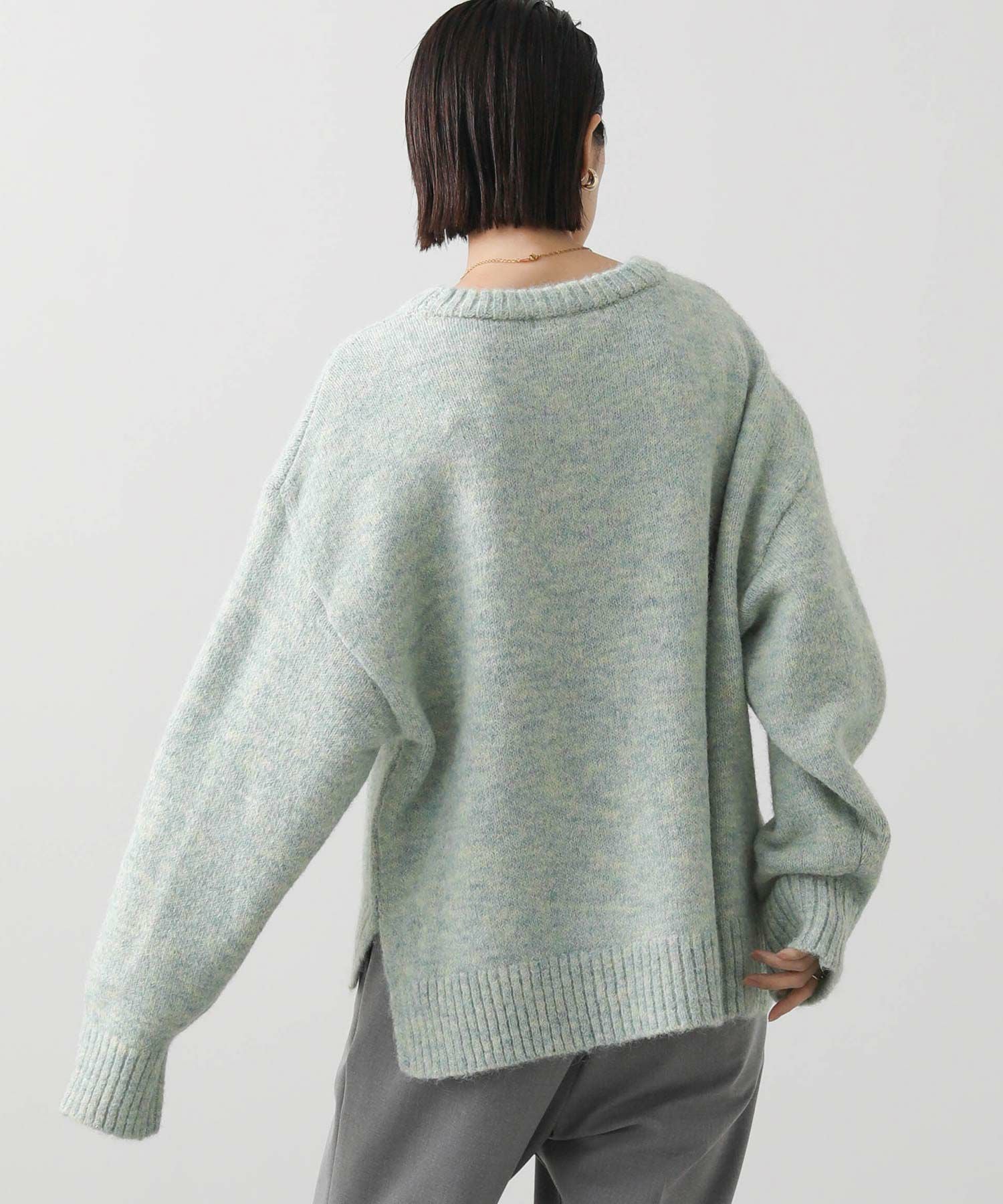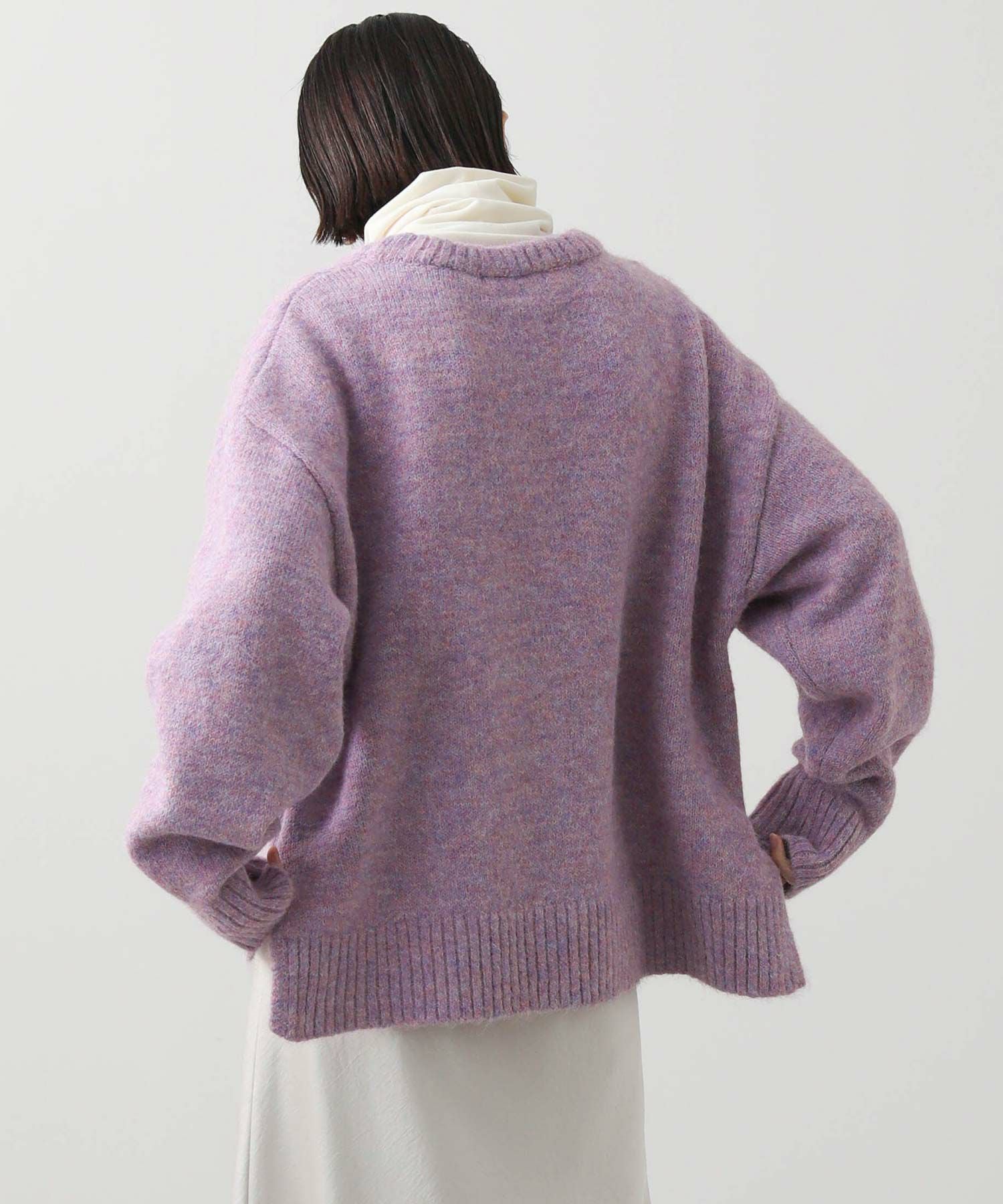 ポップなロゴとペールトーンの優しいカラーリングが魅力のニットプルオーバー。メランジの奥行のある色合いのニットにジャガードでロゴをあしらったこだわりの1枚。