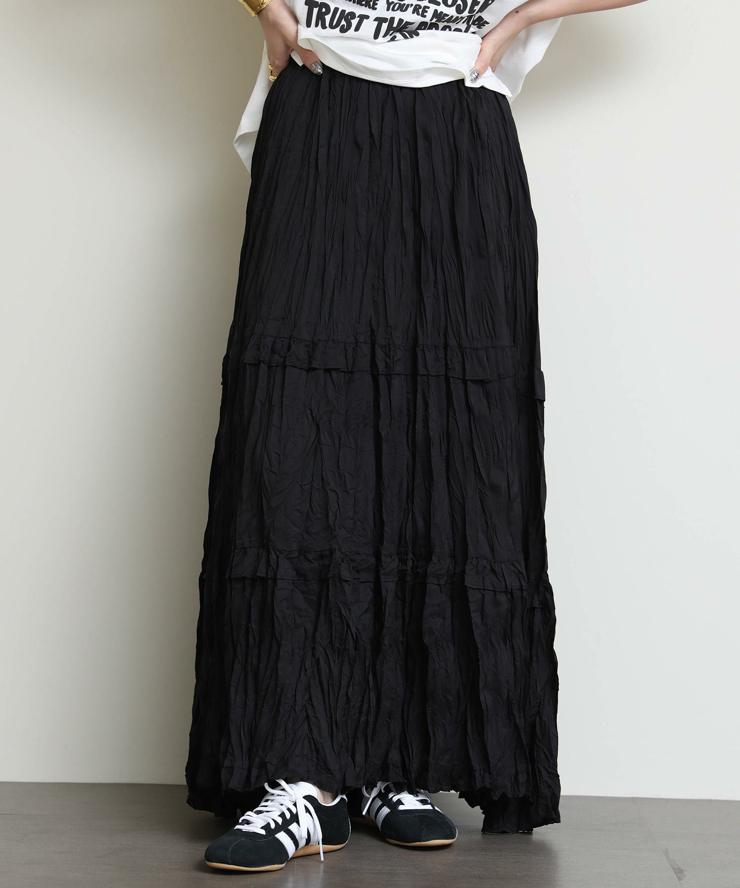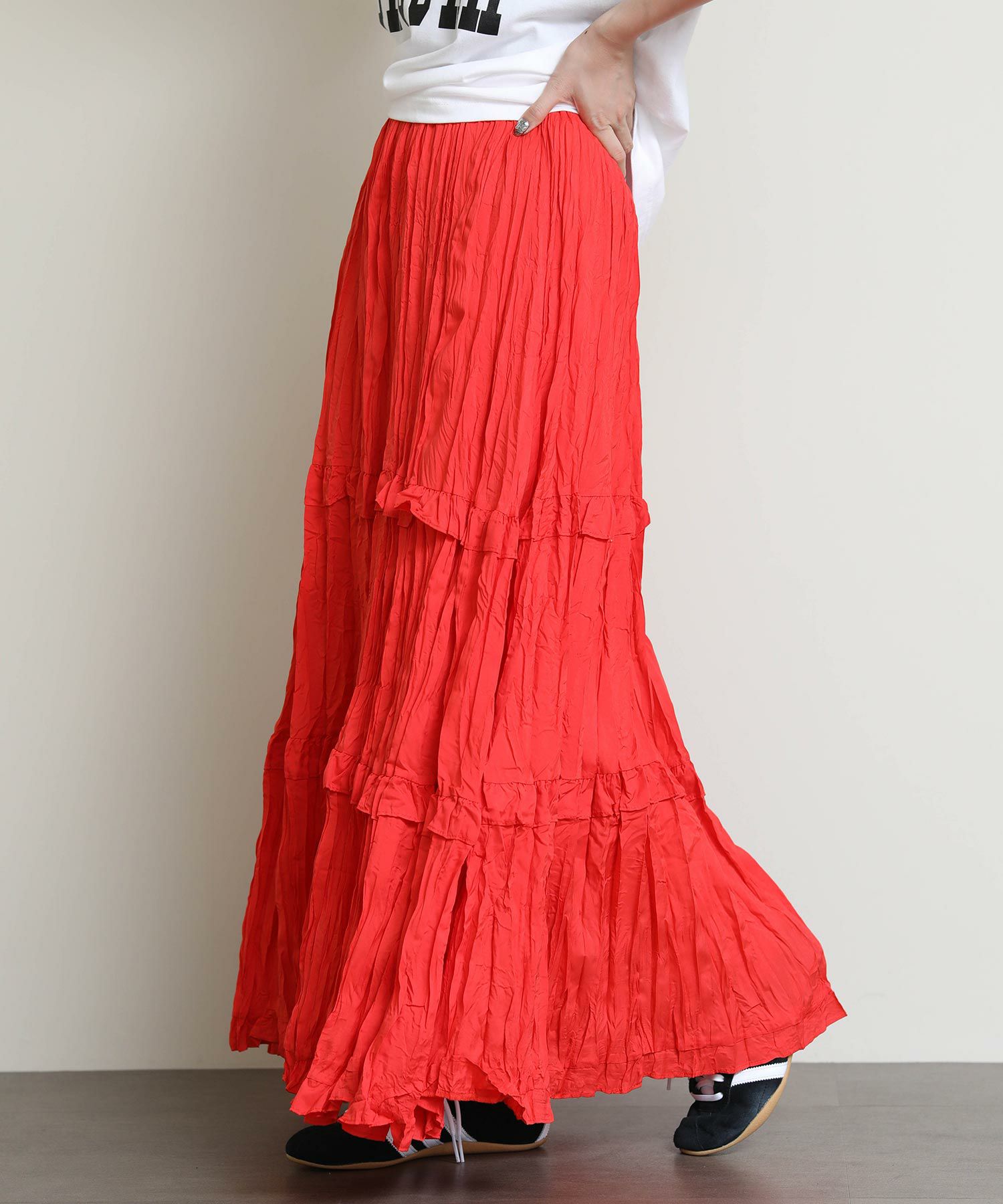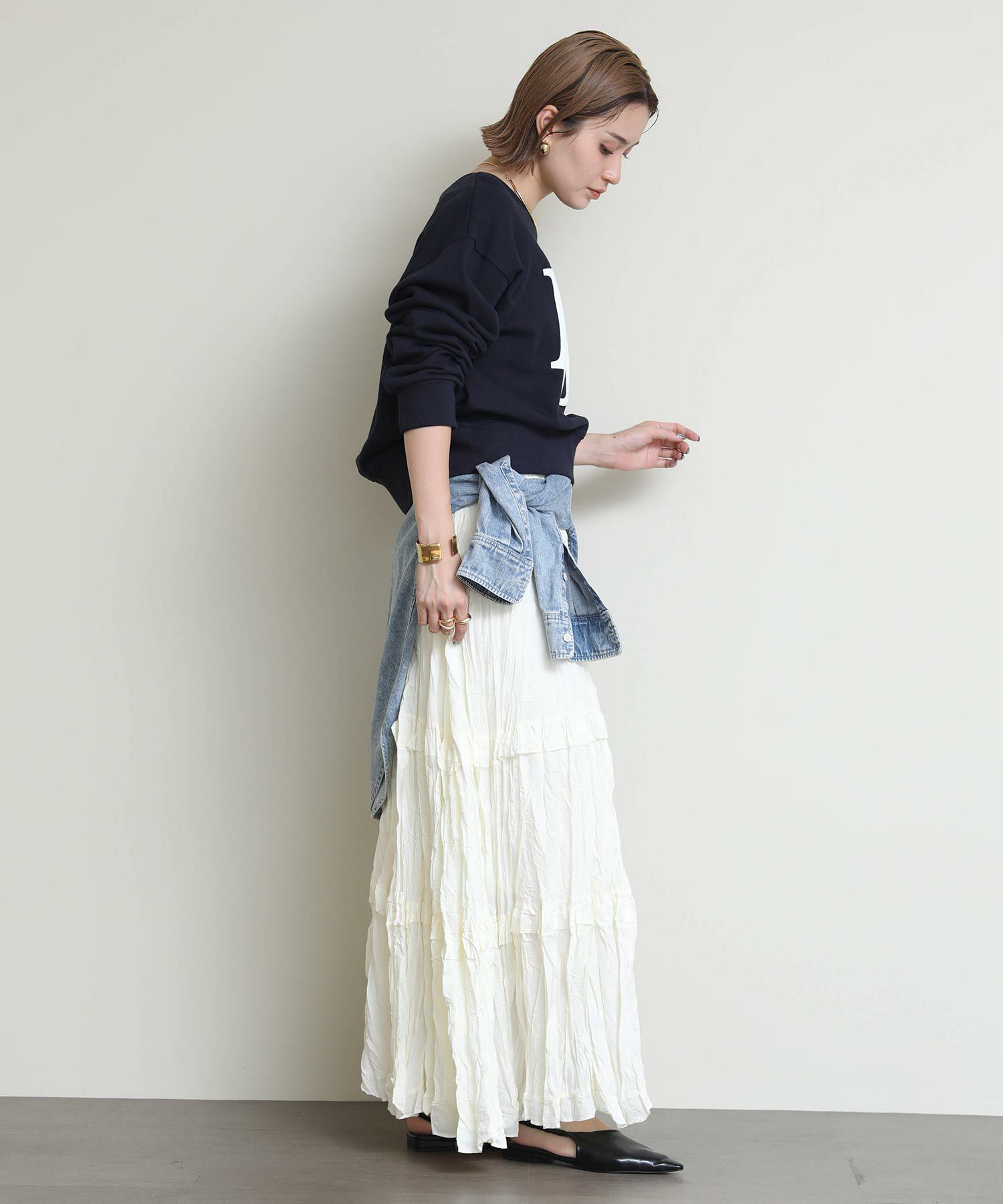 ふわりと軽やかに広がるシルエットが、スタイリングに華やかな印象を与えてくれます。