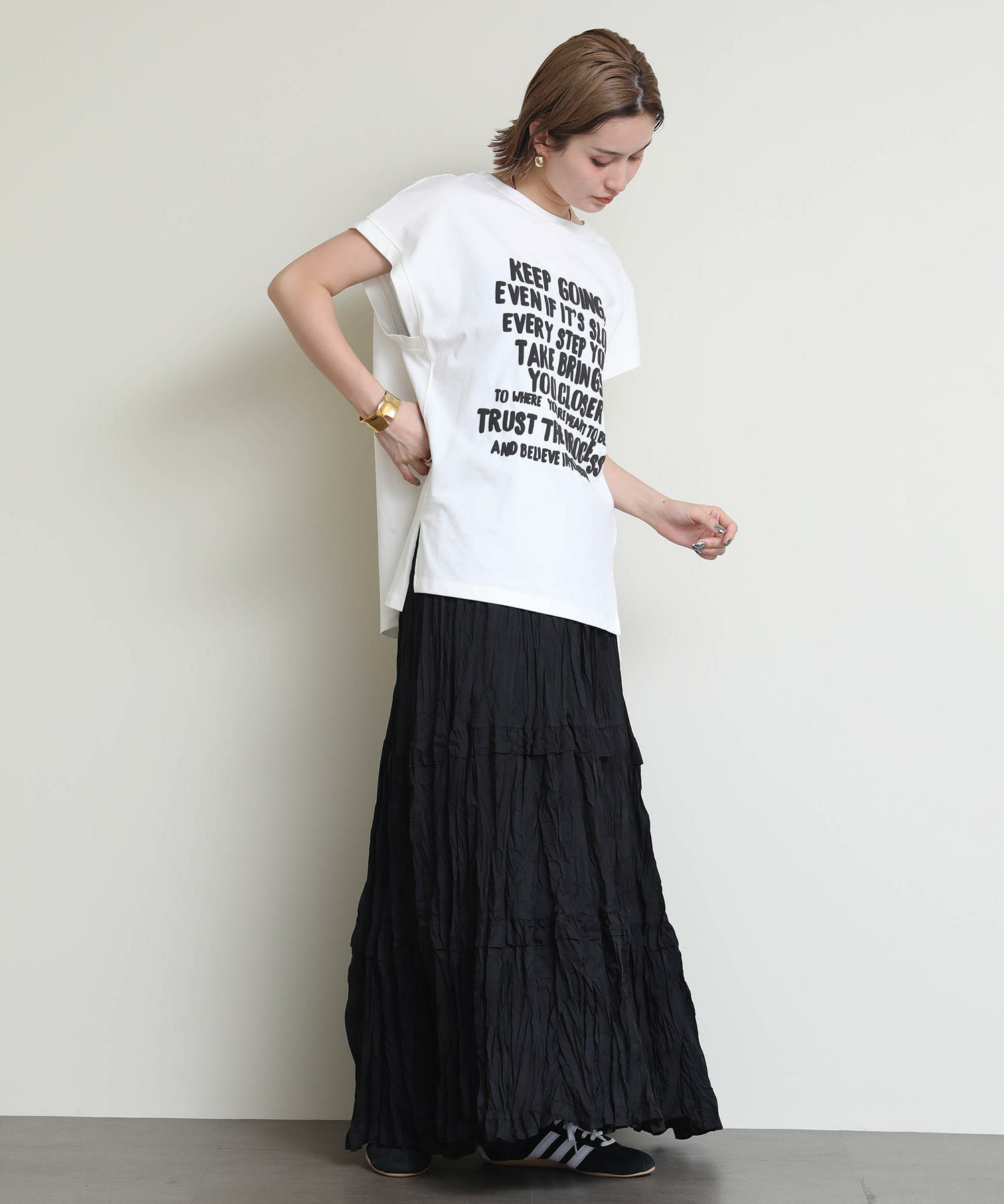 カジュアルなTシャツやキレイめブラウスなど、合わせるトップスによって幅広い着こなしを楽しめます。