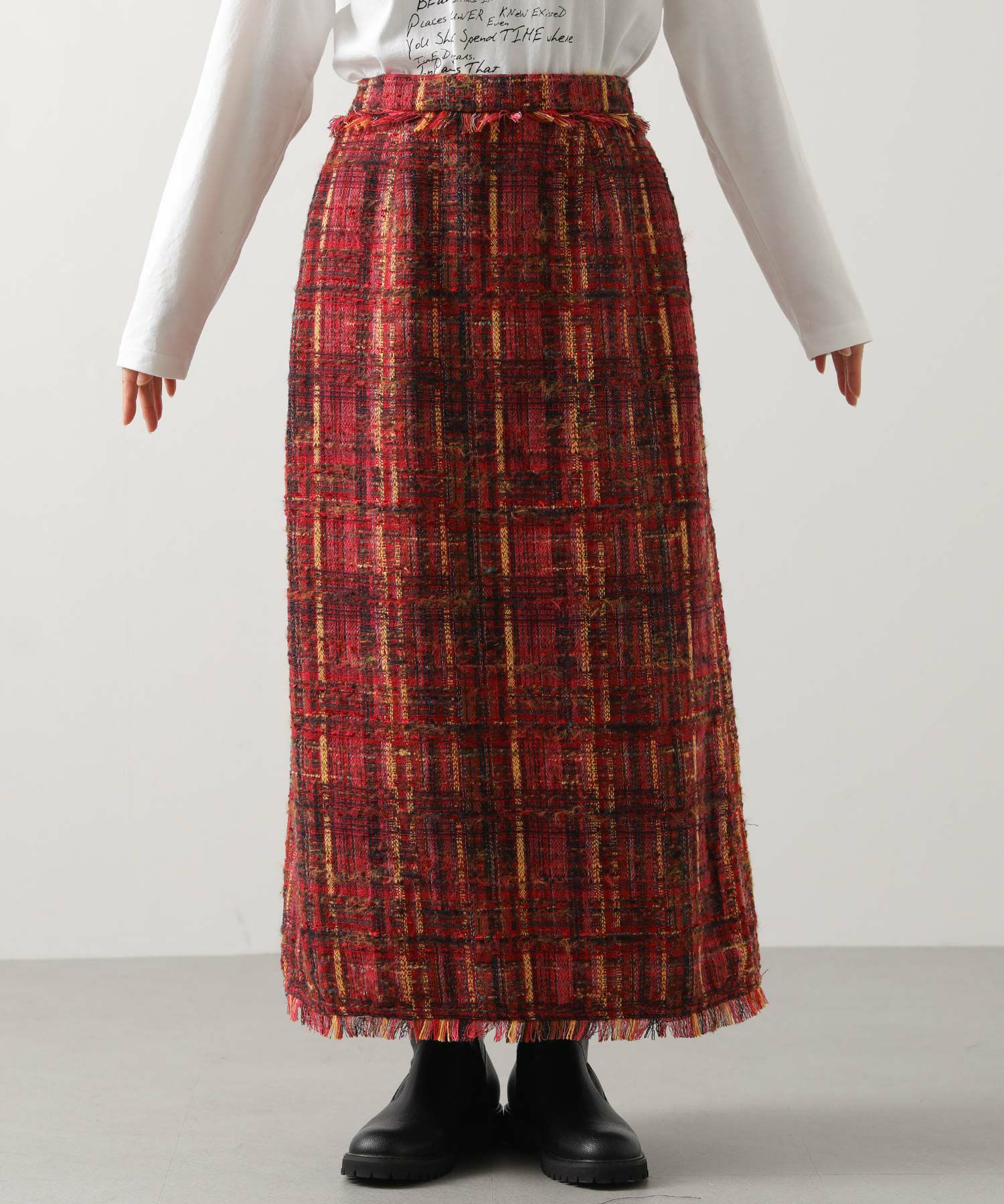 柔らかいツィードを使用しているので、かっちりしすぎずカジュアルにスタイリングが決まります。