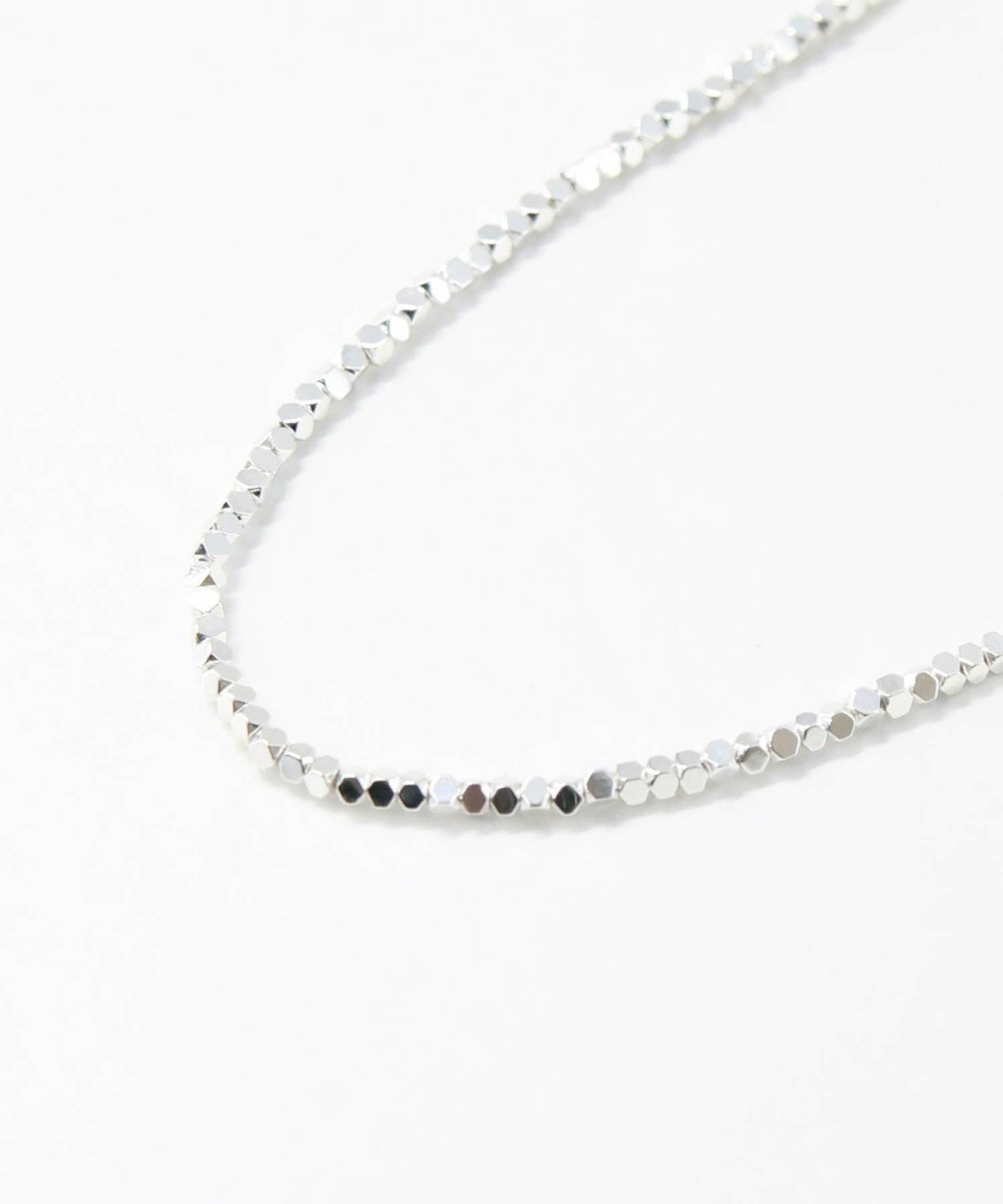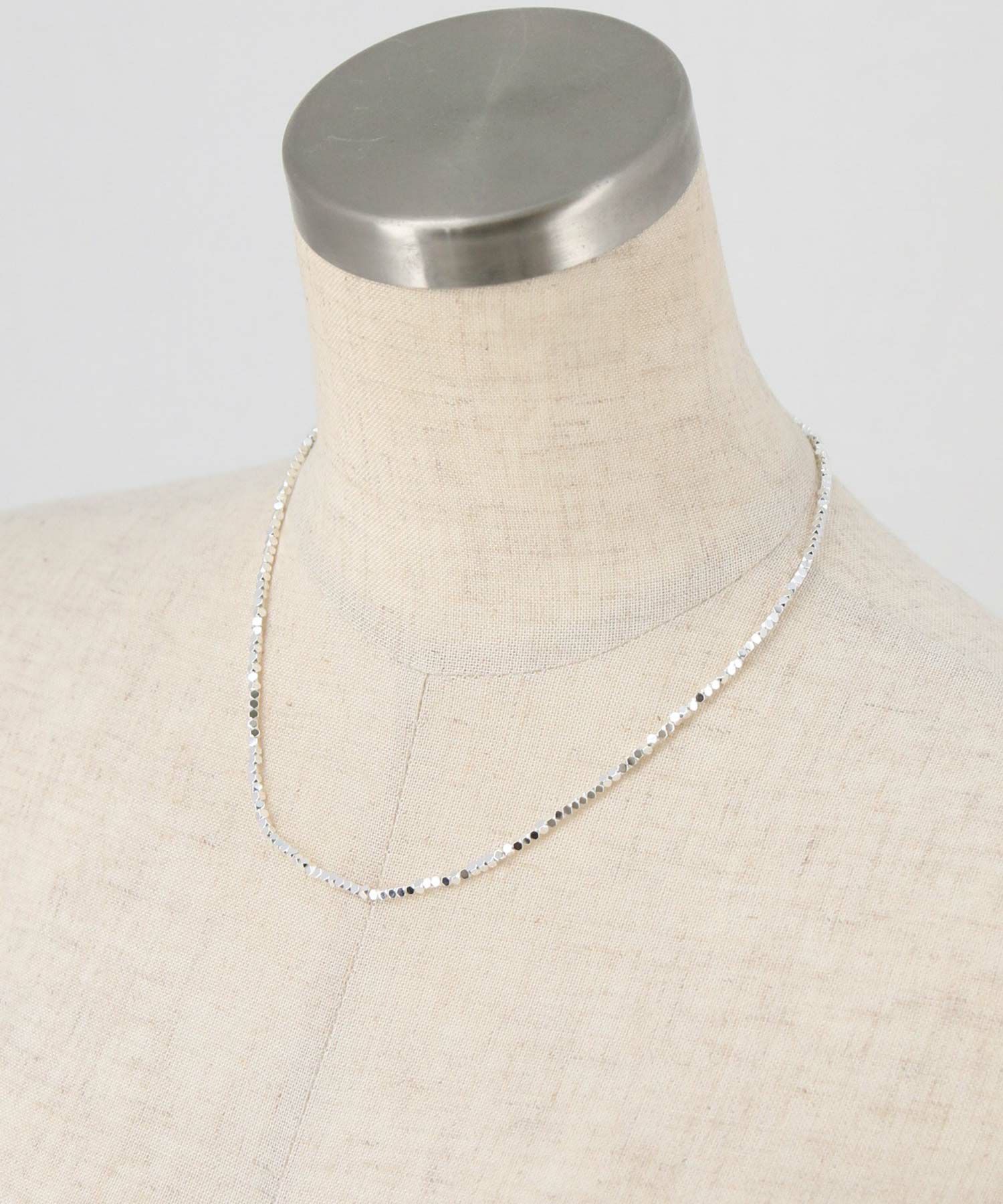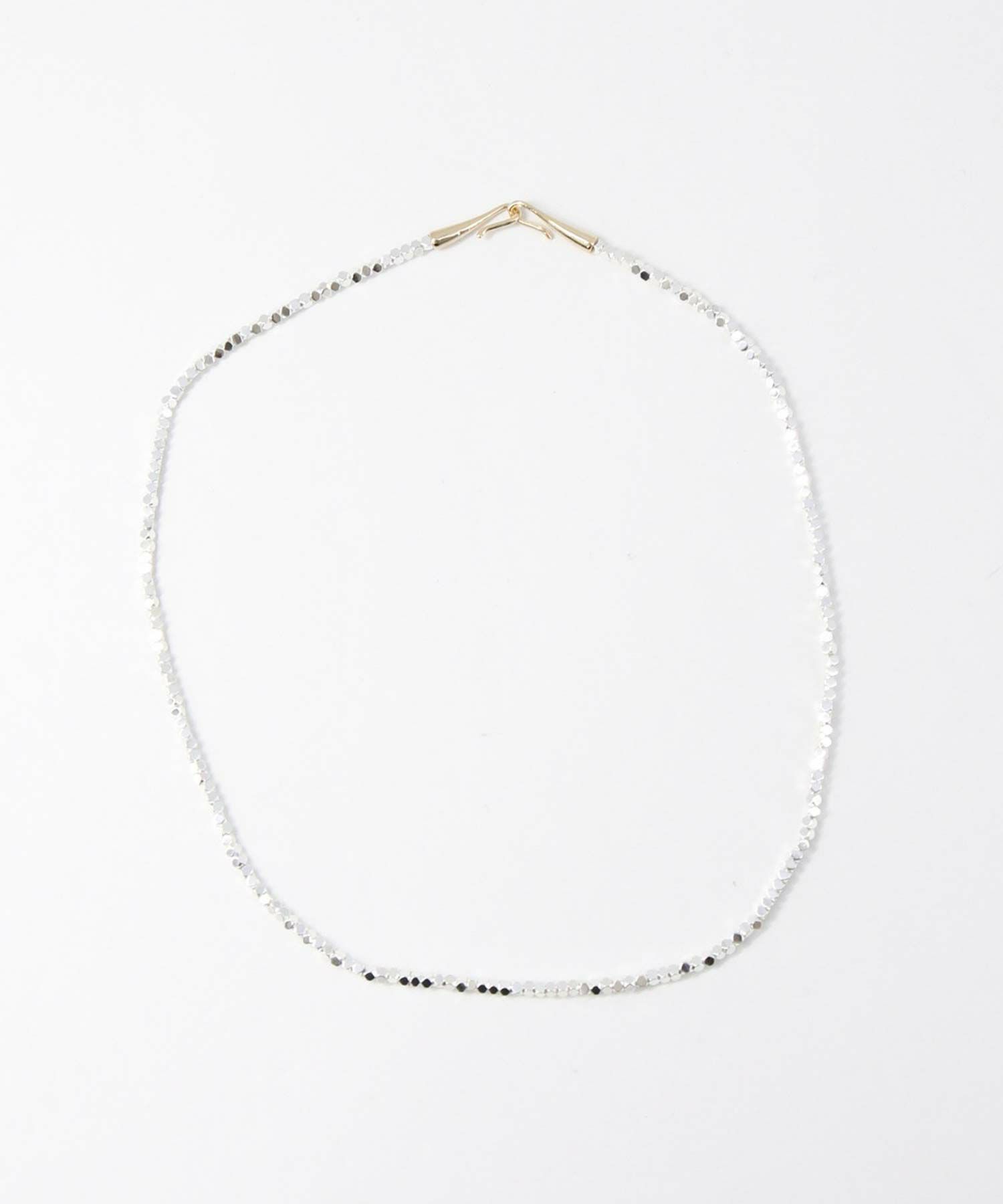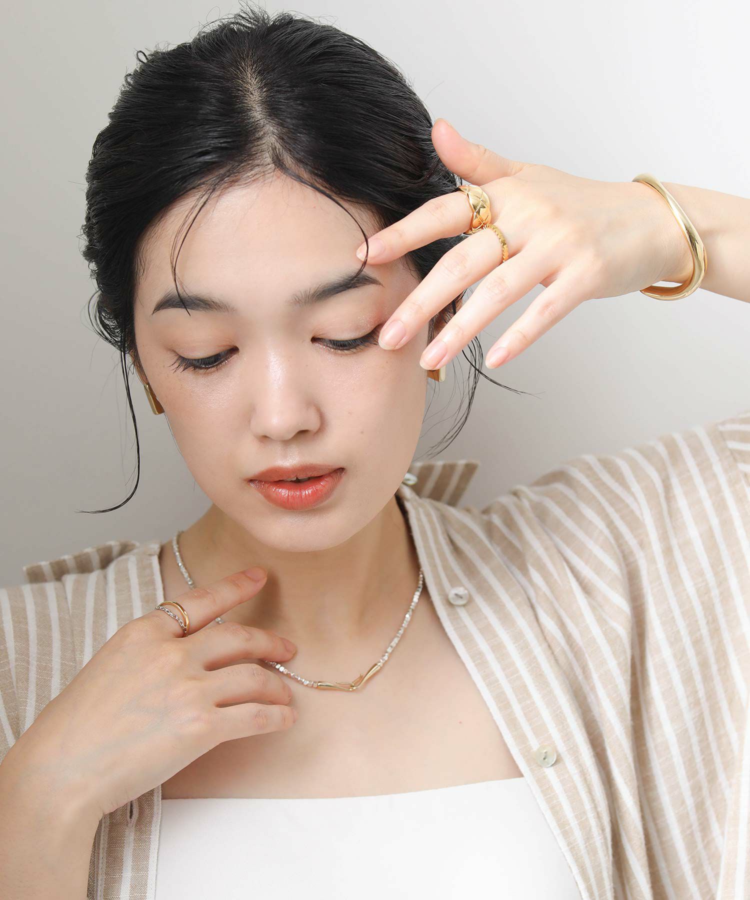 ゴールドの留め具もアクセントになり、前後どちらでも着用可能です。角度によってきらっと光り、シンプルで華奢なデザインなので、様々なスタイルにおすすめです。