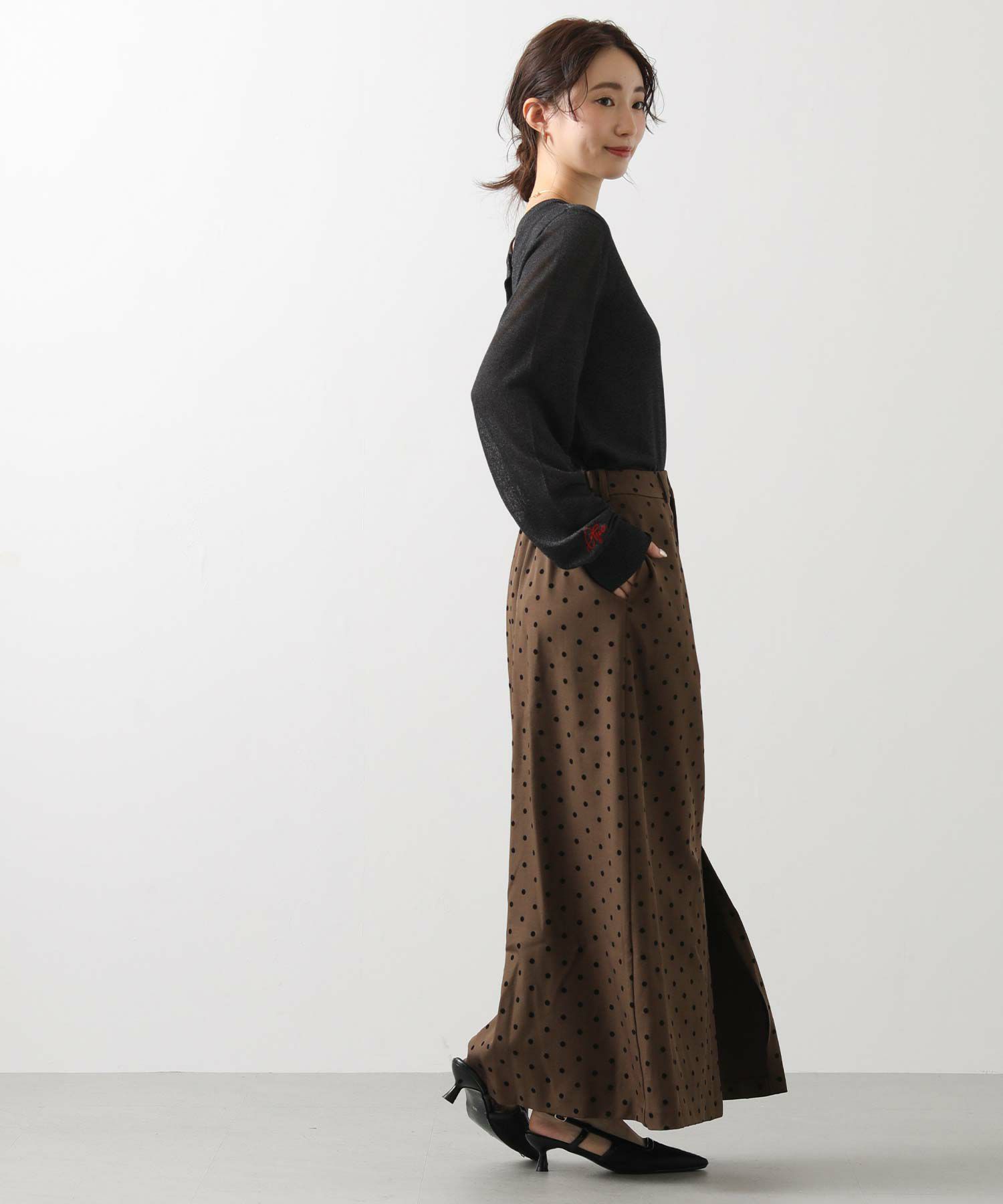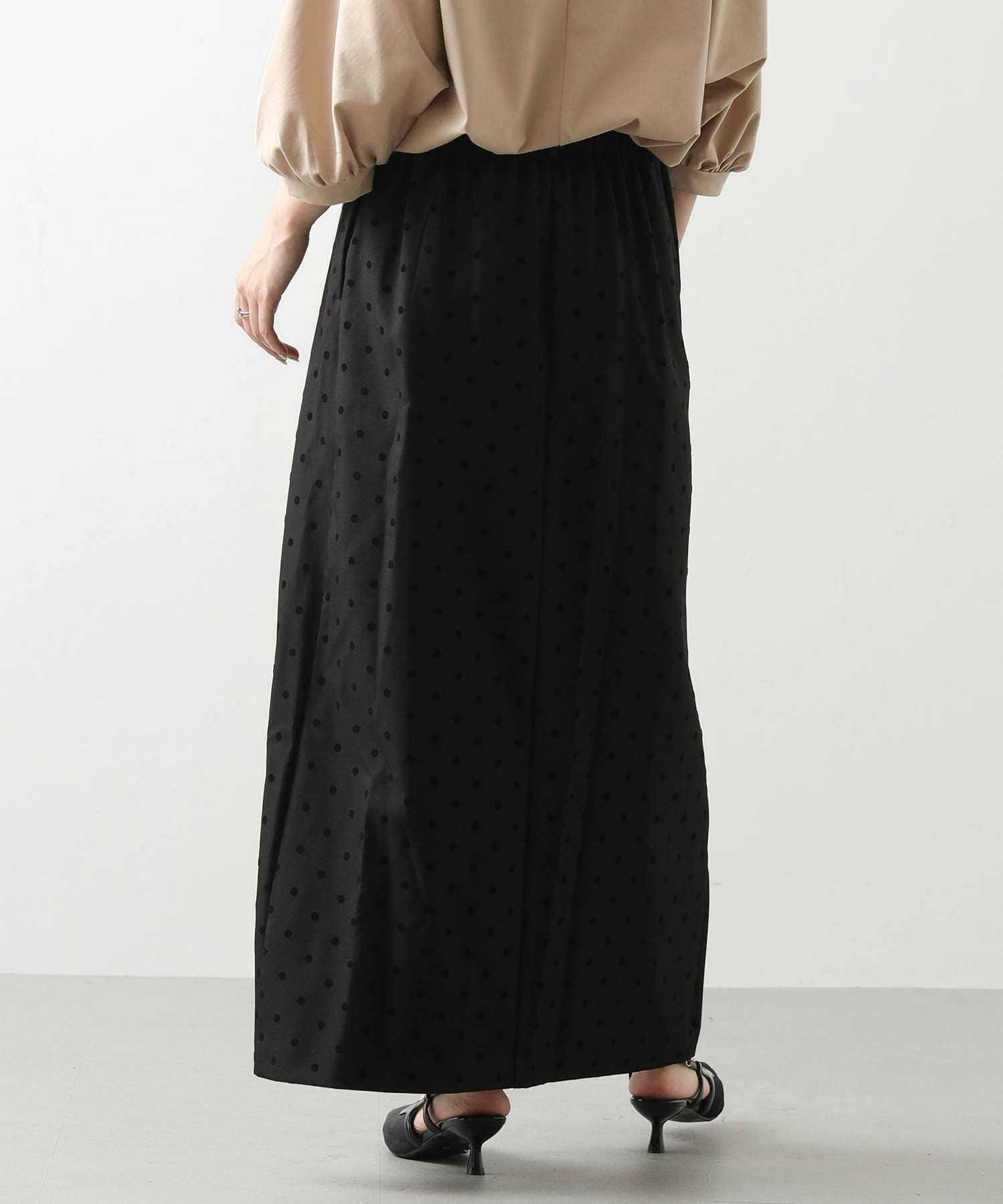 【CLOCHE/クロッシェ】から、ドットフロッキーのタイトスカートをセレクト。