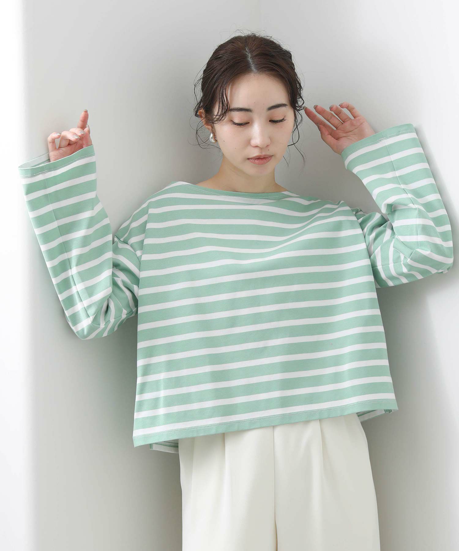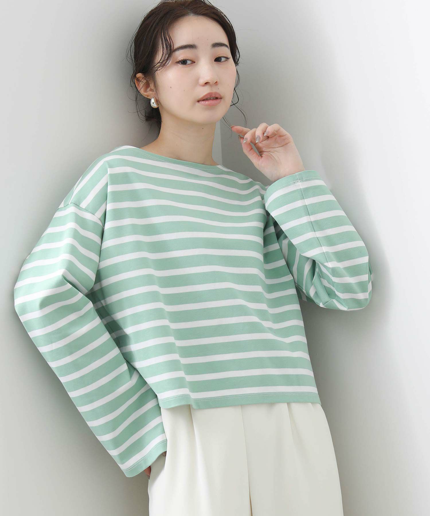 秋冬に好評だったカットソーが、春色になって登場です。オーセンティックなデザインながらトレンドのクロップド丈やワイドな袖が抜け感のあるシルエットです。