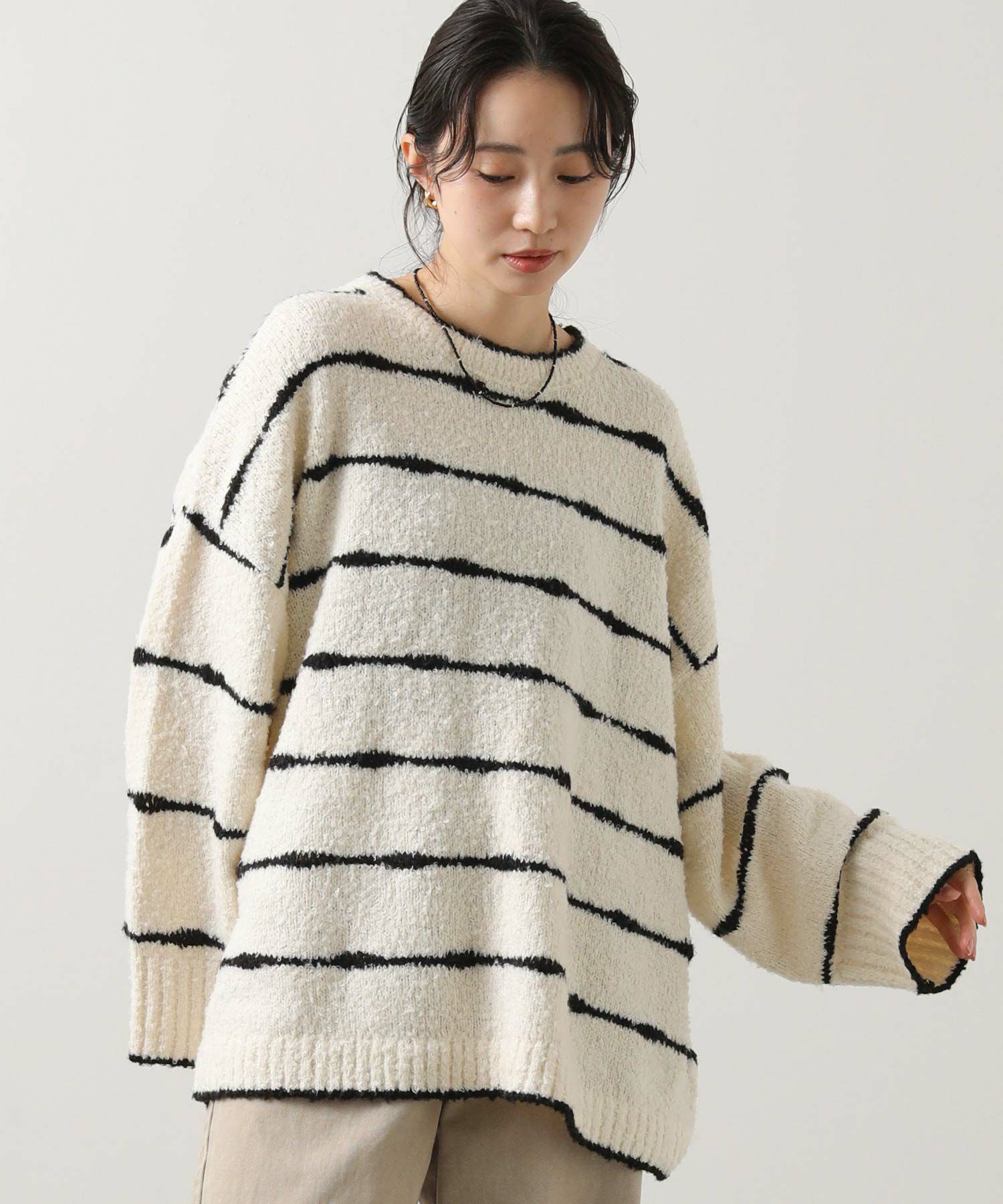 【CHIGNON(シニヨン】から、手書きのような強弱のラインが入ったボーダーニットをセレクト。