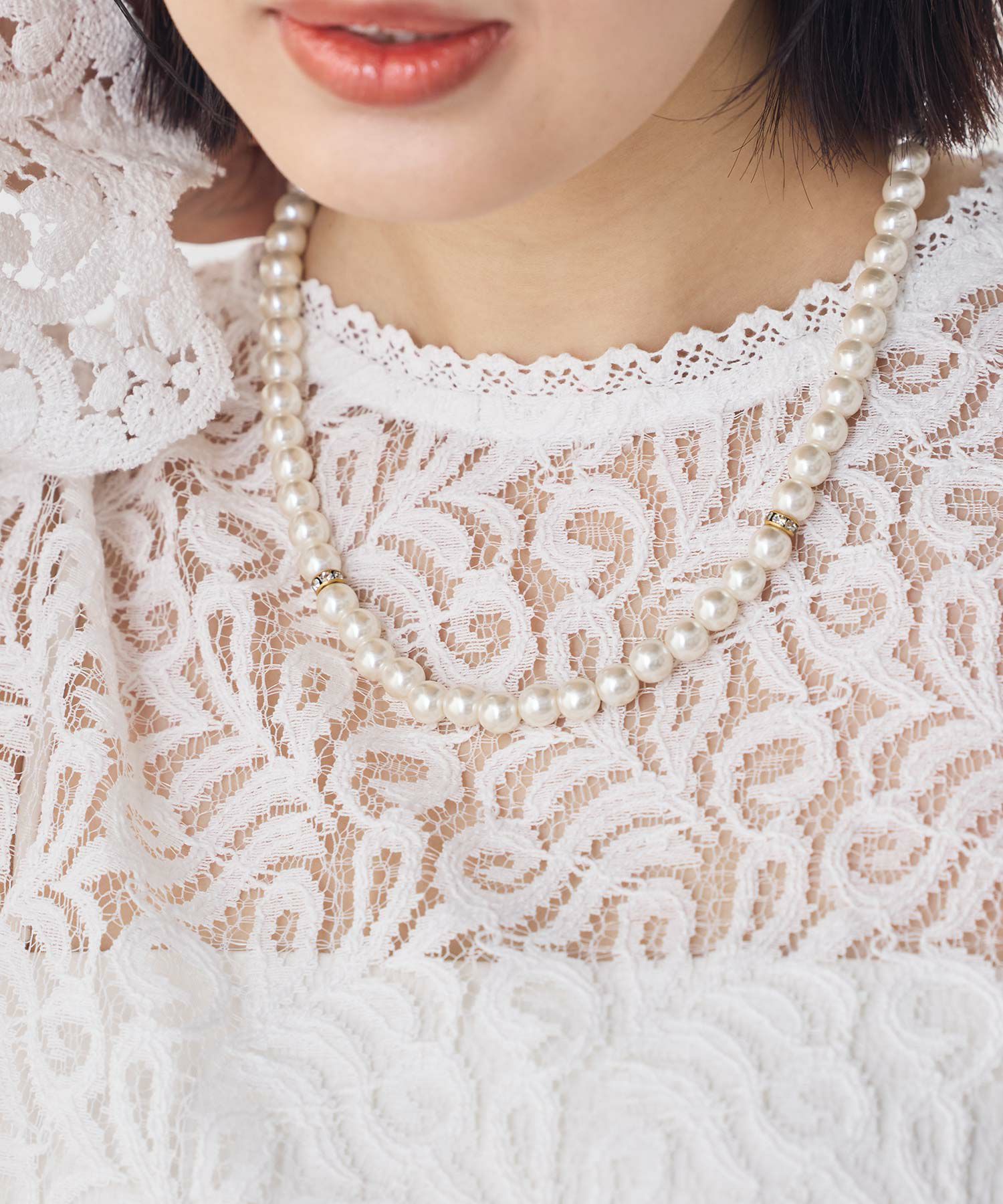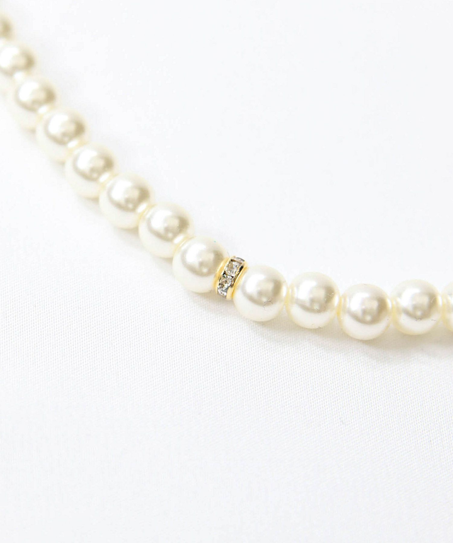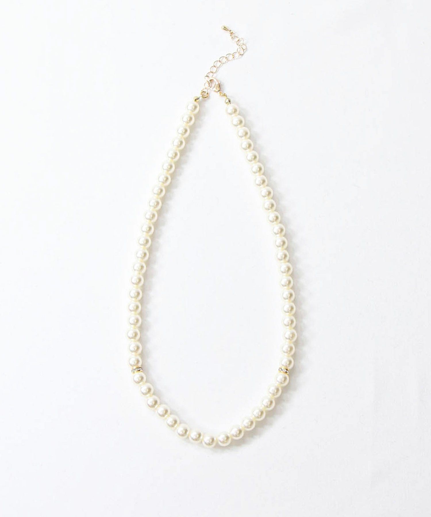 スタイルを女性らしく華やかに見せてくれるパールネックレス。